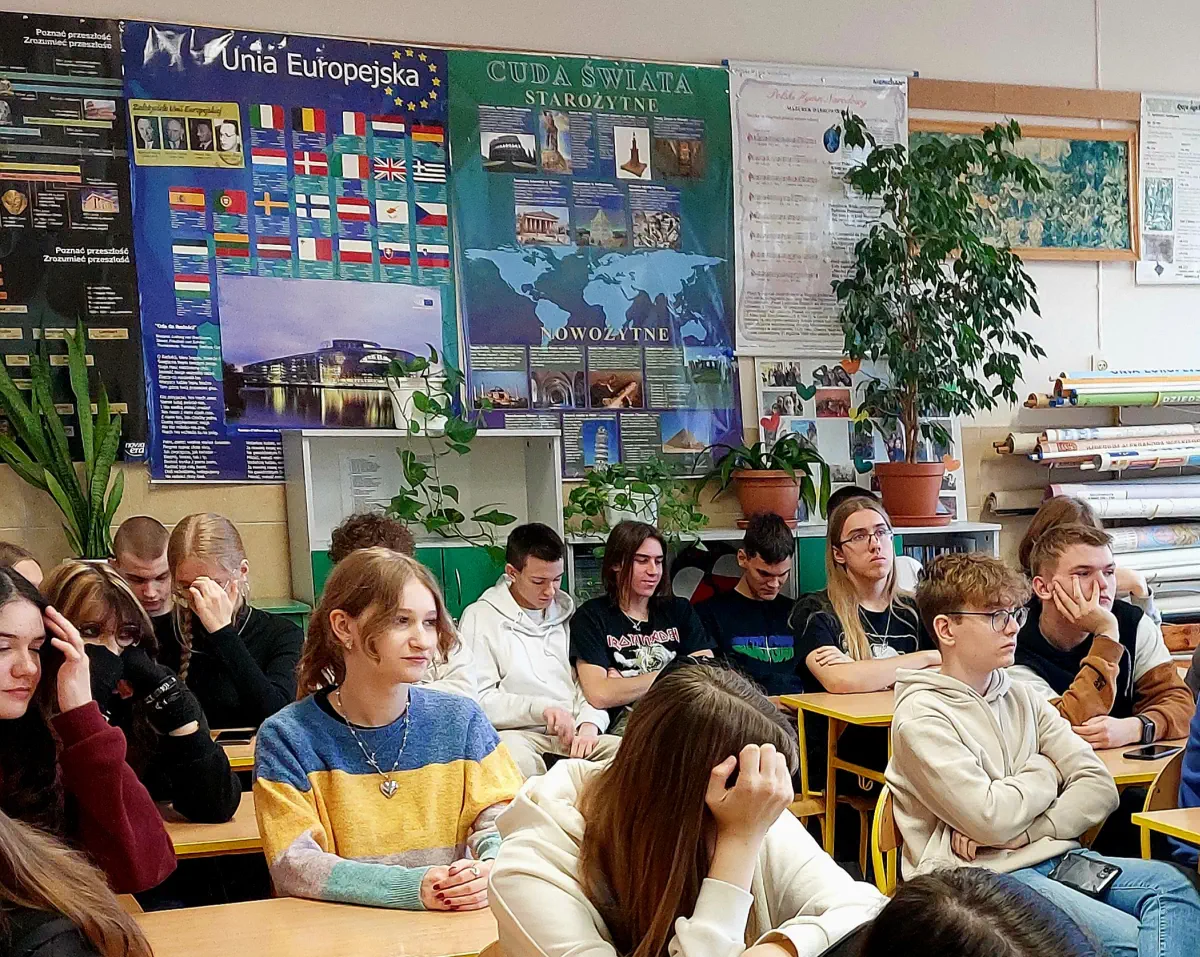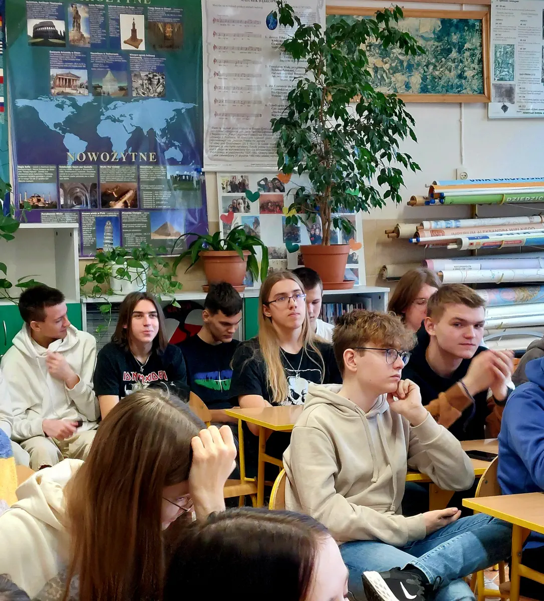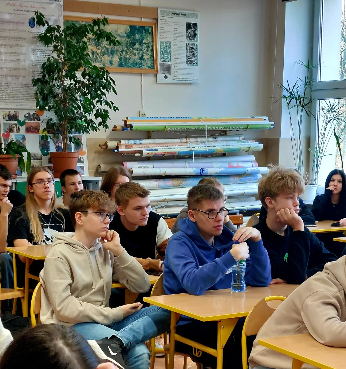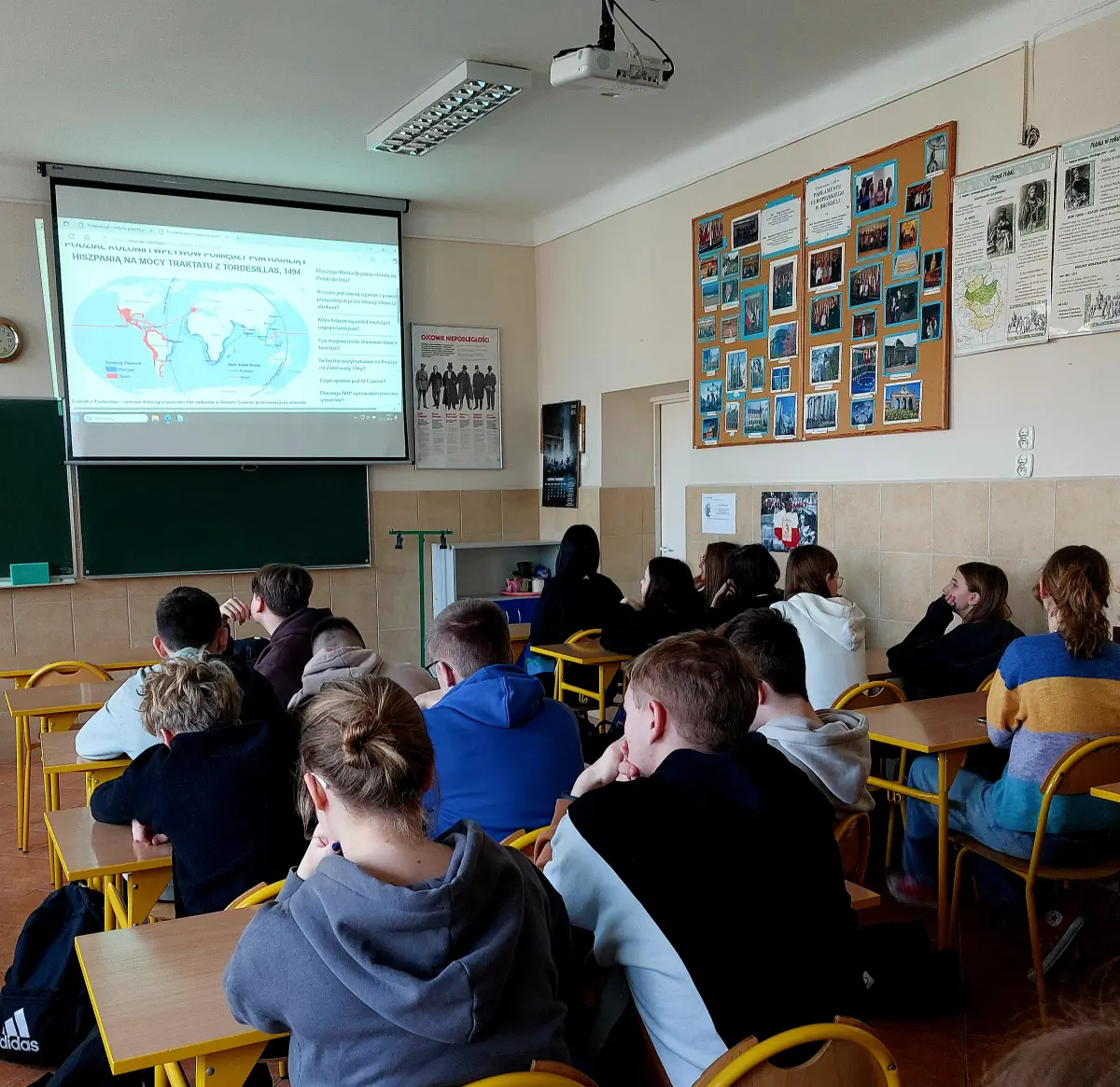 Uczniowie p. E. Derek z klas 2C i 2i gościli na swoich lekcjach adiunkta Akademii Zamojskiej dr. Dariusza Wojnarskiego. Który przeprowadził zajęcia na temat skutków gospodarczych i ekonomicznych wielkich odkryć geograficznych. Z kolei uczniowie klas CyberMil wysłuchali debaty panelowej „Fizyka jądrowa czy wodorowa?” zorganizowanej prze Wydział Matematyki, Fizyki i Informatyki UMCS. Pomysłodawcami udziału naszej szkoły w drugim przedsięwzięciu byli nauczyciele języka angielskiego p. B. Piskor i p. P. Abramowicz.