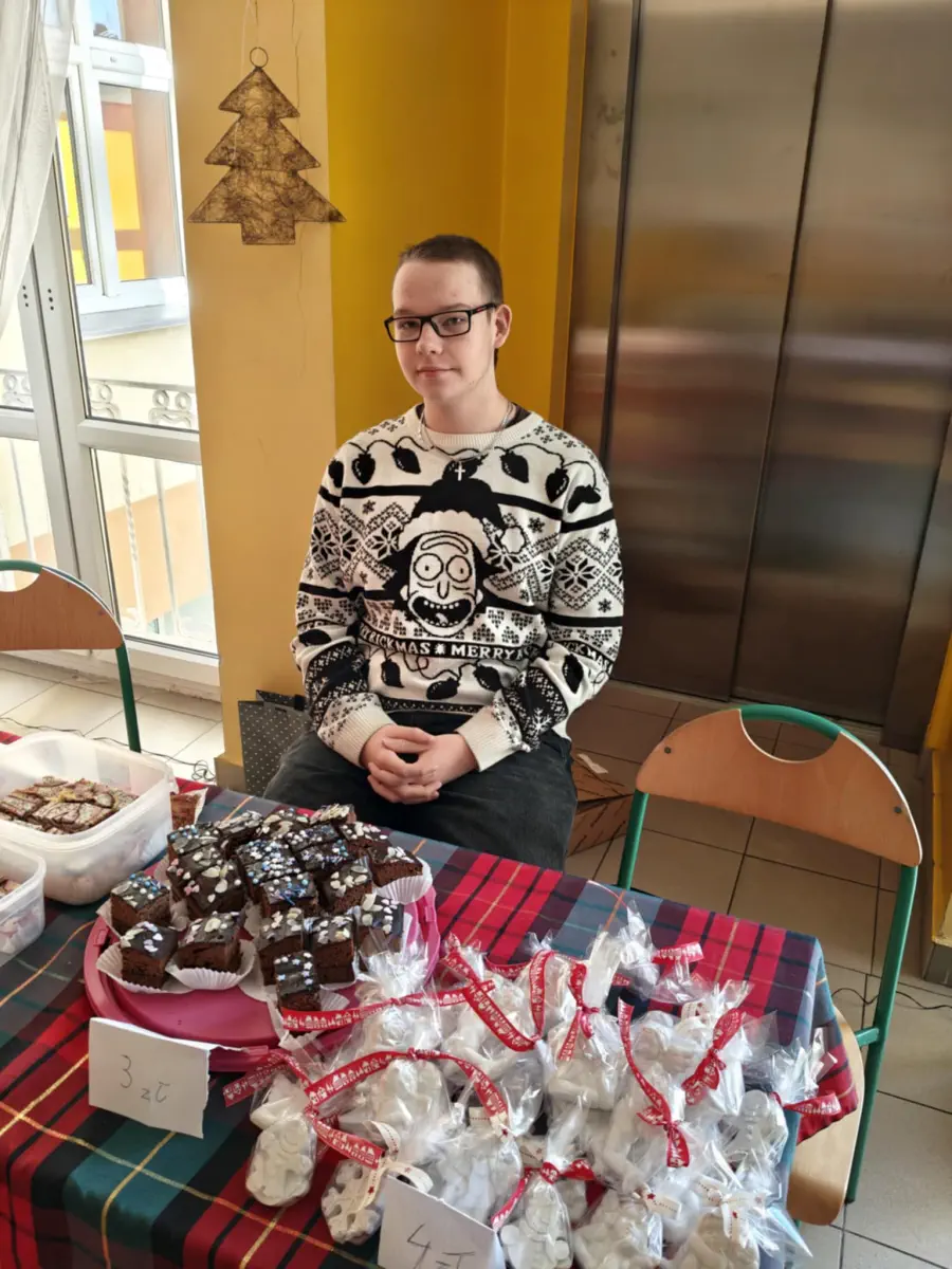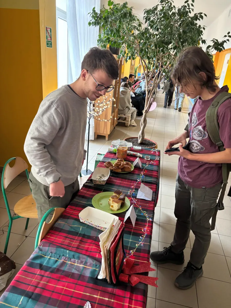 W dniach 14 – 15 grudnia p. Małgorzata Stępień zorganizowała coroczny charytatywny jarmark świąteczny, w czasie którego można było kupić przepyszne ciasta. W wyniku sprzedaży słodkości młodzież uzbierała 800 zł, które decyzją wolontariuszy zostaną przekazane na Wielką Orkiestrę Świątecznej Pomocy