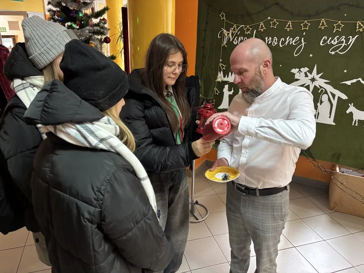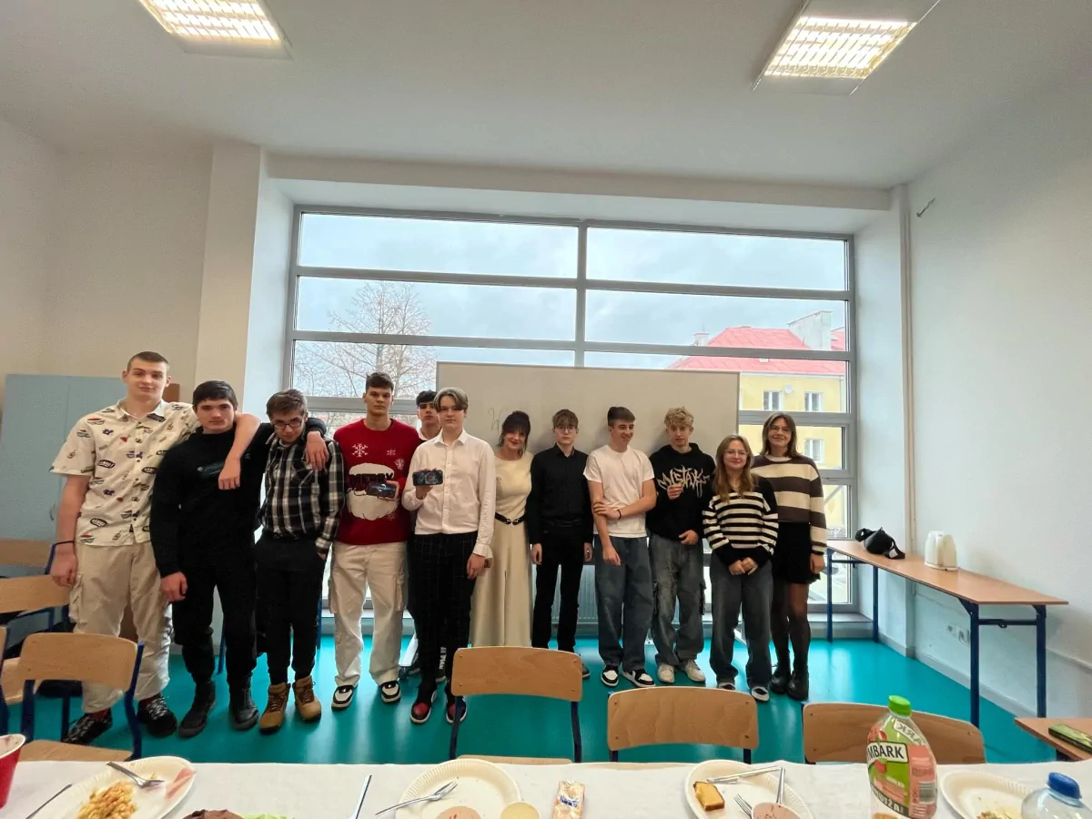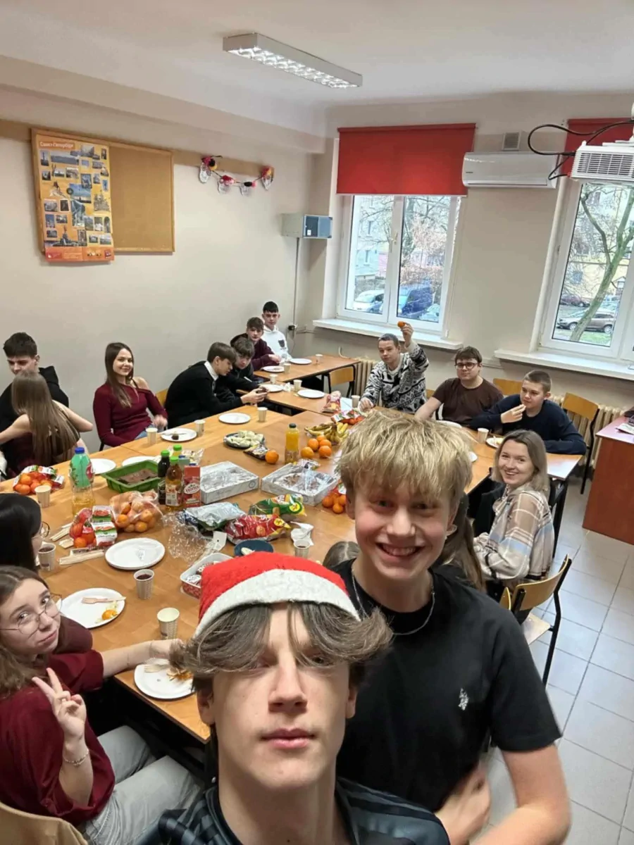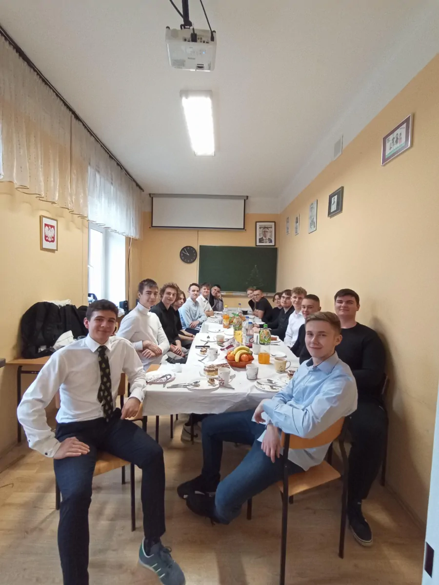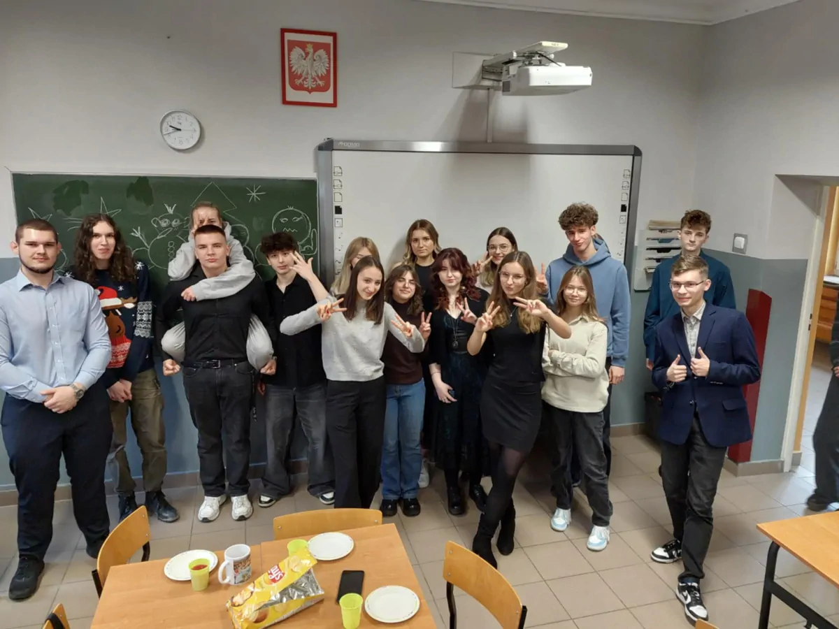 20 grudnia. Dzień pełen ciepłych życzeń i rodzinnej atmosfery. Klasowe wigilie zgromadziły uczniów i wychowawców wokół świątecznych stołów a potem wokół opłatka na hali. Uroczystą wigilię przygotował wraz z młodzieżą p. Artur Nyszko.
