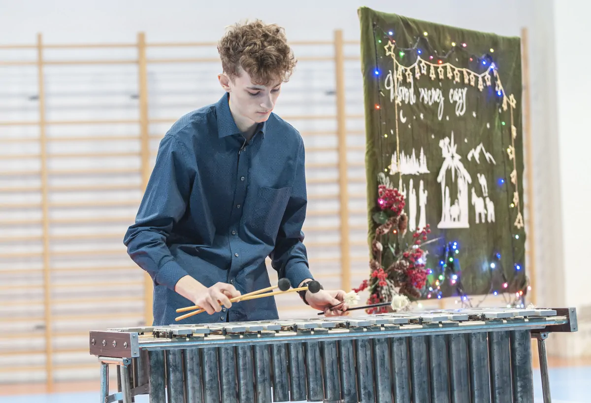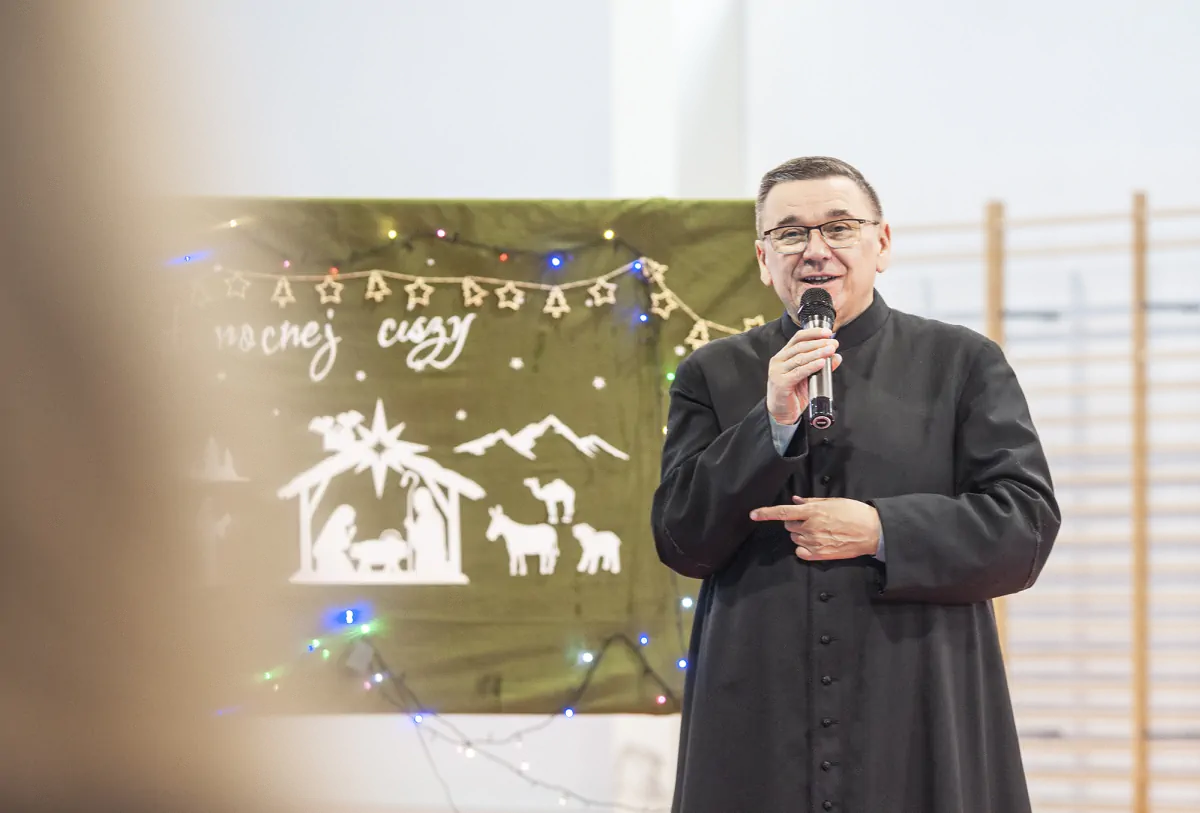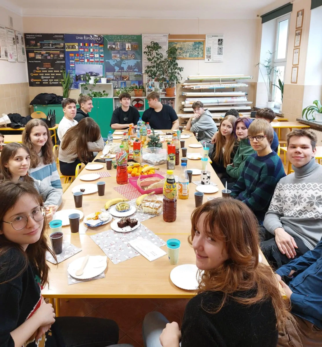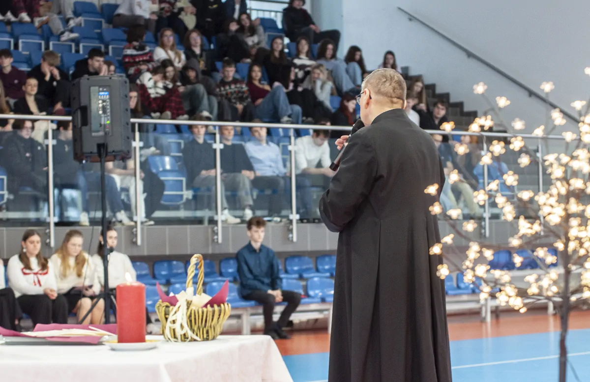 20 grudnia. Dzień pełen ciepłych życzeń i rodzinnej atmosfery. Klasowe wigilie zgromadziły uczniów i wychowawców wokół świątecznych stołów a potem wokół opłatka na hali. Uroczystą wigilię przygotował wraz z młodzieżą p. Artur Nyszko.