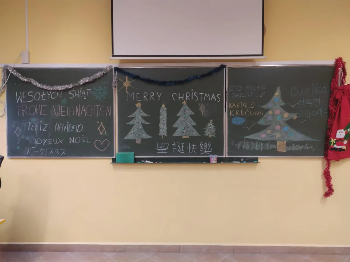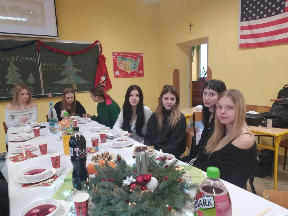 Obejrzeliśmy na niej film, autorski projekt uczniów ILO, a potem podzieliliśmy się opłatkiem i wsłuchaliśmy w piękne, polskie kolędy, wykonane przez uczniów i katechetę.
