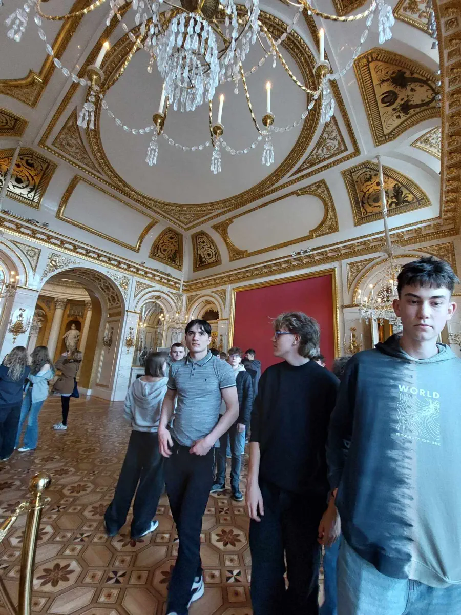 Młodzież zwiedziła Pałac na Wyspie, letnią rezydencję króla Stanisława Augusta Poniatowskiego. Podsumowaniem wycieczki była gra terenowa historyczno-jezykowa w Łazienkach. Uczniom towarzyszyły panie E. Derek, D. Grymuza i J. Kołodziejczyk