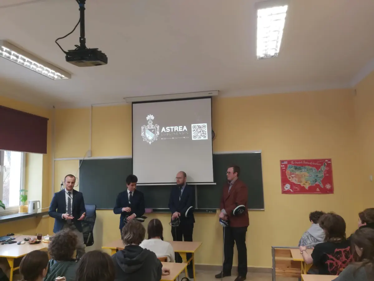 11 kwietnia na szkolnym korytarzu było ciekawie i oryginalnie. Uczniów klas 2c i 3c odwiedzili przedstawiciele studenckiej korporacji Astrea Lublinensis, organizacji zrzeszającej studentów i absolwentów uczelni wyższych, korzeniami sięgającej do Filomatów i Filaretów.