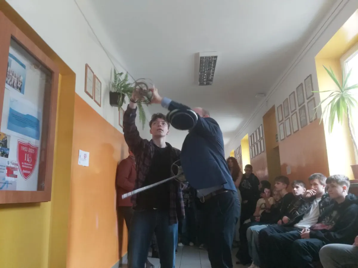 Goście starali się przybliżyć uczniom, czym są i czym się zajmują współczesne korporacje studenckie. Najwięcej emocji wzbudził pokaz szermierki używanej przez filistrów. Spotkanie koordynowali nauczyciele historii p. E. Derek i p. T. Kasperek.