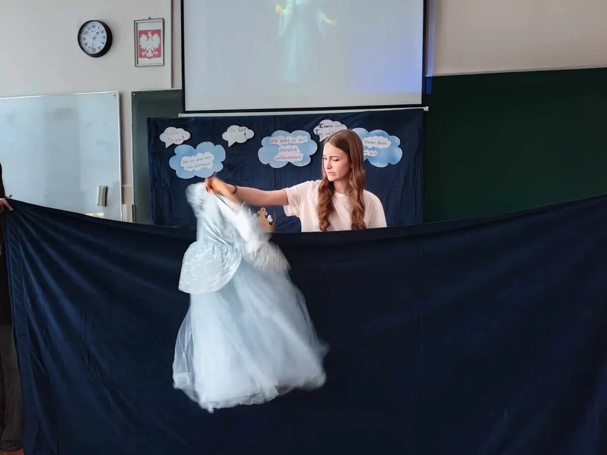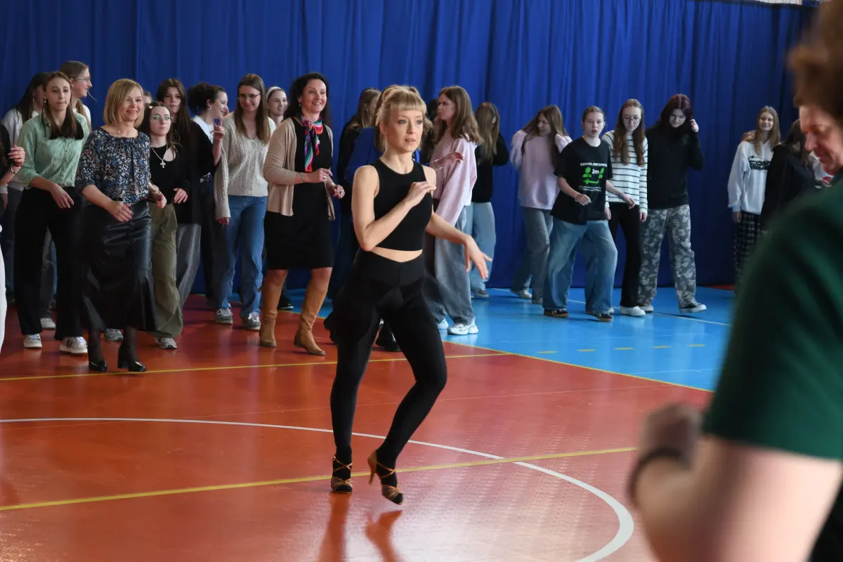 Na warsztatach z języka hiszpańskiego ósmoklasiści mieli okazję nauczyć się wyrażeń dotyczących pogody. Było dużo ruchu, zgadywanek oraz bingo. Licealiści uczący się języka niemieckiego odegrali dla młodszych kolegów przedstawienie na wesoło "Kopciuszek i czarujący książę". Warsztaty z języka angielskiego zostały powiązane z kolei z degustacją przekąsek charakterystycznych dla różnych obszarów językowych. Ósmoklasiści odbyli też spacer po Liceum, w ramach którego powtórzyli do egzaminu część zagadnień z języka angielskiego. To nie koniec atrakcji. Na hali sportowej od rana można było wziąć udział w Just Dance, a równo o godzinie 12tej państwo Małgorzata i Jarosław Pleskotowie przeprowadzili dla wszystkich chętnych uczniów, gości i gospodarzy warsztaty salsy. Ósmoklasiści poznali także szczegółowo ofertę szkoły oraz organizację nauki przedmiotów w zakresie rozszerzonym i języków obcych.