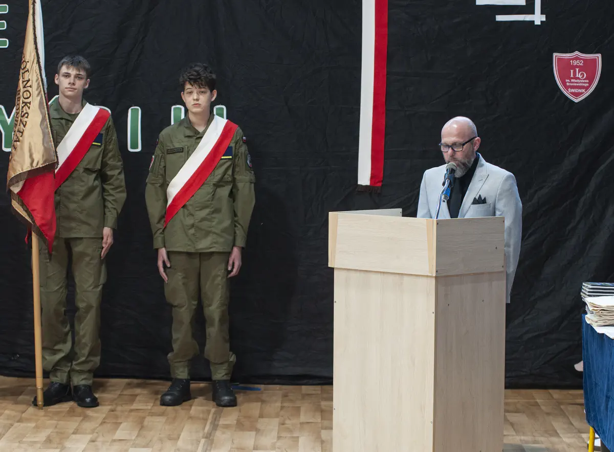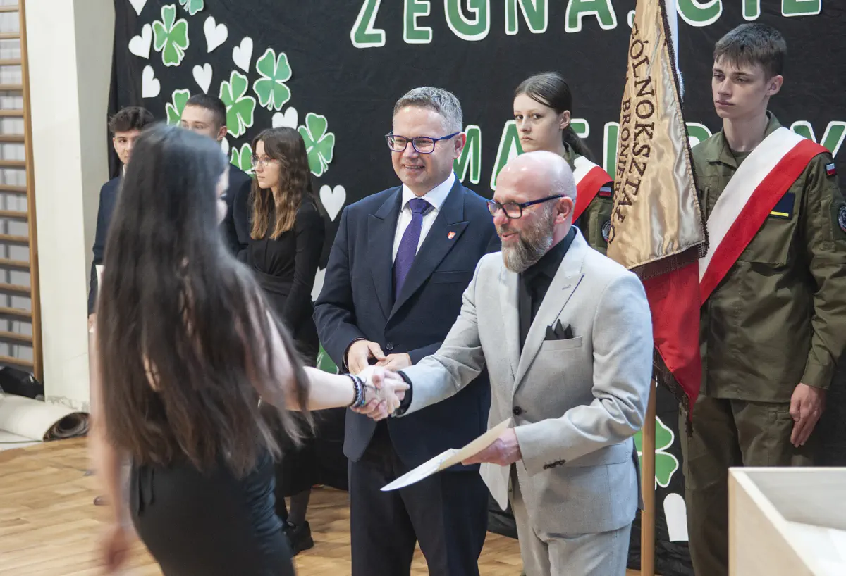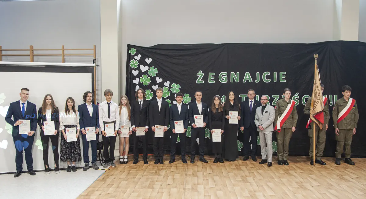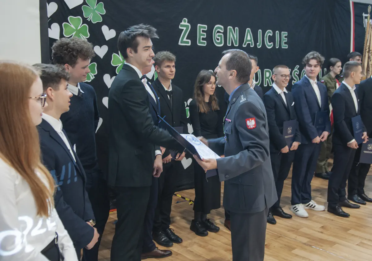25 kwietnia cała społeczność szkolna, a także goście: wicestarosta powiatu świdnickiego p. Michał Piotrowicz, komendant Regionalnego Centrum Informatyki w Krakowie p. płk Krzysztof Dudek, szef Wojskowego Centrum Rekrutacji w Lublinie p. ppłk Piotr Szczepaniuk oraz przewodnicząca Rady Rodziców p. M. Zielińska – Buła pożegnali uczniów klas czwartych.