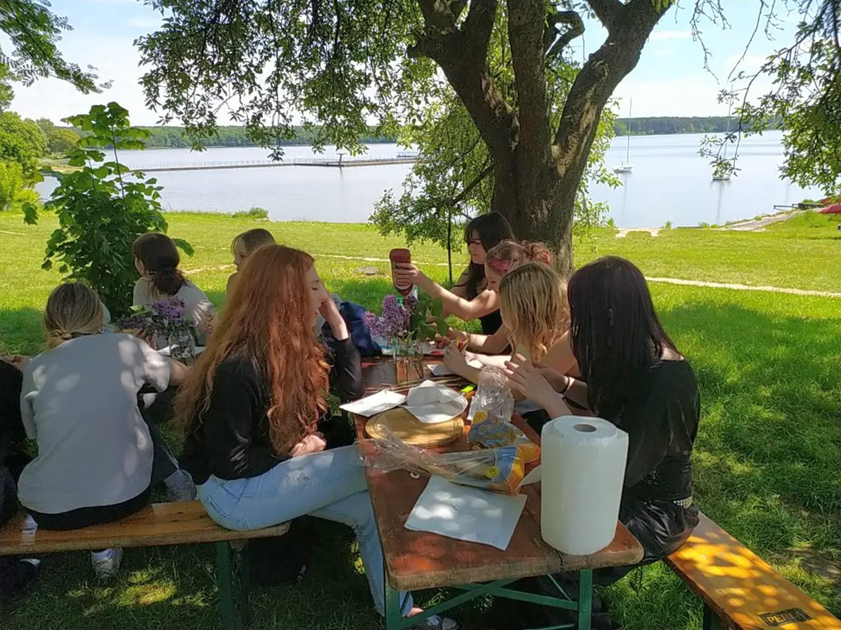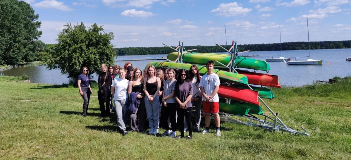 Spływ był świetną okazją do sprawdzenia swoich umiejętności wiosłowania, integracji oraz podziwiania malowniczych widoków przyrody. Rzeka Bystrzyca zachwyciła spokojnym nurtem, a otaczające ją łąki stworzyły niezwykłą atmosferę bliskości z naturą. Nie zabrakło również wodnych wyzwań – uczniowie musieli wykazać się sprytem i dobrą koordynacją, by pokonać przeszkody, takie jak leżące drzewa, wystające konary czy płytkie dno na niektórych odcinkach rzeki.