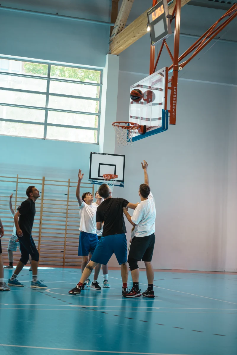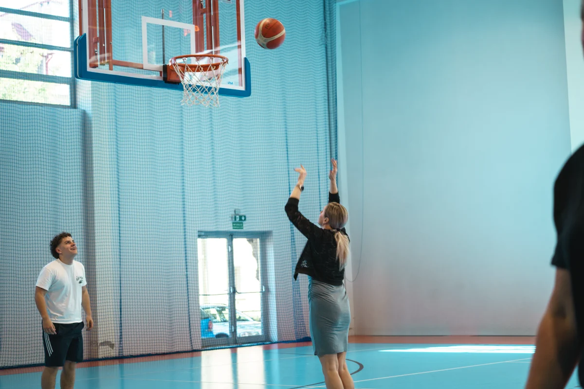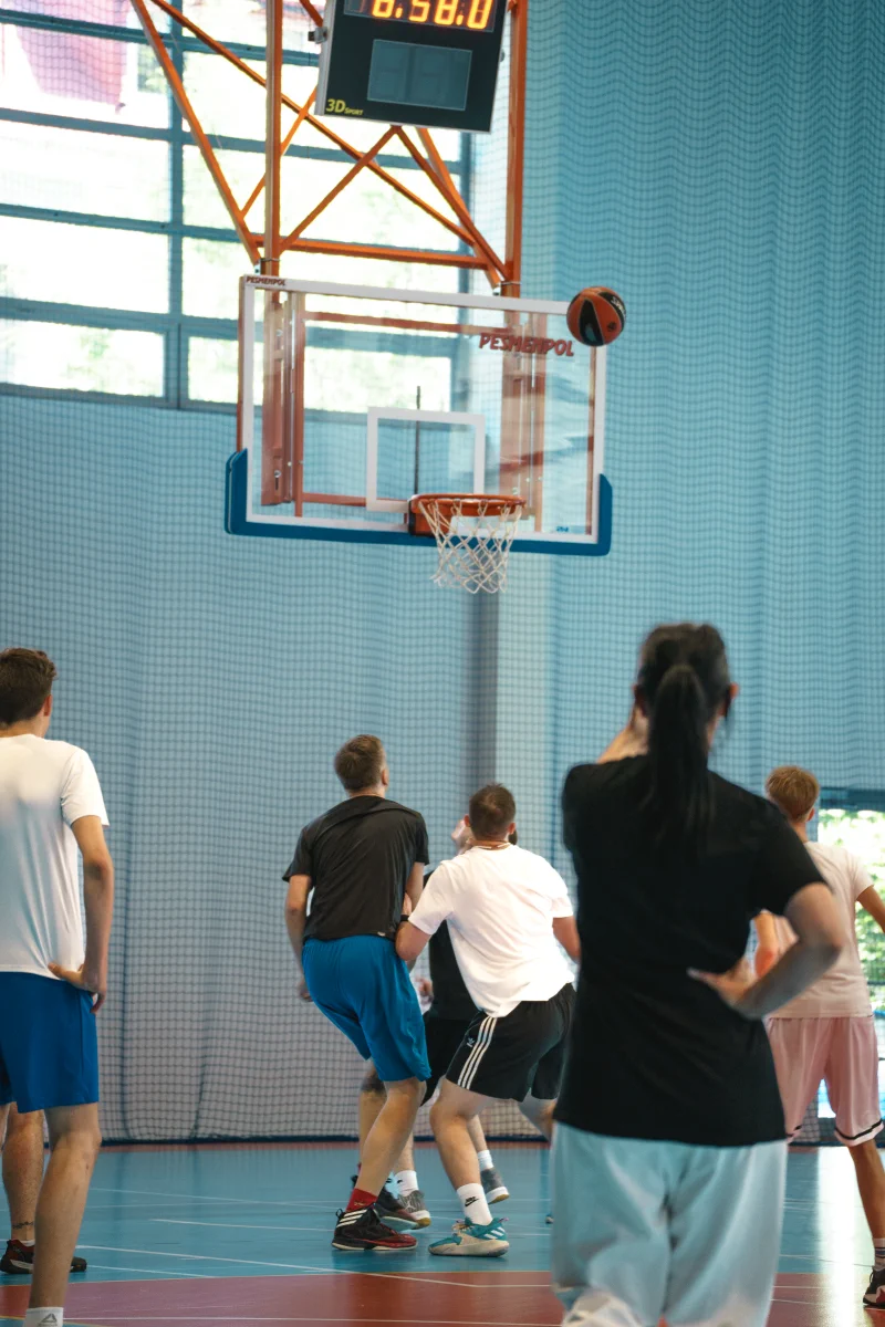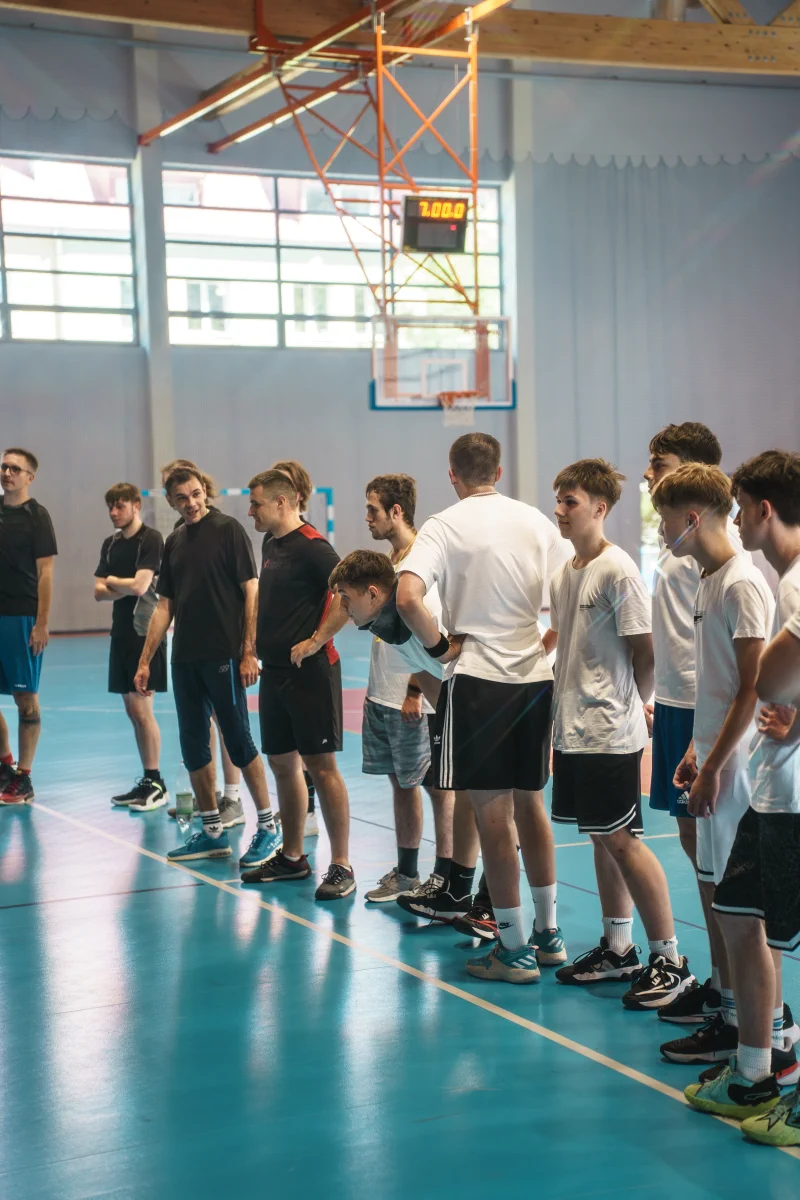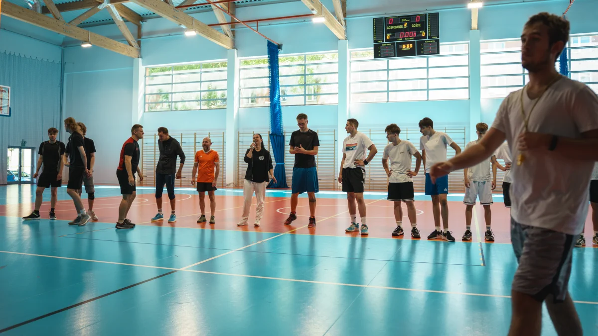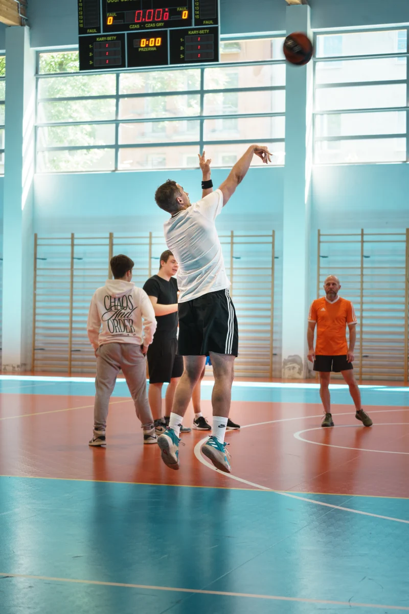 Mecz koszykówki nauczyciele i absolwenci vs uczniowie