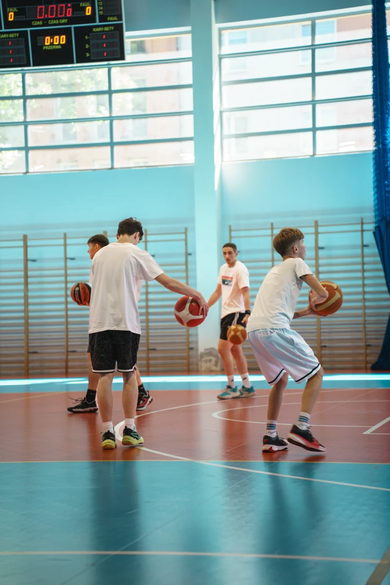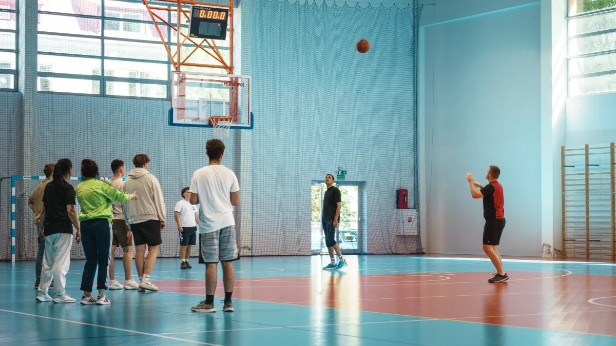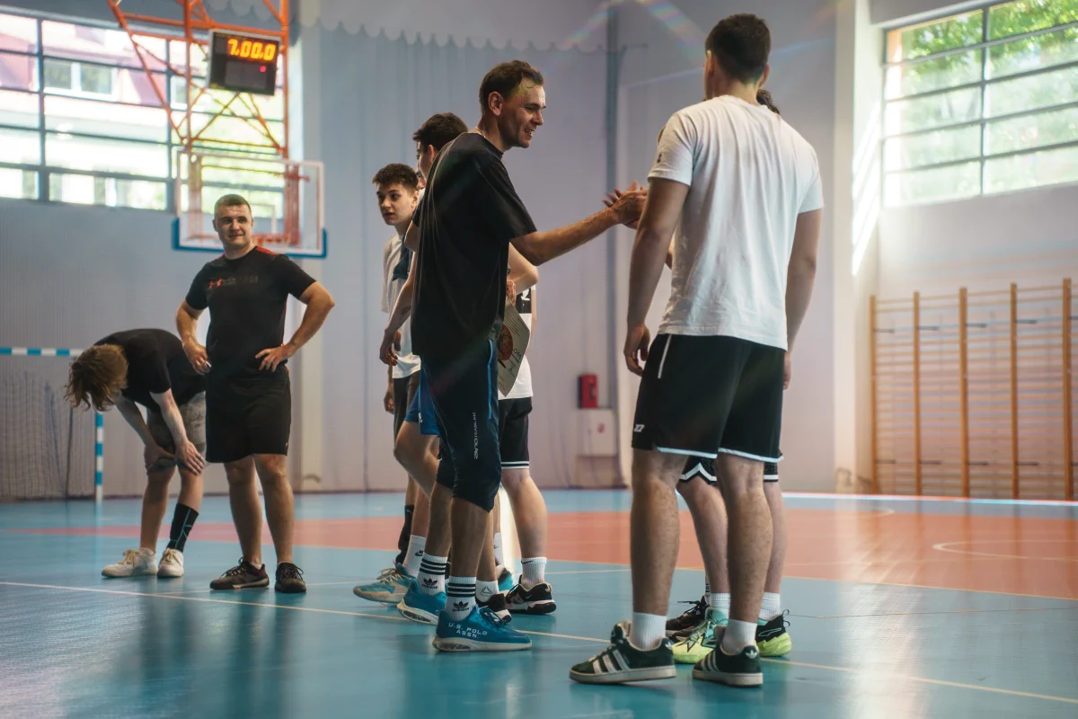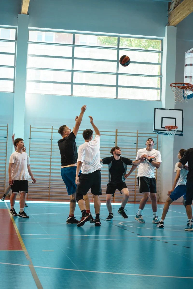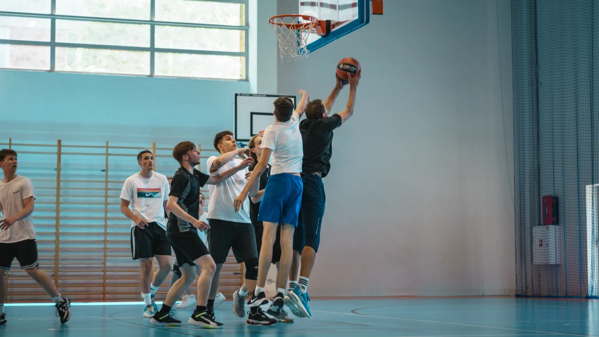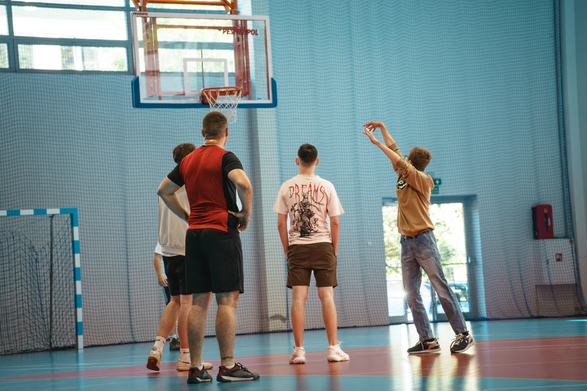 Mecz koszykówki nauczyciele i absolwenci vs uczniowie