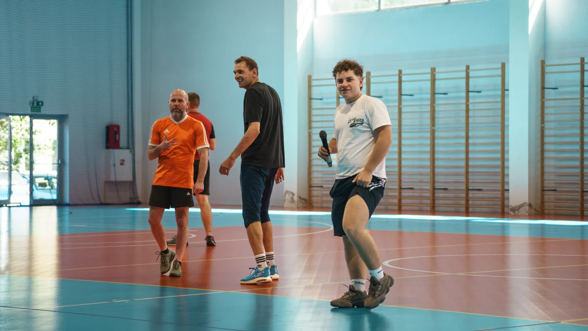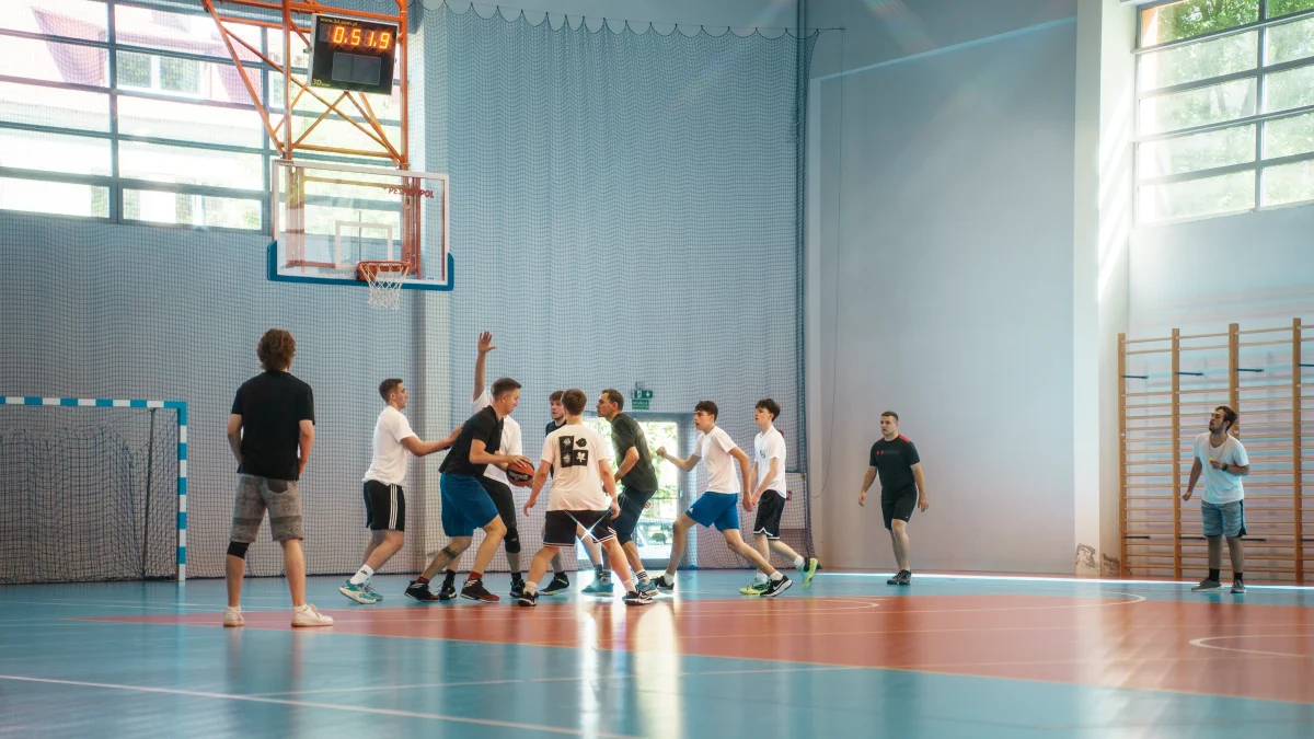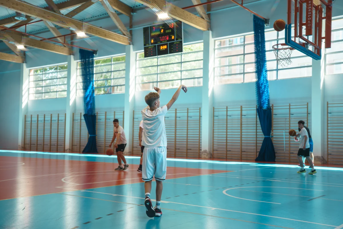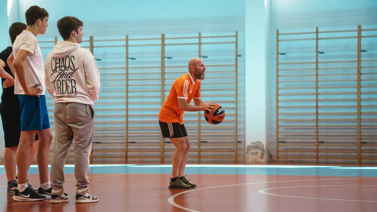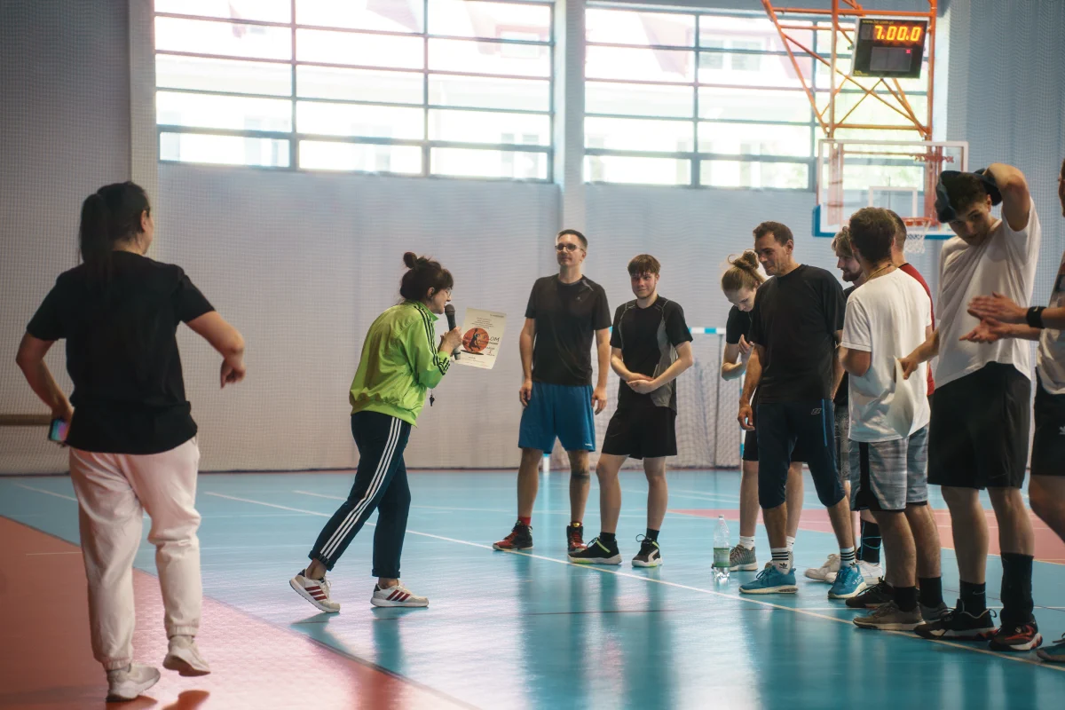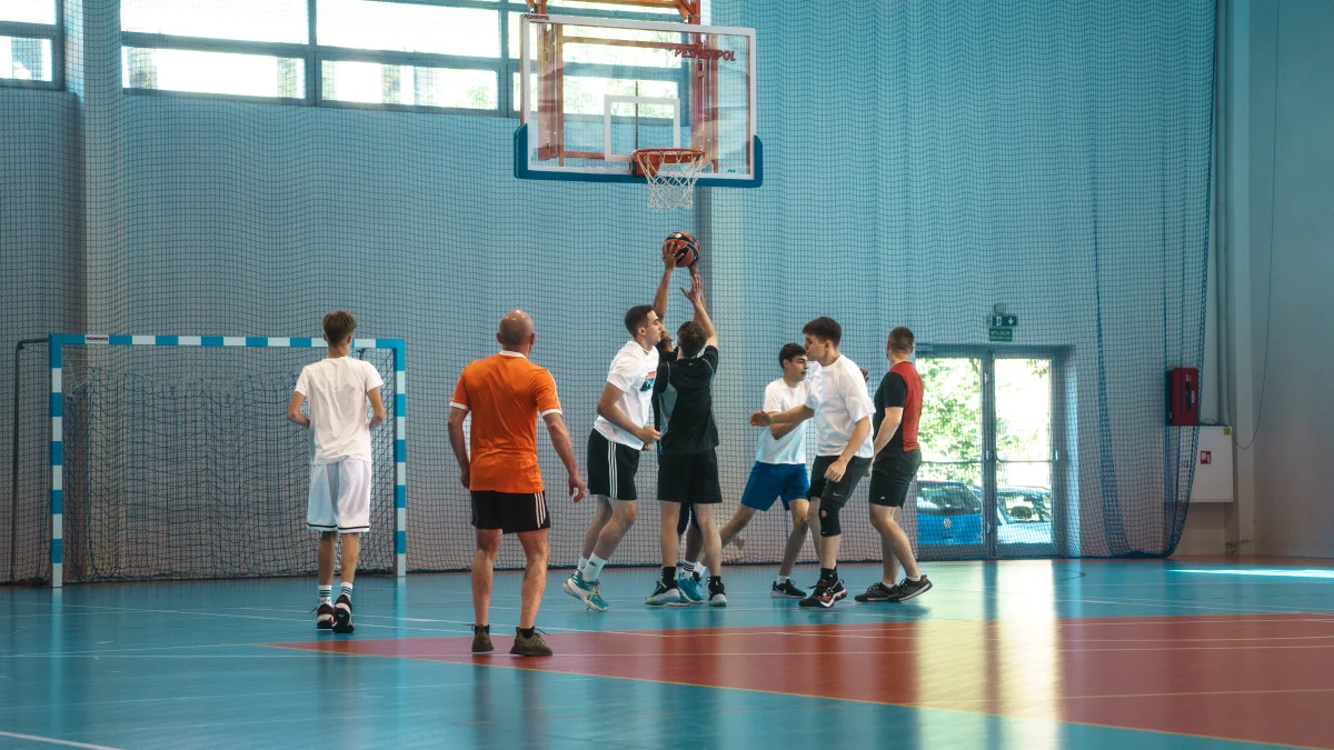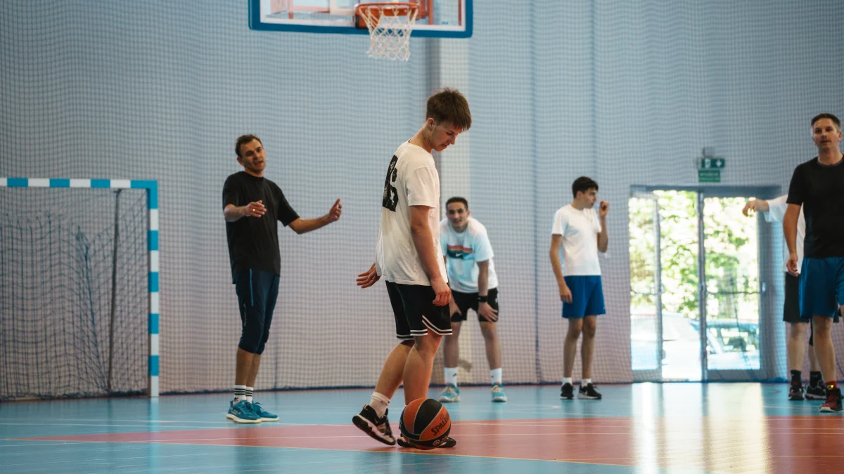 Mecz koszykówki nauczyciele i absolwenci vs uczniowie
