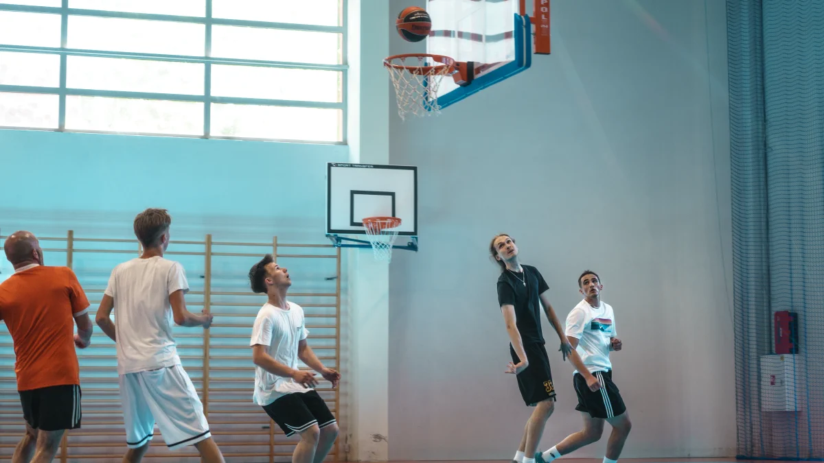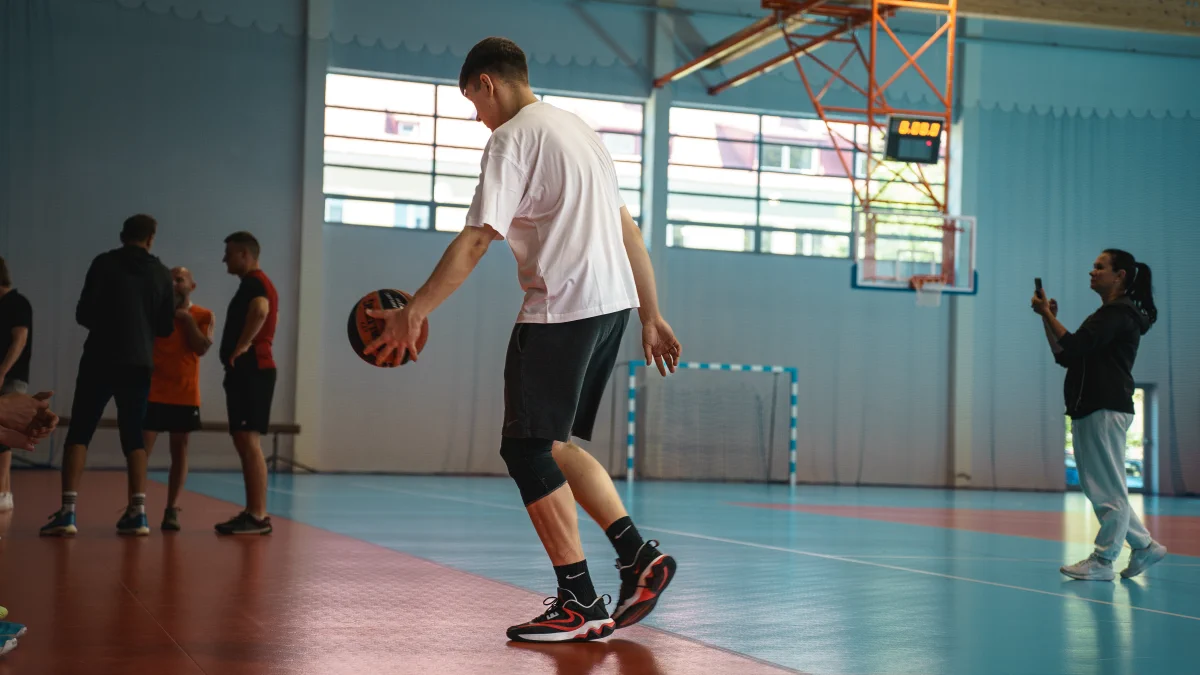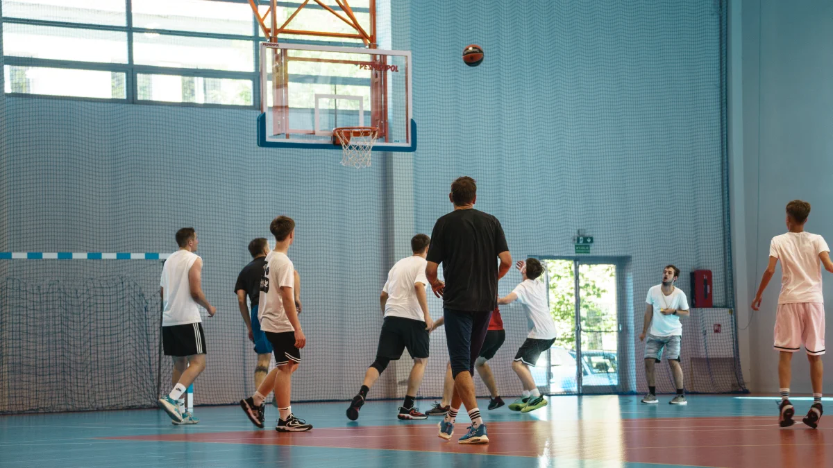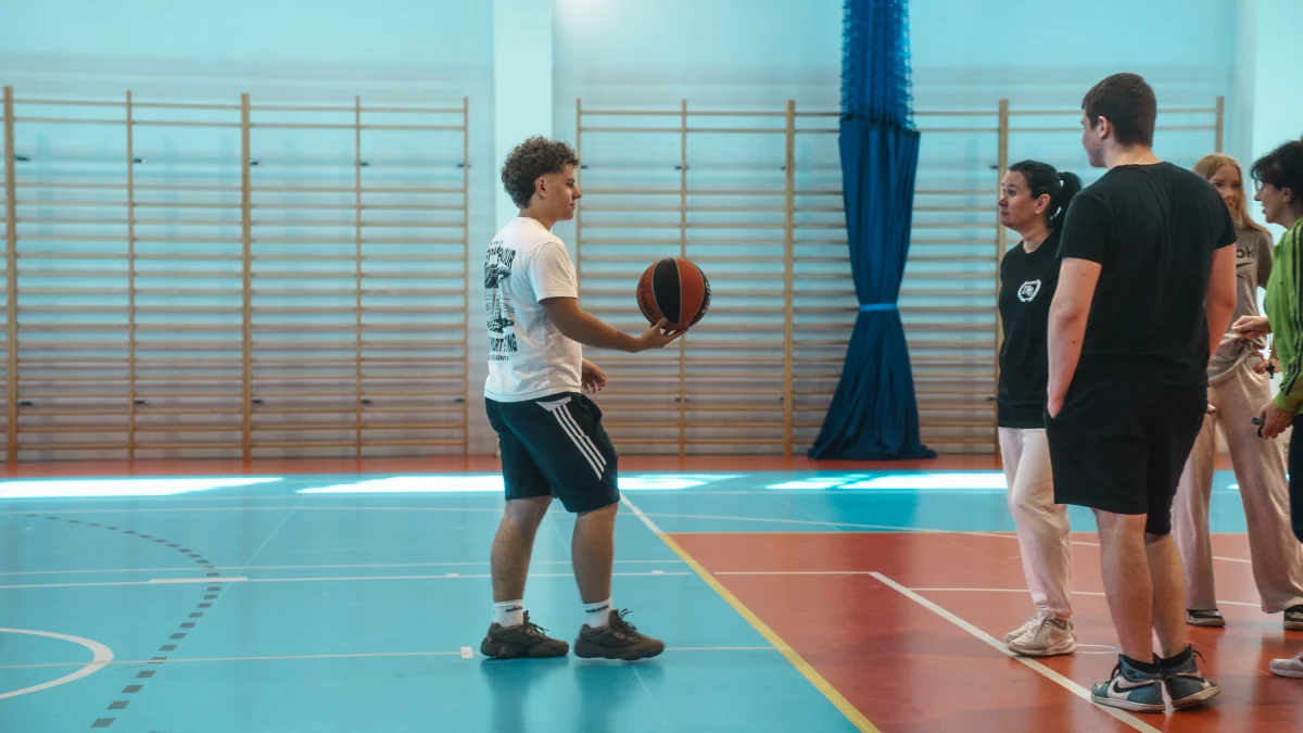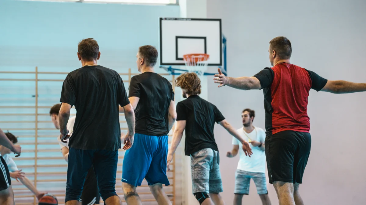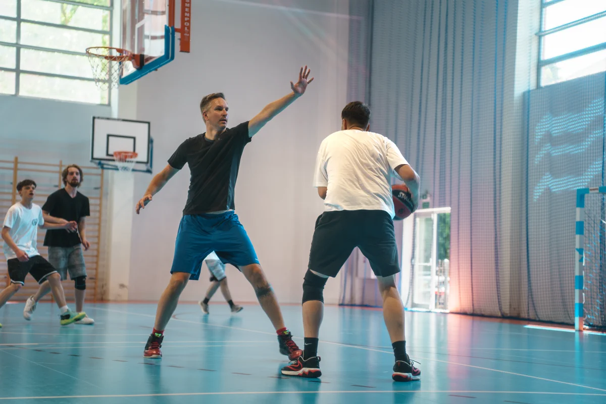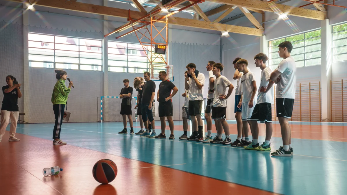 Mecz koszykówki nauczyciele i absolwenci vs uczniowie