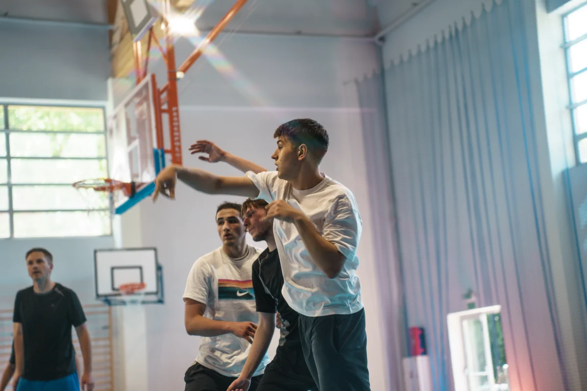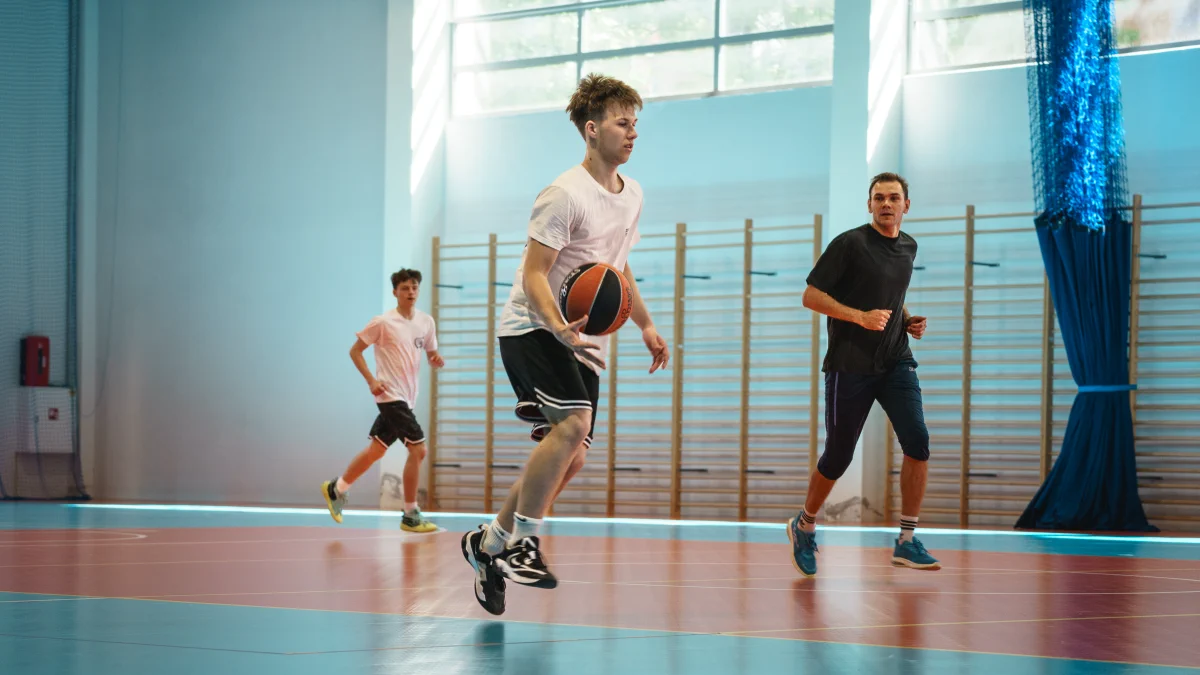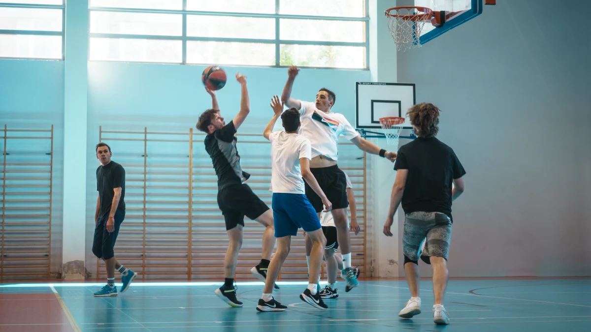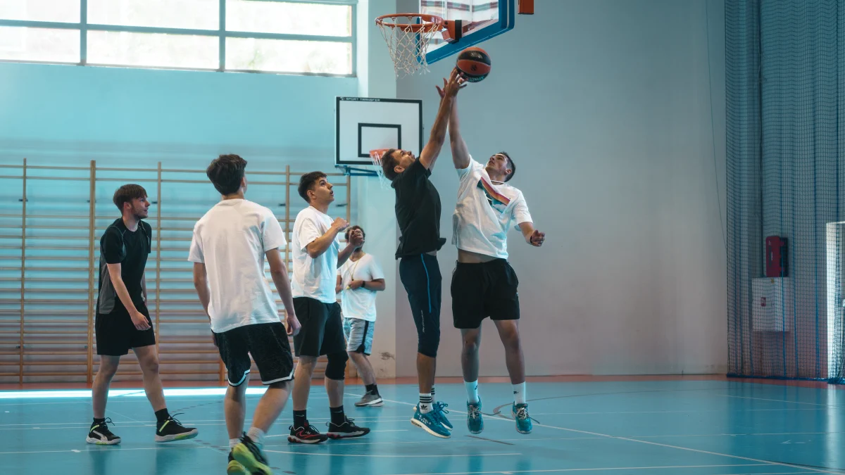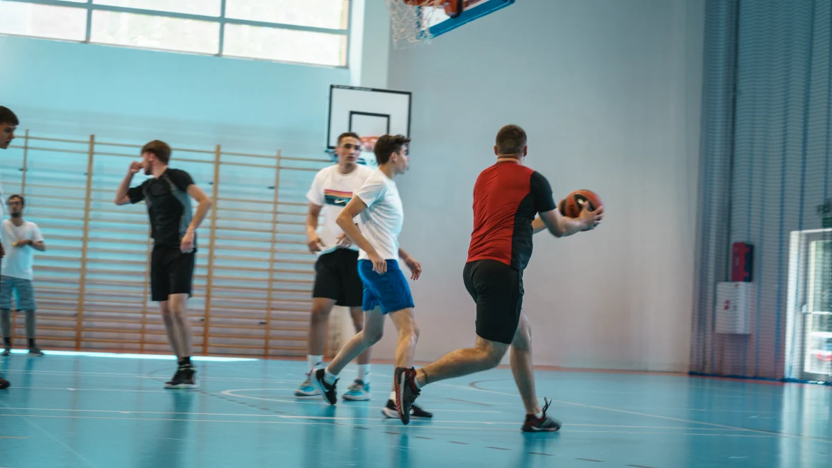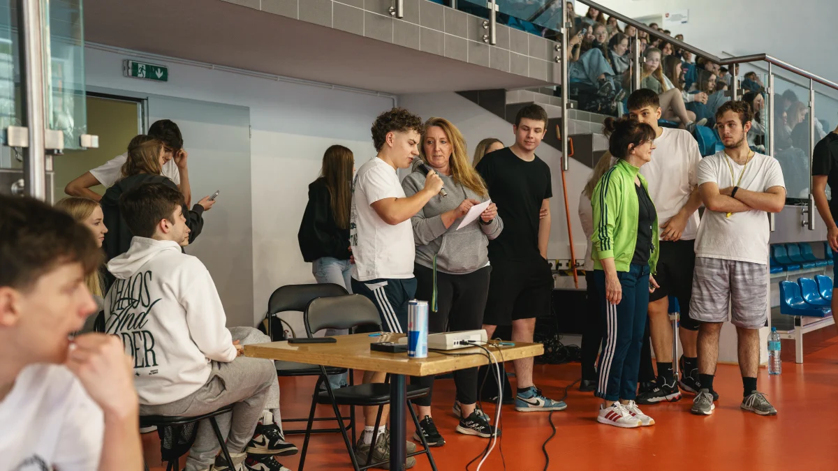 Mecz koszykówki nauczyciele i absolwenci vs uczniowie