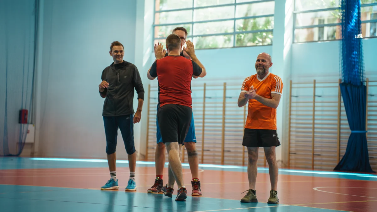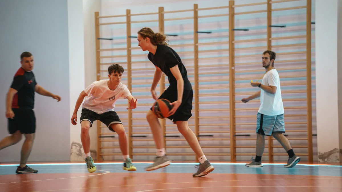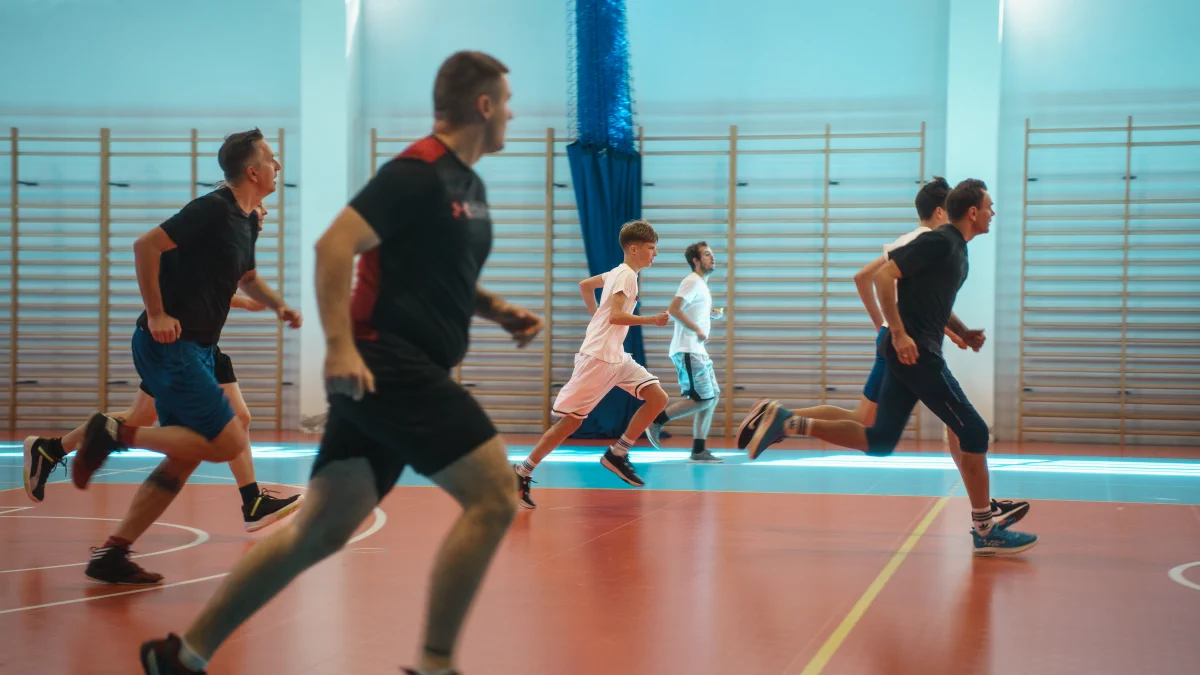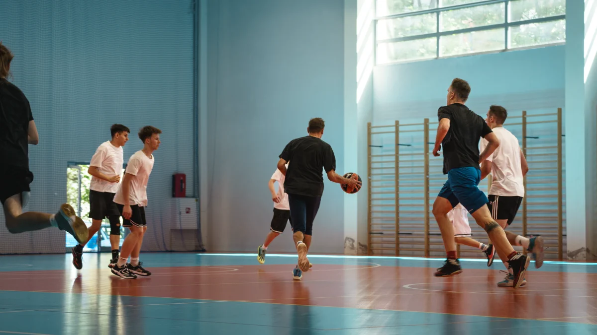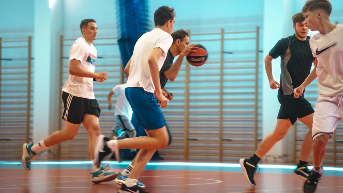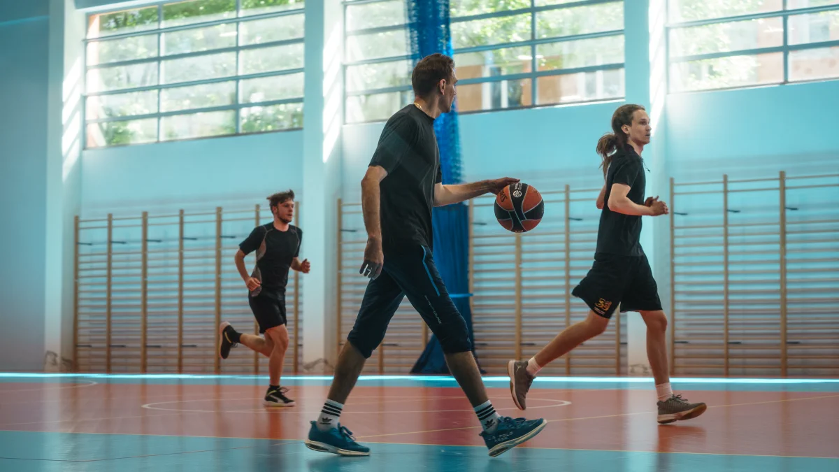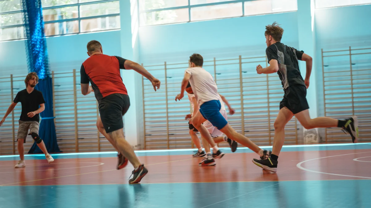 Mecz koszykówki nauczyciele i absolwenci vs uczniowie