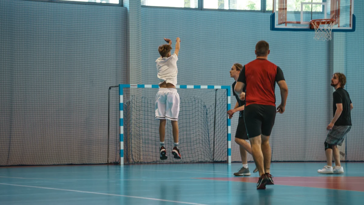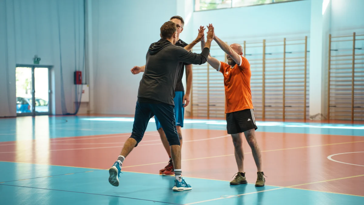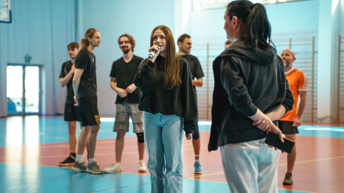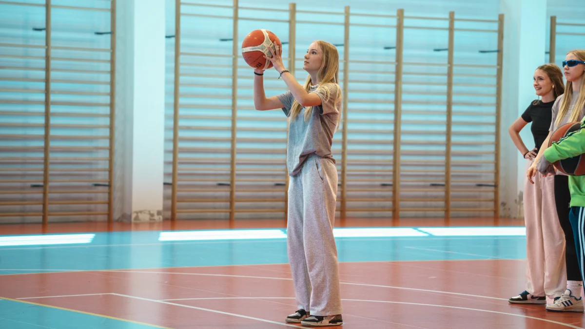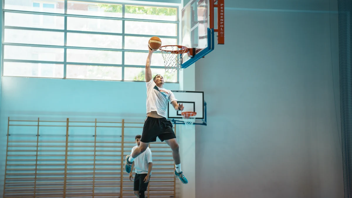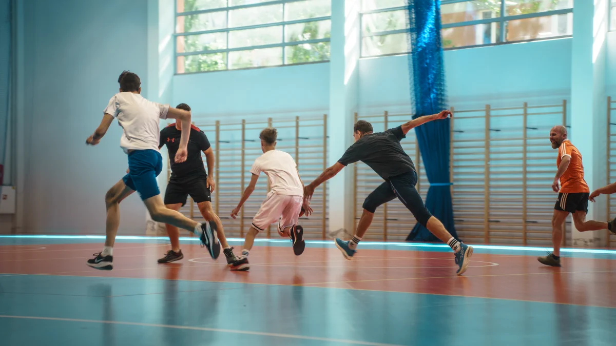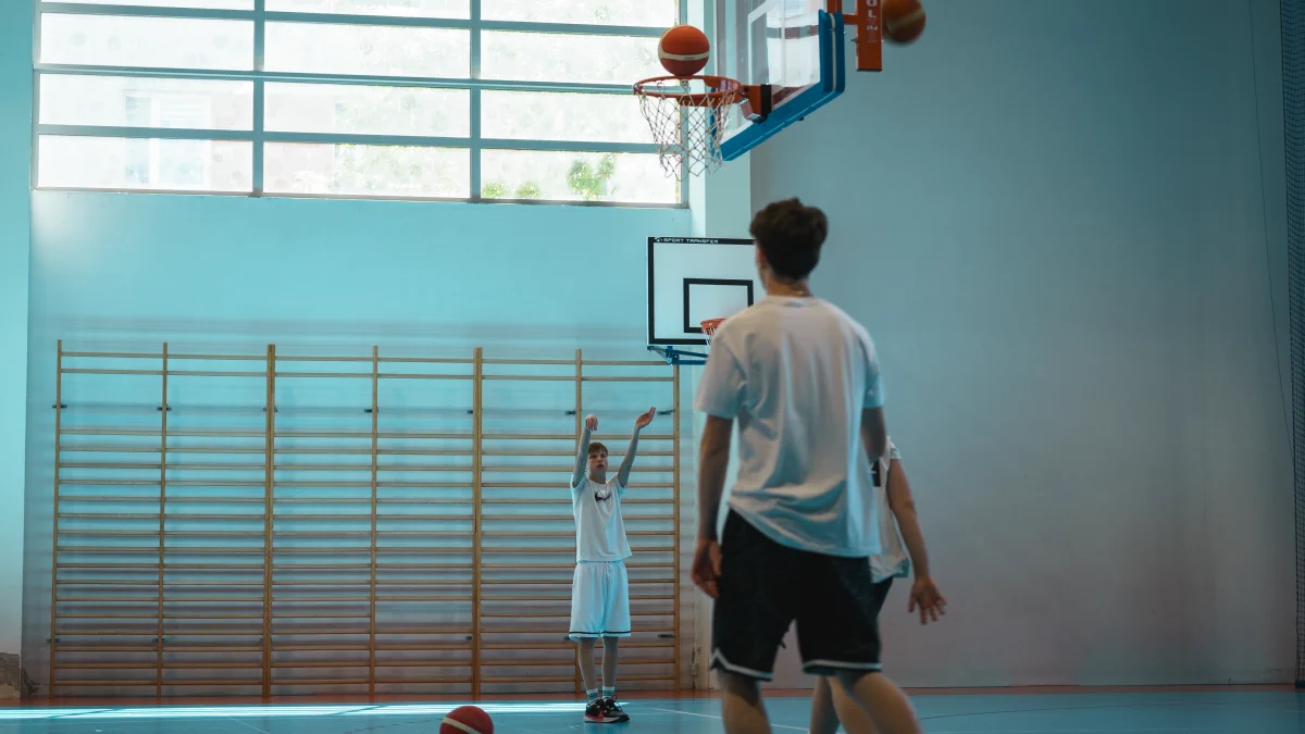 Mecz koszykówki nauczyciele i absolwenci vs uczniowie