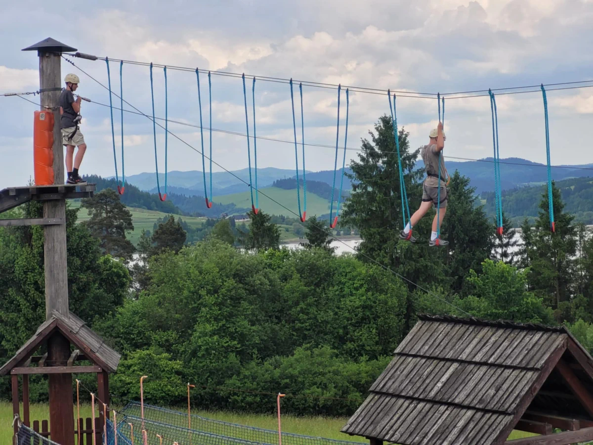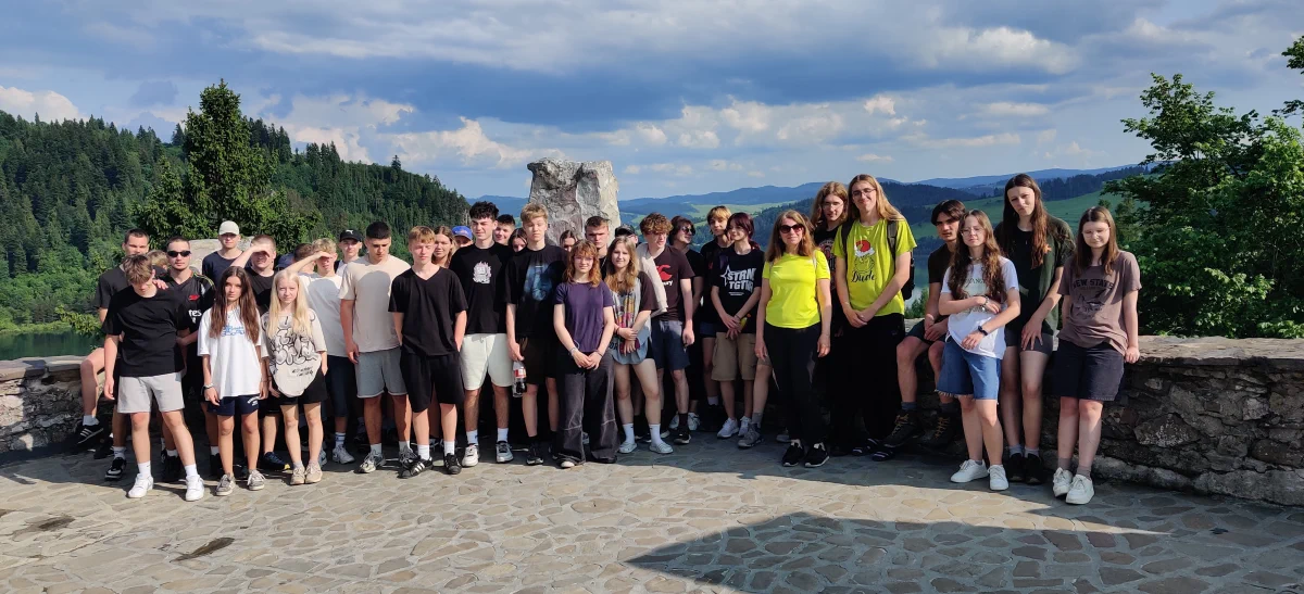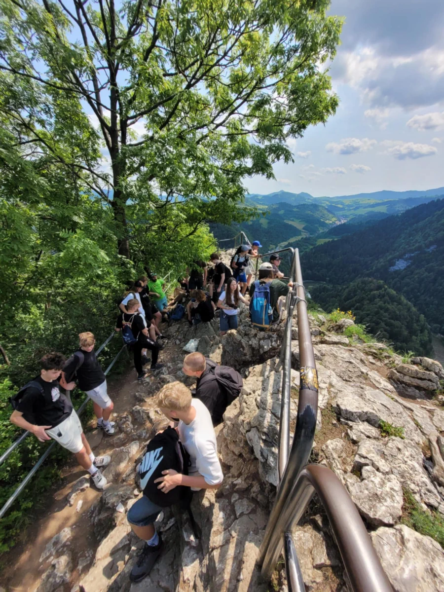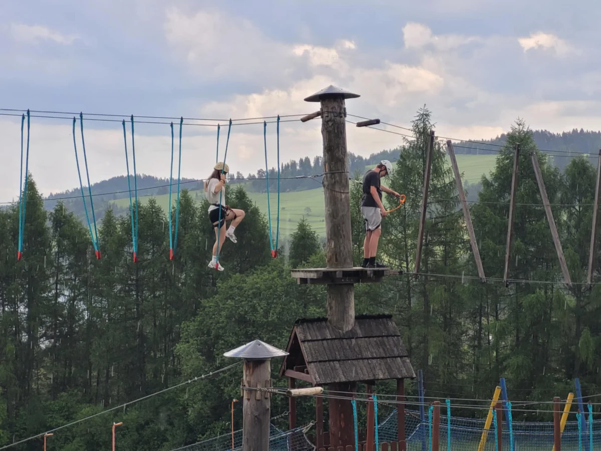 Drugiego dnia uczniowie wyruszyli w góry – celem była Sokolica. Podejście dało trochę w kość, ale widok z góry był tego wart. Pienińska sosna i panorama na Dunajec zapierały dech w piersiach – dosłownie i w przenośni. Potem licealiści przenieśli się kilka metrów nad ziemię – park linowy sprawdził zwinność, odwagę i… równowagę. Na koniec – odrobina historii i klimatu dawnych czasów: uczniowie zwiedzili Zamek w Niedzicy, gdzie poznali tajemnice ukryte w zamkowych murach. Pieniny pokazały, że przygoda może mieć wiele twarzy – od natury, przez sport, po historię.