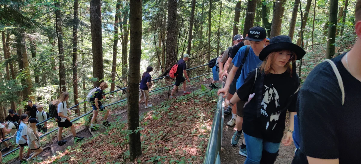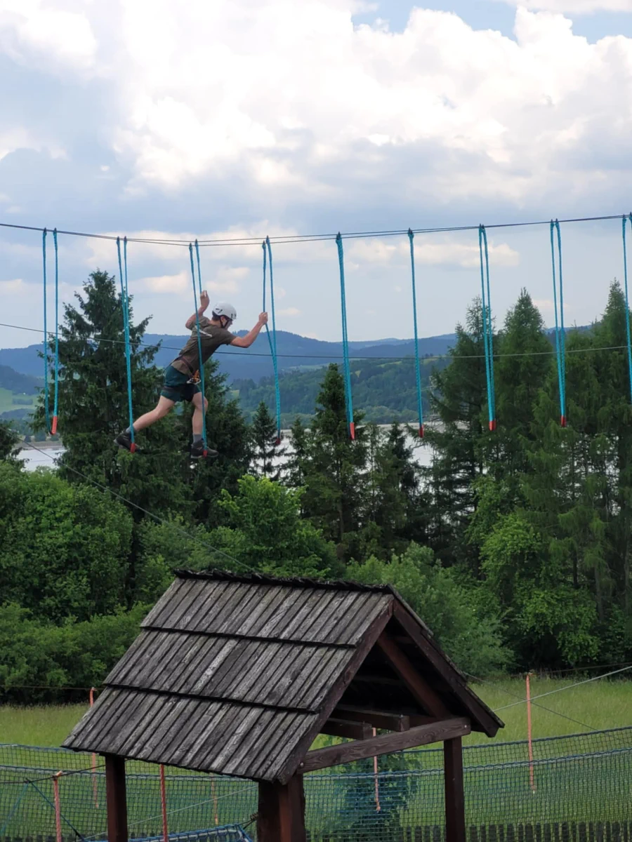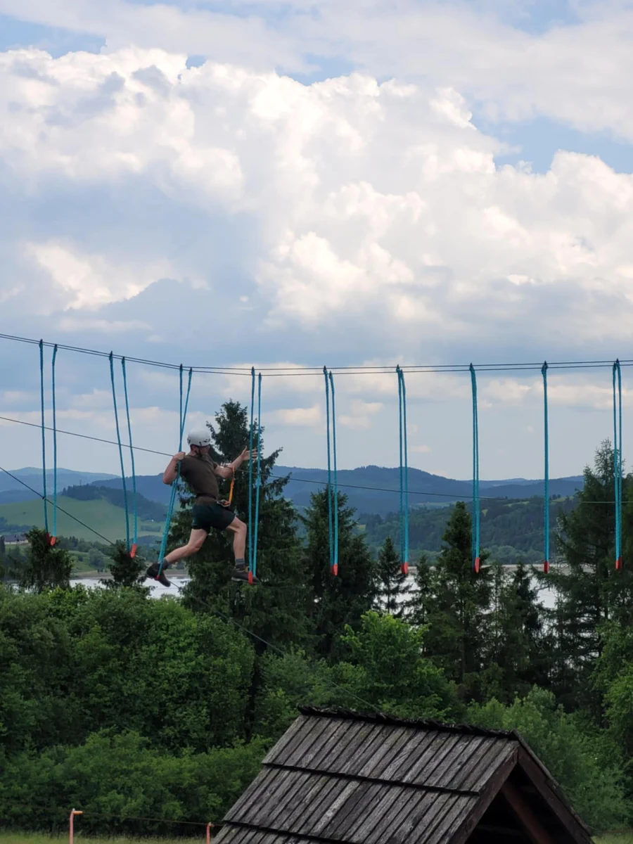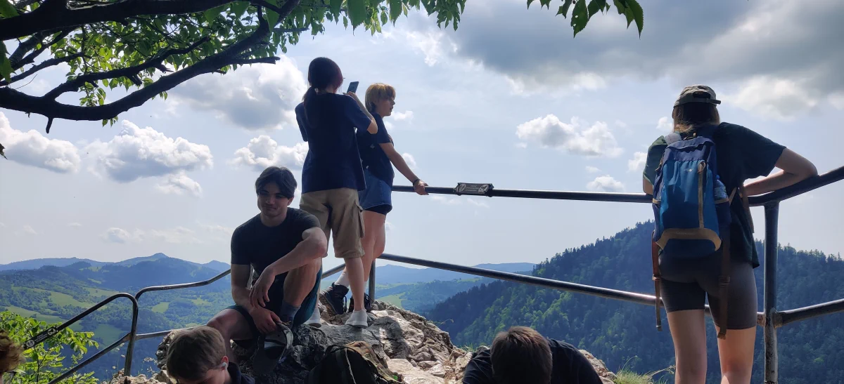 Drugiego dnia uczniowie wyruszyli w góry – celem była Sokolica. Podejście dało trochę w kość, ale widok z góry był tego wart. Pienińska sosna i panorama na Dunajec zapierały dech w piersiach – dosłownie i w przenośni. Potem licealiści przenieśli się kilka metrów nad ziemię – park linowy sprawdził zwinność, odwagę i… równowagę. Na koniec – odrobina historii i klimatu dawnych czasów: uczniowie zwiedzili Zamek w Niedzicy, gdzie poznali tajemnice ukryte w zamkowych murach. Pieniny pokazały, że przygoda może mieć wiele twarzy – od natury, przez sport, po historię.