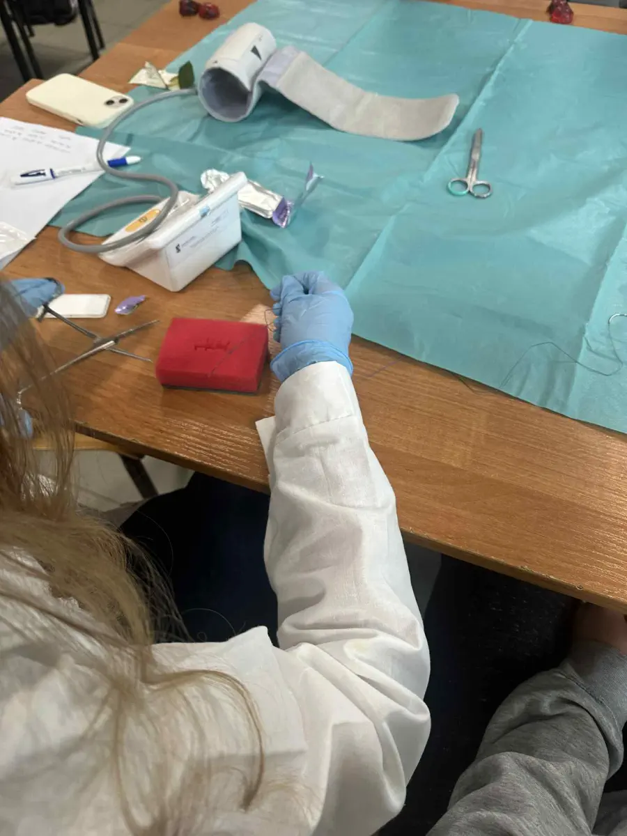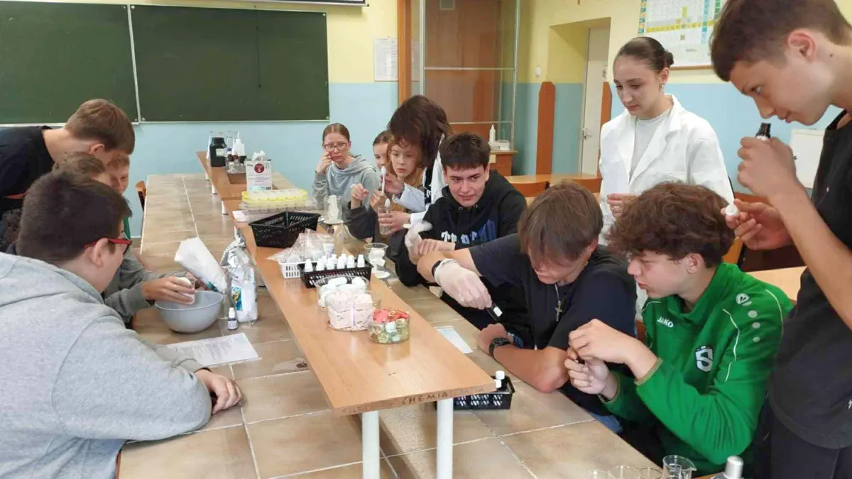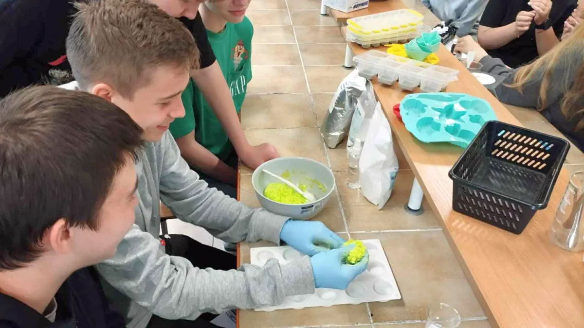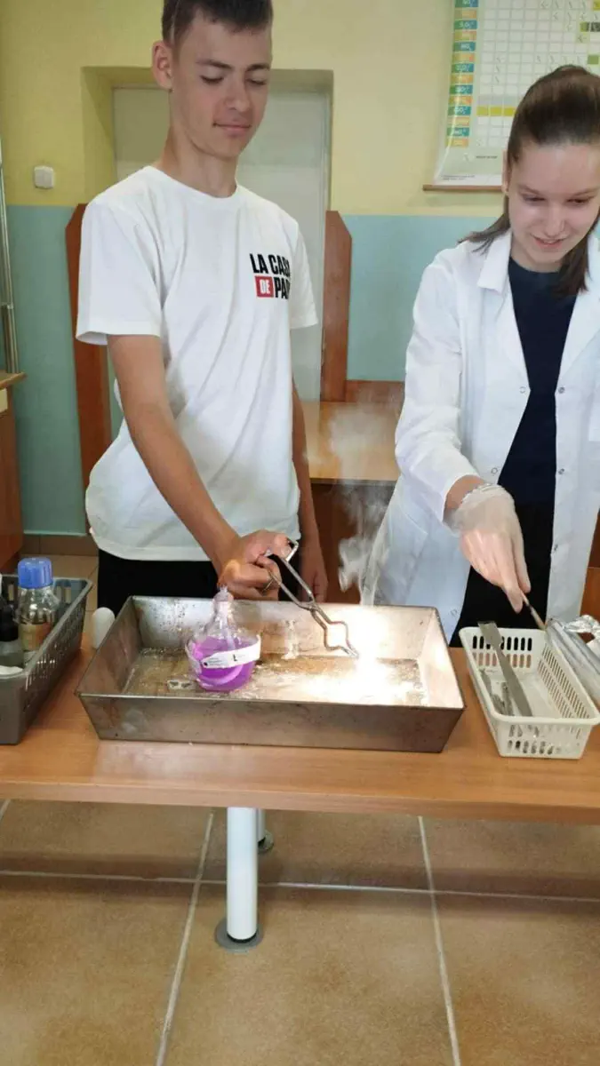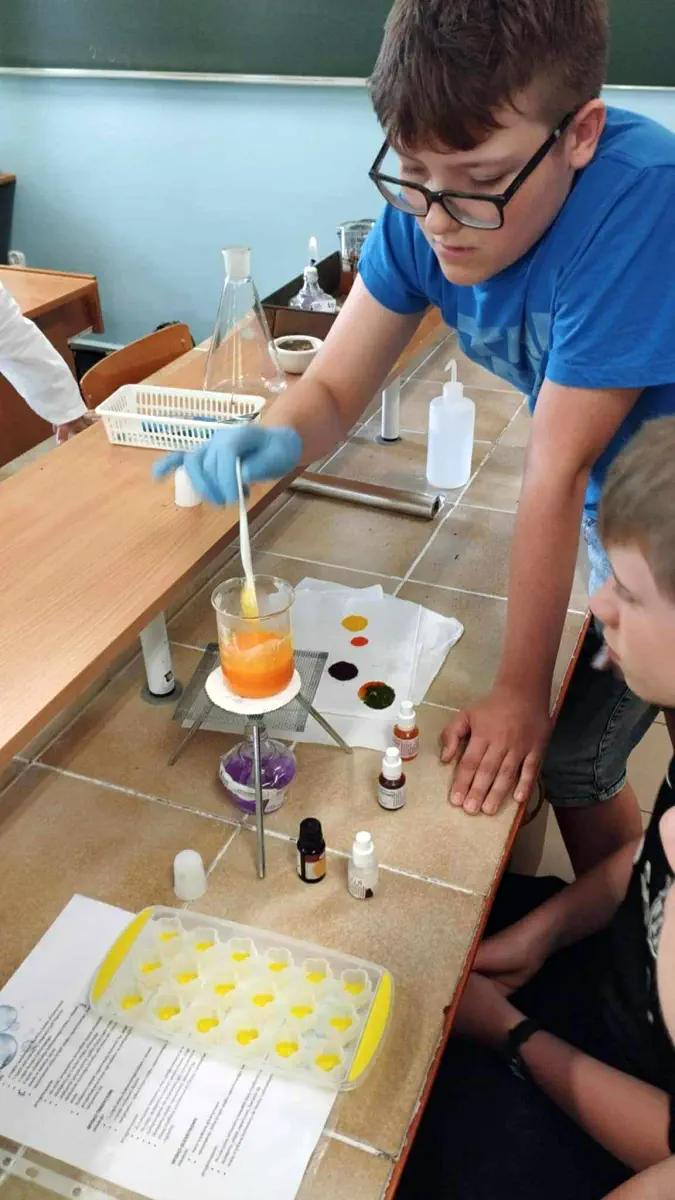 Na warsztatach biologicznych uczniowie mierzyli ciśnienie krwi w stanie spoczynku i po wysiłku, a następnie analizowali zachodzące w ich organizmie zmiany. Dowiedzieli się , jakie wartości tego parametru powinny budzić nasze zaniepokojenie. Następnym ciekawym doświadczeniem było wykonywanie prostego , pojedynczego szwu chirurgicznego. Każdy mógł sam chwilę poczuć się jak chirurg. Zajęcia z chemii były z kolei kolorowe i wybuchowe. Uczniowie samodzielnie otrzymywali mydła i kule do kąpieli. Wykonywali reakcje strąceniowe i próby w płomieniach, dzięki czemu dowiedzieli się jakie substancje odpowiadają za kolory fajerwerków. Nie obyło się bez efektów specjalnych- pojawił się duch w kolbie, była pochodnia bez ognia i lokomotywa.