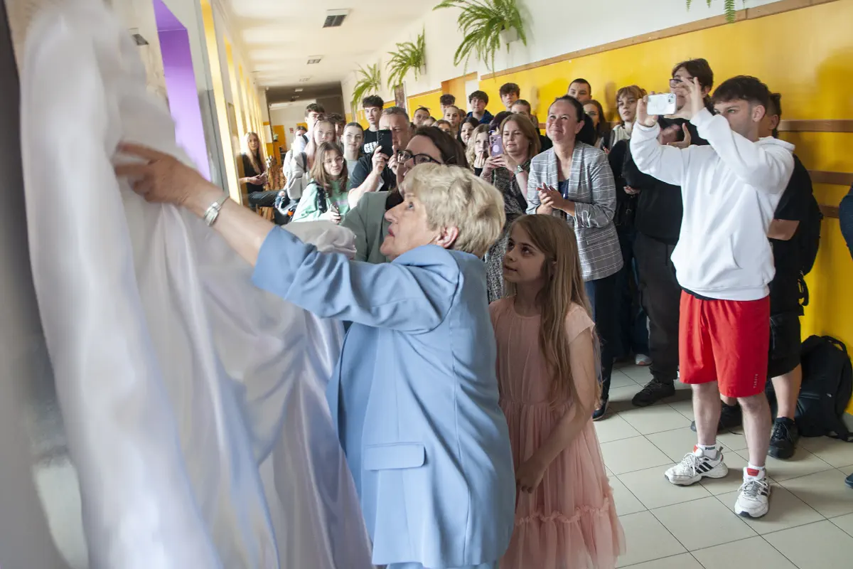 Po wysłuchaniu koncertu cała społeczność szkoły udała się na I piętro, gdzie członkowie rodziny Stanisława Stefańczyka odsłonili tablicę upamiętniającą jego karierę zawodową oraz tablicę nadania Sali matematycznej 38 imię Stanisława Stefańczyka.