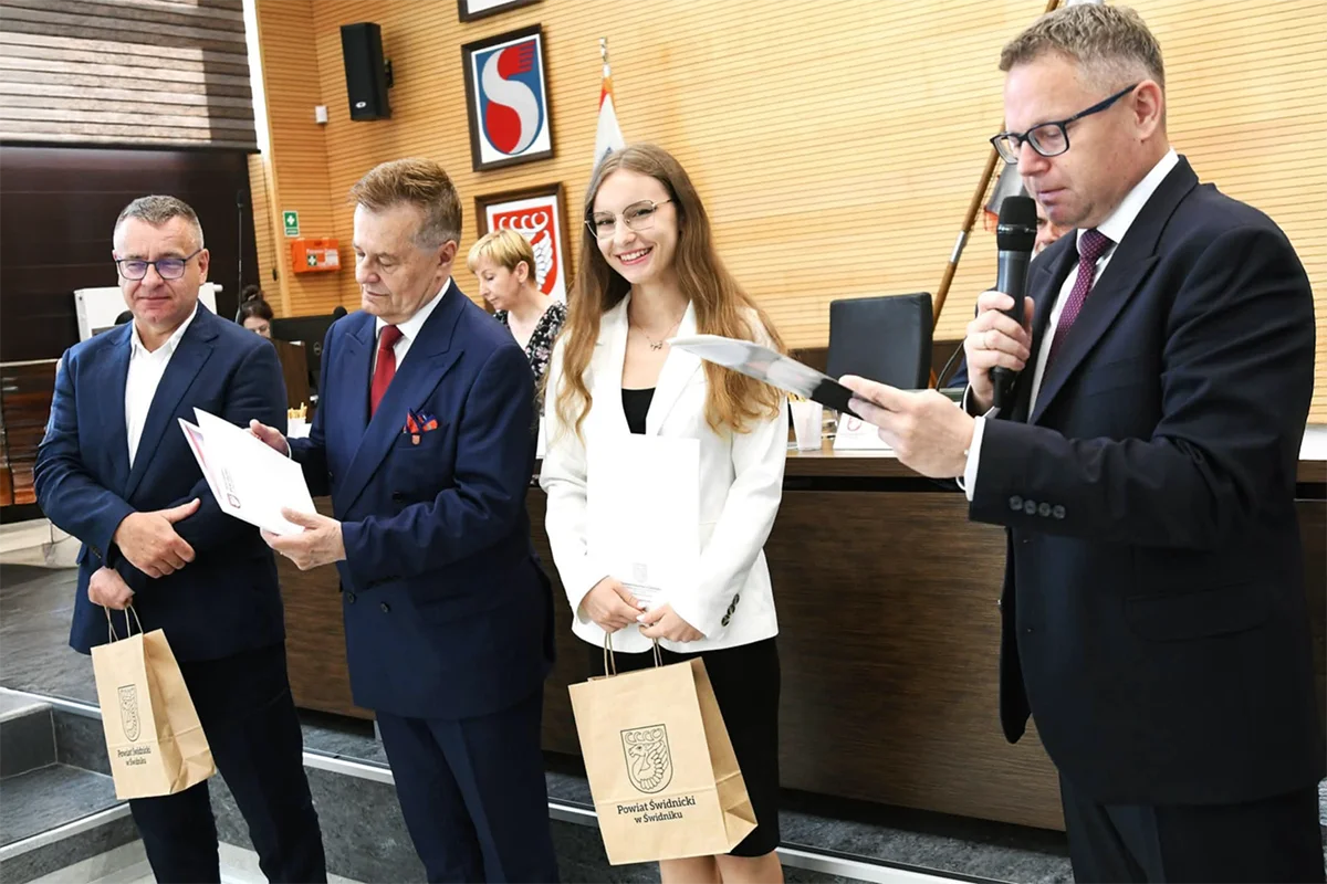 24 czerwca na sesji Rady Powiatu Starosta Powiatu Świdnickiego p. Waldemar Jakson wręczył nagrody najlepszym uczniom szkół powiatowych. Wśród prymusów znalazły się dwie uczennice naszej Szkoły: Karolina Kowalik i Natalia Stachyra. Dziewczynom towarzyszył dyrektor ILO p. Tomasz Król