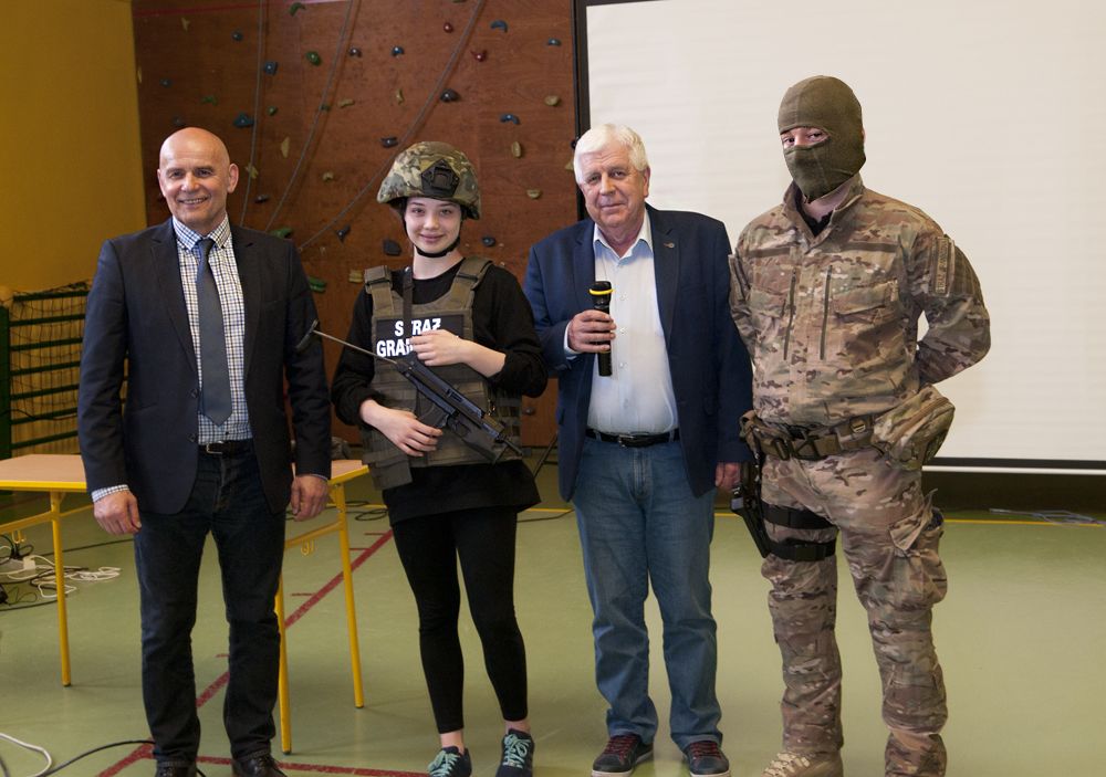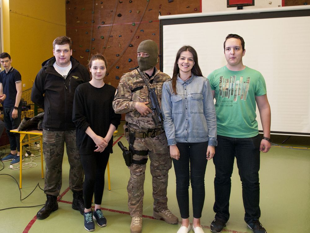 6 kwietnia na zaproszenie wicestarosty powiatu świdnickiego p.W. Białowąsa odwiedzili nas pracownicy Nadburzańskiego Oddziału Straży Granicznej. W pierwszej części spotkania uczniowie dowiedzieli się, czym zajmuje się Straż Graniczna, jak zostać strażnikiem granicznym i jak wyglądają procedury kwalifikacyjne na strażnika. Druga cześć spotkania została poświęcona misji w Macedonii, której na prośbę rządu macedońskiego podjęło się 30 funkcjonariuszy Straży Granicznej.