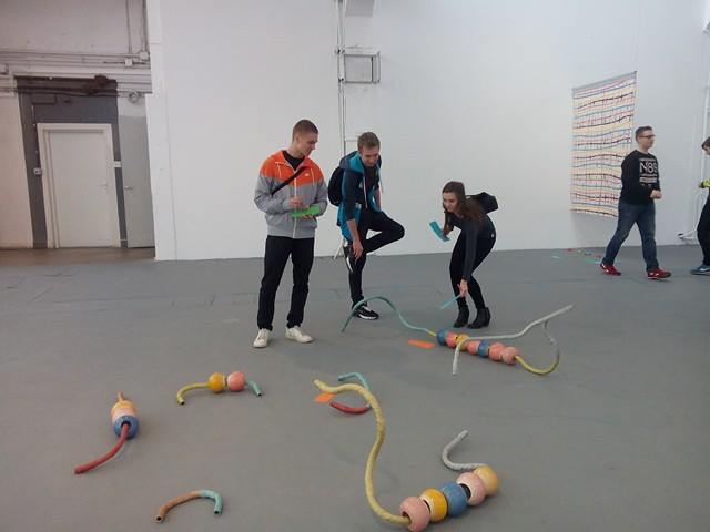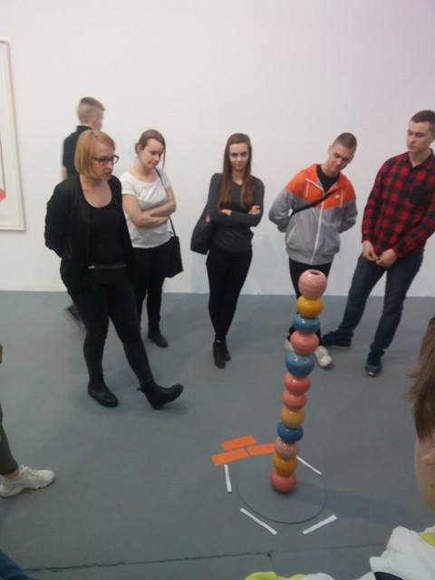 które określa często mianem „przedmiotów”. Na wystawie edukacyjnej ze zbiorów Galerii Labirynt i Lubelskiego Towarzystwa Zachęty Sztuk Pięknych prezentowane są prace na temat gestu artystycznego. Podczas warsztatów młodzież zastanawiała się nad tym, które gesty są uniwersalne, a które czytelne tylko dla określonej grupy, czy gest może stać się znakiem, i jak stworzyć uniwersalny gest, rozszyfrowywała znaczenia gestów. Wystawa Bielawskiej natomiast posłużyła do twórczego opracowania zagadnienia abstrakcji w sztuce współczesnej. Opiekę nad młodzieżą sprawowały panie D. Jaśkowska oraz K. Paszko.