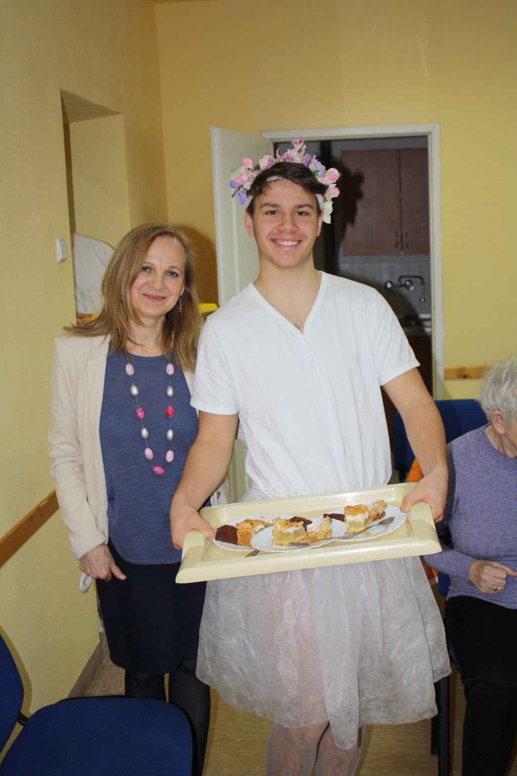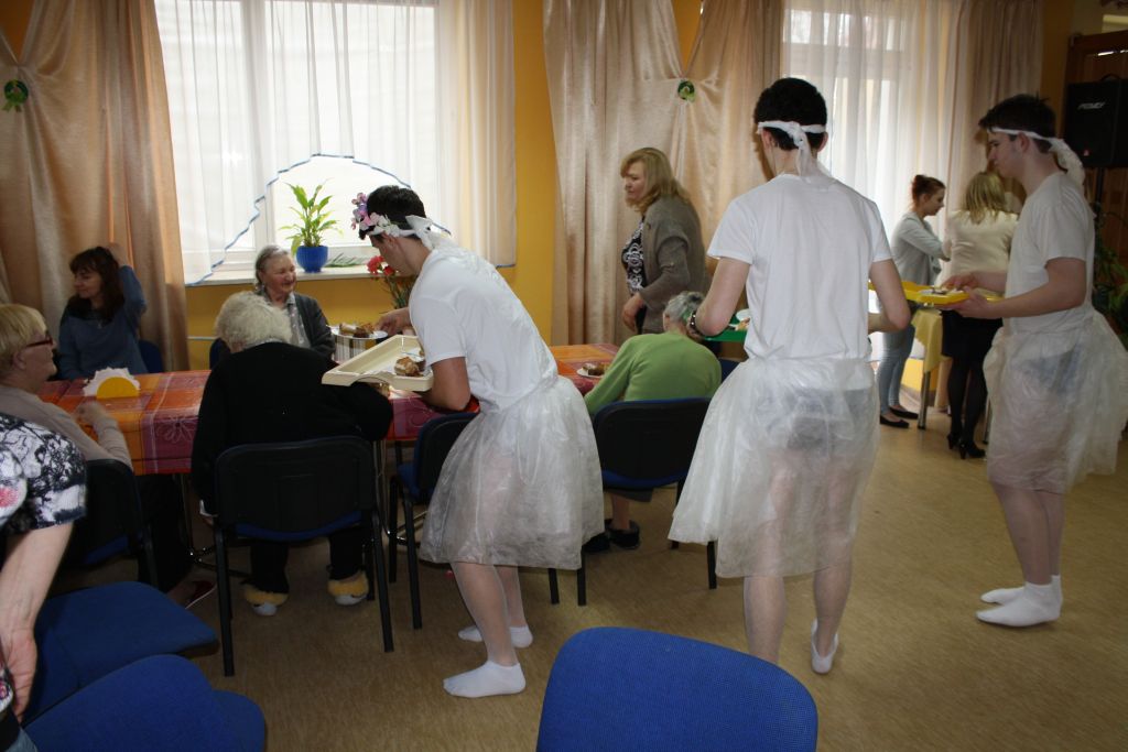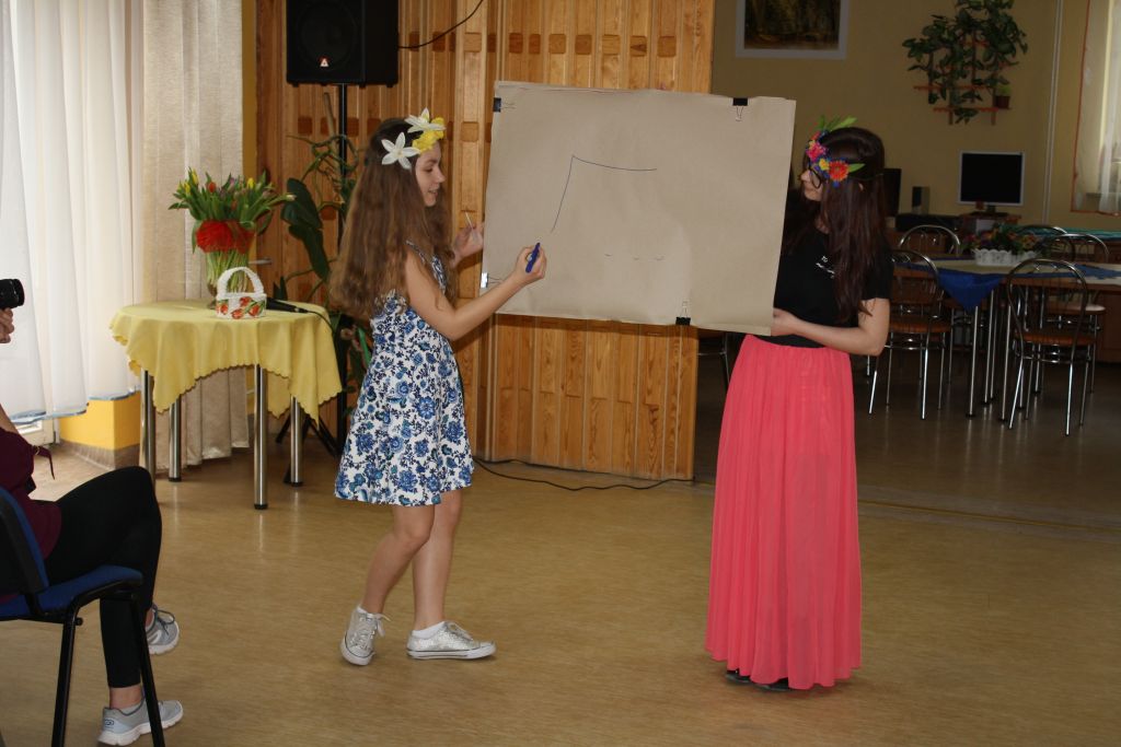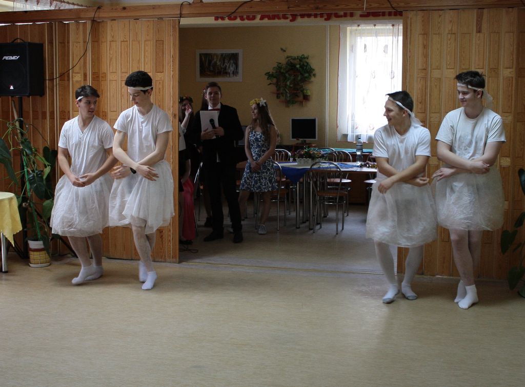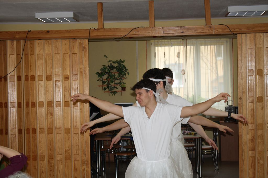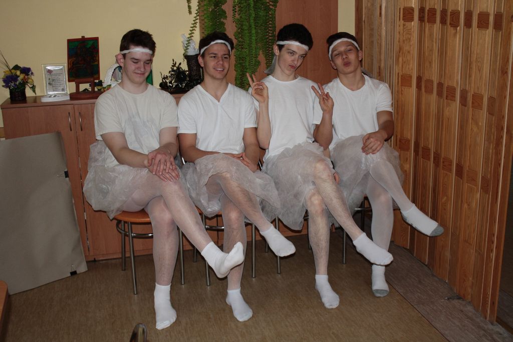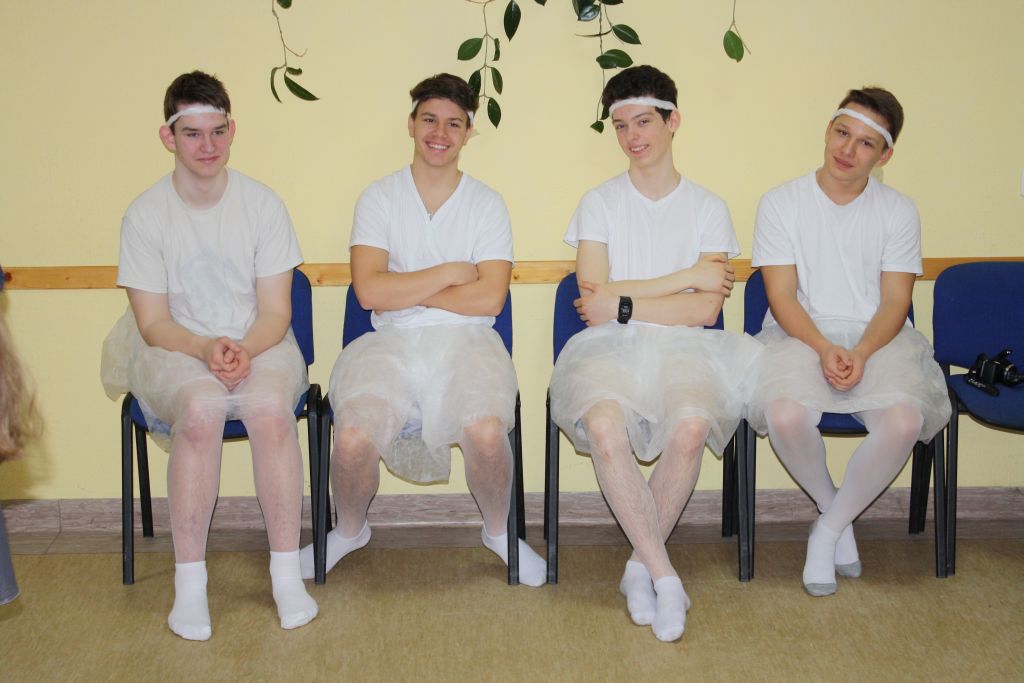 Panowie spróbowali swoich sił w typowo żeńskich rolach- baletnic i kelnerek. Z wielką gracją odtańczyli „Jezioro Łabędzie” i z dużym wdziękiem serwowali upieczona przez swoje szkolne koleżanki ciasta.