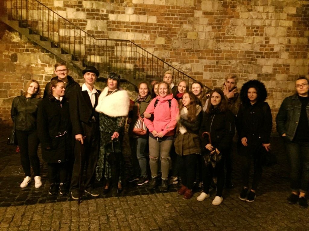 Młodzież wzięła udział w wieczornym teatralizowanym spacerze „Lubelskie półcienie”, którego trasa prowadziła poprzez ulice i zaułki Starego Miasta w poszukiwaniu legend i opowieści miejskich w czasów 20-lecia międzywojennego.
