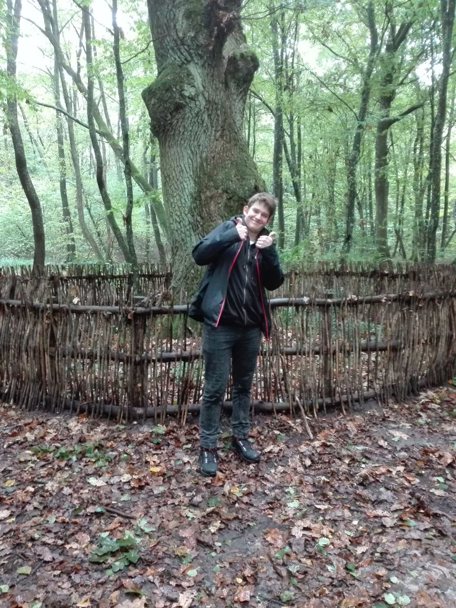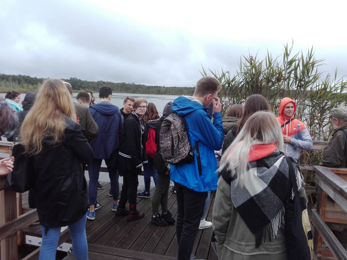 Ostatnim punktem projektu był przemarsz i lekcja na ścieżce edukacyjnej – Dąb Dominik. Oprócz okazałego starego dębu, dumnie stojącego przy ścieżce, uczniowie mogli obserwować ogromną ilość innych gatunków i przypomnieć sobie strukturę lasu. Punktem kulminacyjnym spaceru było wyjście na zarastające jezioro. Można było także postać na ciągle poruszającej się splei i dodatkowo posłuchać o charakterystycznej florze i faunie tego terenu. Niestety wszystko co dobre szybko się kończy, więc i ten wyjazd musiał dobiec do końca. Miejmy nadzieją, że niedługo licealiści wyruszą znowu. AD