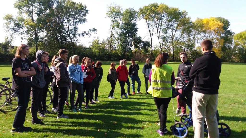 Po krótkim odpoczynku wśród zieleni, zjedzeniu kanapek i drożdżówek, uczniowie wykonywali przygotowane przez nauczycieli zadania dotyczące określania azymutu oraz obliczania skali.
