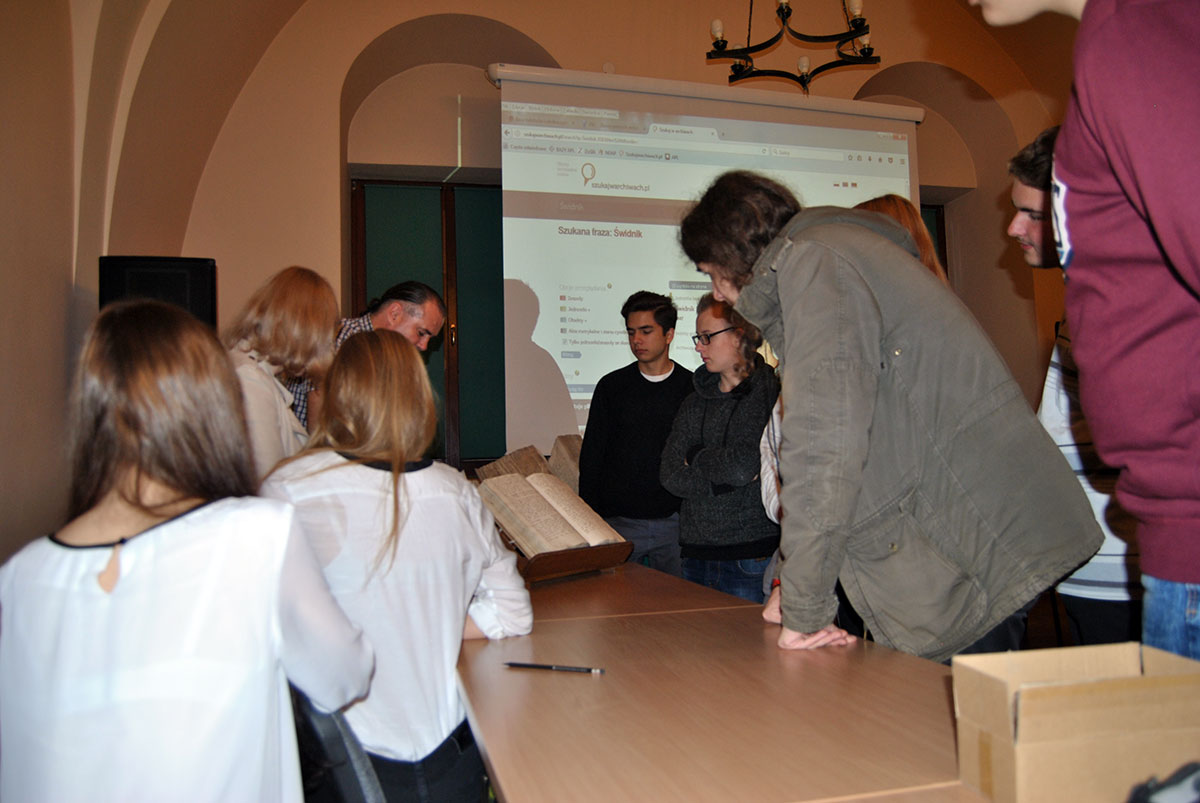 Dzięki pracownikowi IPN panu Robertowi Jopie uczniowie mieli rzadką okazję, by zobaczyć pracę archiwistów od kuchni. Obejrzeli przechowywane w archiwum dokumenty pergaminowe, papierowe, przywileje królewskie, księgi miast, sądów, parafii, akty Trybunału Koronnego, a nawet pisane pięknym, aczkolwiek trudnym do odczytania pismem kaligraficznym księgi, w których udało się znaleźć chociażby akt ślubu Aleksandra Głowackiego oraz jego szkolne świadectwo! Licealiści zobaczyli też na co chorowali świdniczanie w czasach, gdy nie było internetu, a ich pobyt w szpitalu zapisywano w gigantycznej Księdze Chorych. Uczniowie przeglądali najstarsze zachowane dokumenty Świdnika takie jak akty zameldowania czy karty do głosowania. Podziwiali też najstarszy dokument przechowywany w lubelskim archiwum - przywilej lokacyjny Lublina wystawiony w 1317 roku przez Władysława Łokietka. Poznali również pracowników archiwum, którzy nie zaprzestając swojej pracy pokazali im, co dzieje się z dokumentami zanim zostaną schowane do odpowiedniego sejfu.