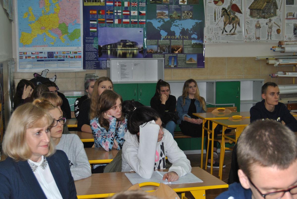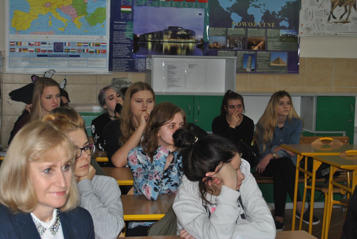 Młodzież I Liceum często gości na swoich lekcjach prawników. Dba o to nauczycielka wiedzy o społeczeństwie p. E. Derek.