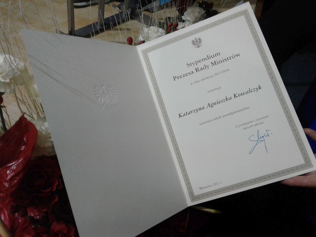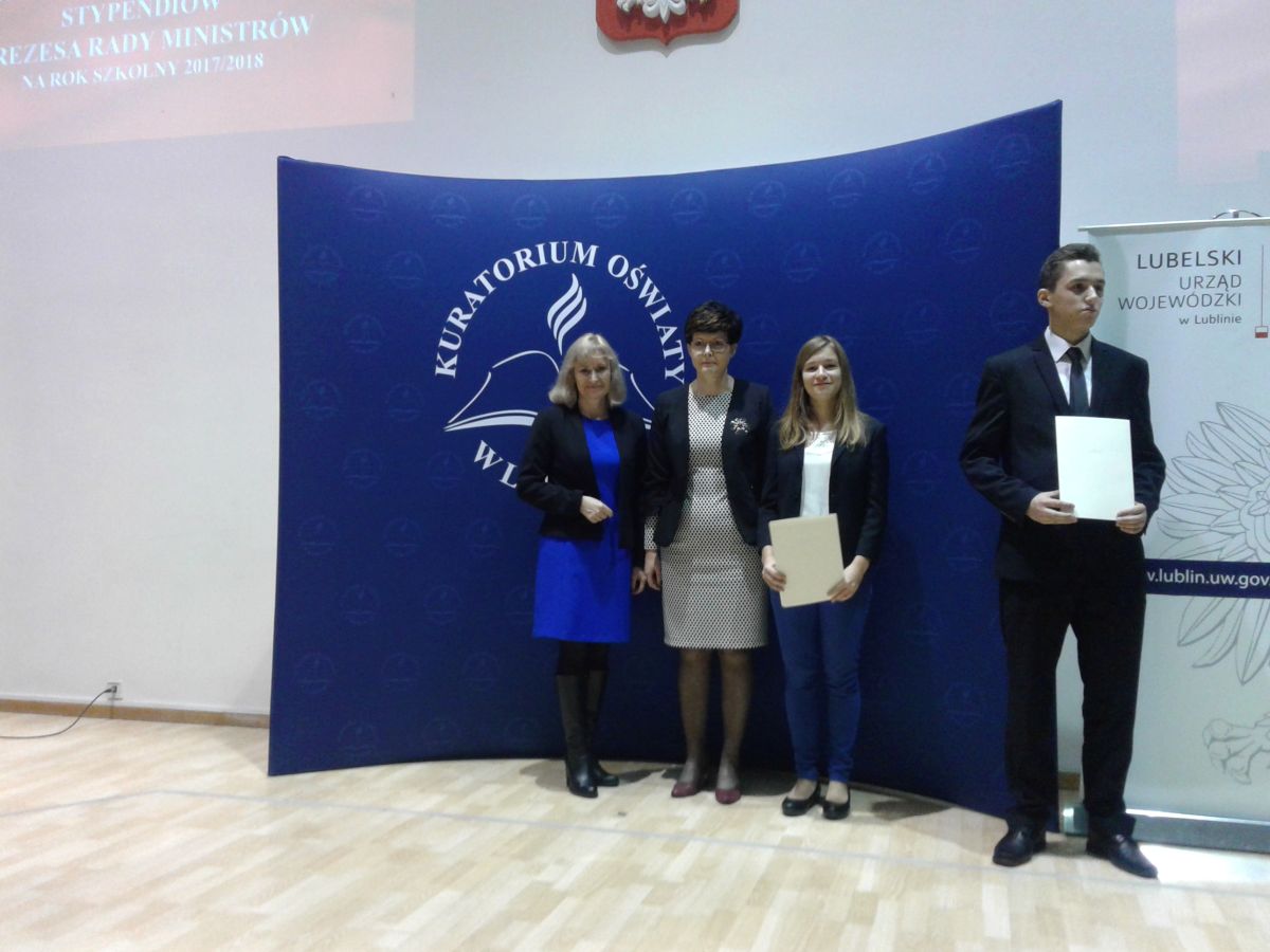 7 listopada w sali błękitnej lubelskiego Urzędu Wojewódzkiego odbyła się uroczystość wręczenia Stypendiów Prezesa Rady Ministrów najlepszych uczniom. Wśród prymusów znalazła się Kasia Kowalczyk, która na koniec minionego roku szkolnego uzyskała najwyższą w szkole średnią – 5,44.