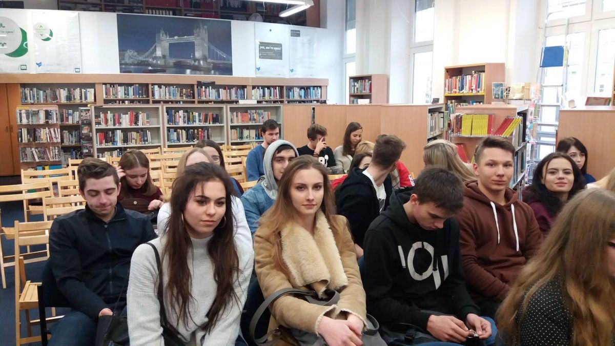 Czasem nie było łatwo, ale nikt się nie poddał. Po szaleństwach na lodzie młodzież udała się do biblioteki British Council, z którą I LO współpracuje od wielu lat. Zajęcia zatytułowane "Victorianism Today - Why we are all Victorian" prowadził dr Tomasz Niedokos, pracownik naukowy Instytutu Filologii Angielskiej KUL. Uczniowie dowiedzieli się o wielu wynalazkach pochodzących z epoki wiktoriańskiej. Okazało się, że bardzo dużo zawdzięczamy naukowcom z tamtych czasów. W czasach panowania królowej Wiktorii powstały pierwsze linie kolejowe, w tym kolej podziemna, pierwsze biura podróży, znaczki pocztowe, skrzynki pocztowe, kartki świąteczne, a nawet spłukiwane wodą toalety. Prowadzący opowiedział również o wielu popularnych obecnie dyscyplinach sportowych, których zasady opracowano w epoce wiktoriańskiej. Zajęcia były prowadzone tylko w języku angielskim.