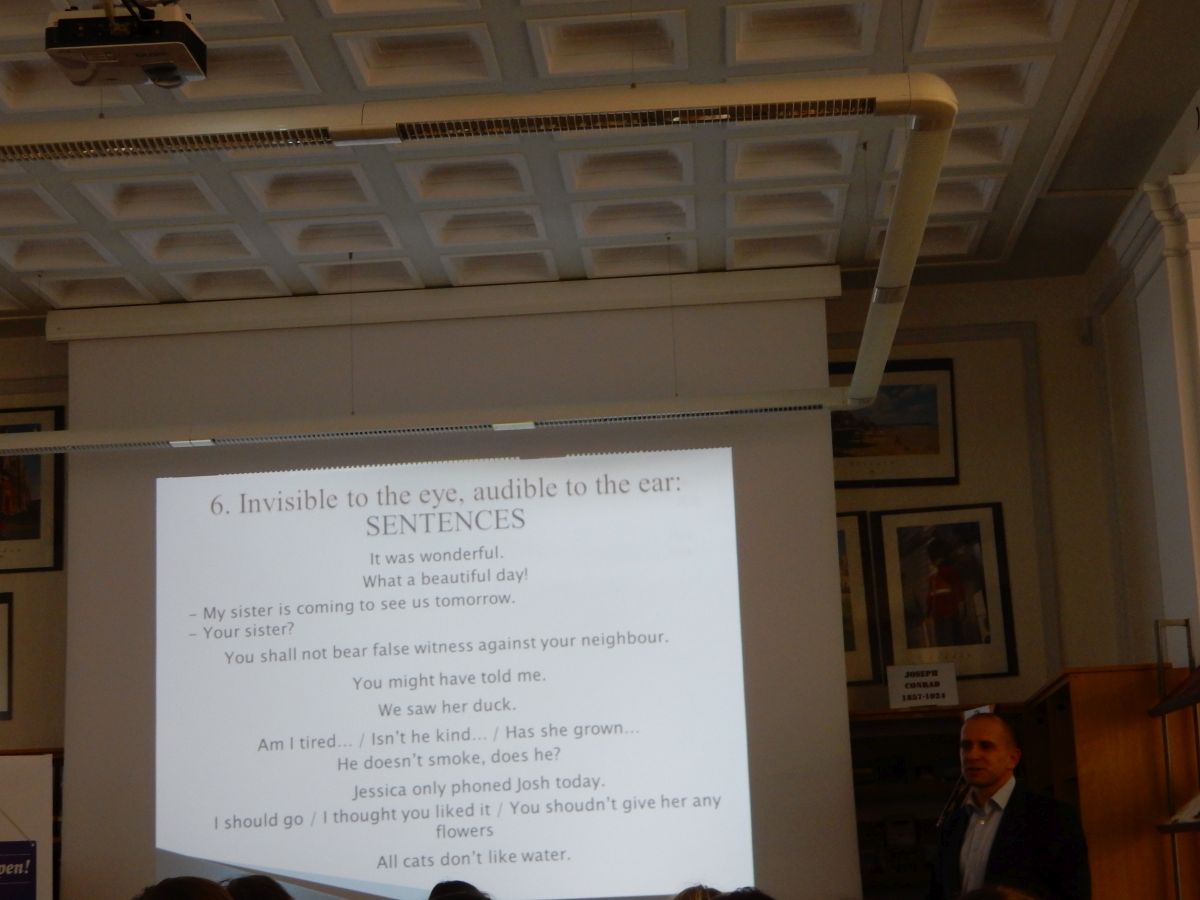 Podczas spotkania uczniowie ćwiczyli akcent zdaniowy i przekonali się, że aby sprawnie posługiwać się językiem angielskim, nie wystarczy znajomość słownictwa czy gramatyki, ale także należy zwracać uwagę na poprawną wymowę. Trening fonetyczny uświadomił wszystkim, że akcent zdaniowy ma wpływ na właściwą interpretację komunikatu.