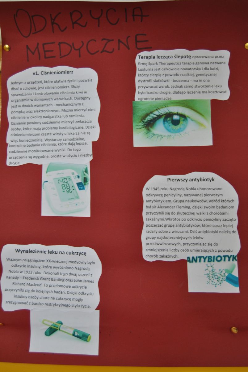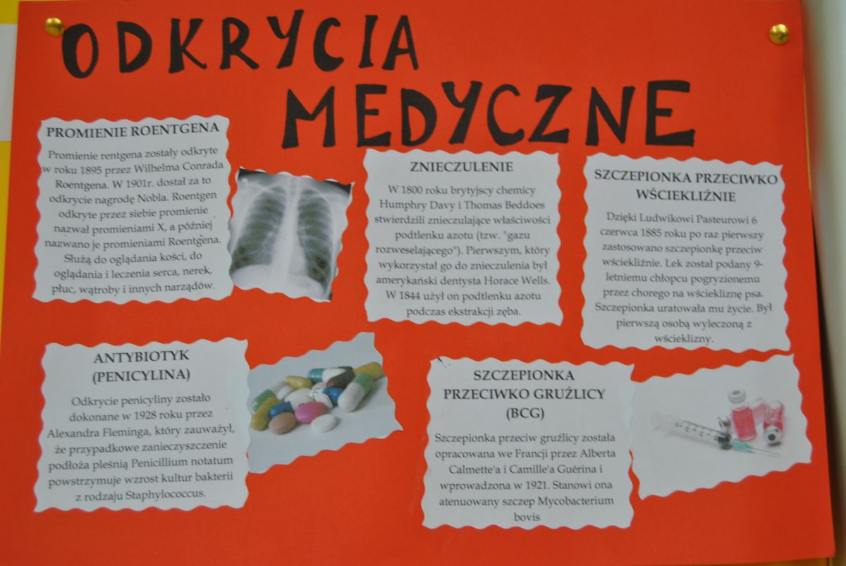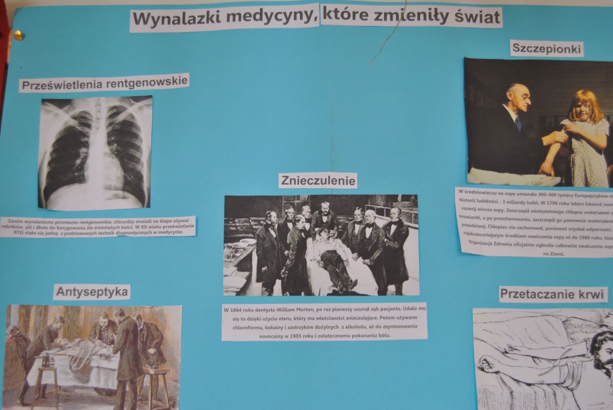 Z wielkimi odkryciami jest tak, że po jakimś czasie wydają nam się naturalne … Taką refleksję możecie znaleźć na jednym z plakatów dotyczących wynalazków w medycynie. Przygotowali je uczniowie pod opieką p. A. Dudek.