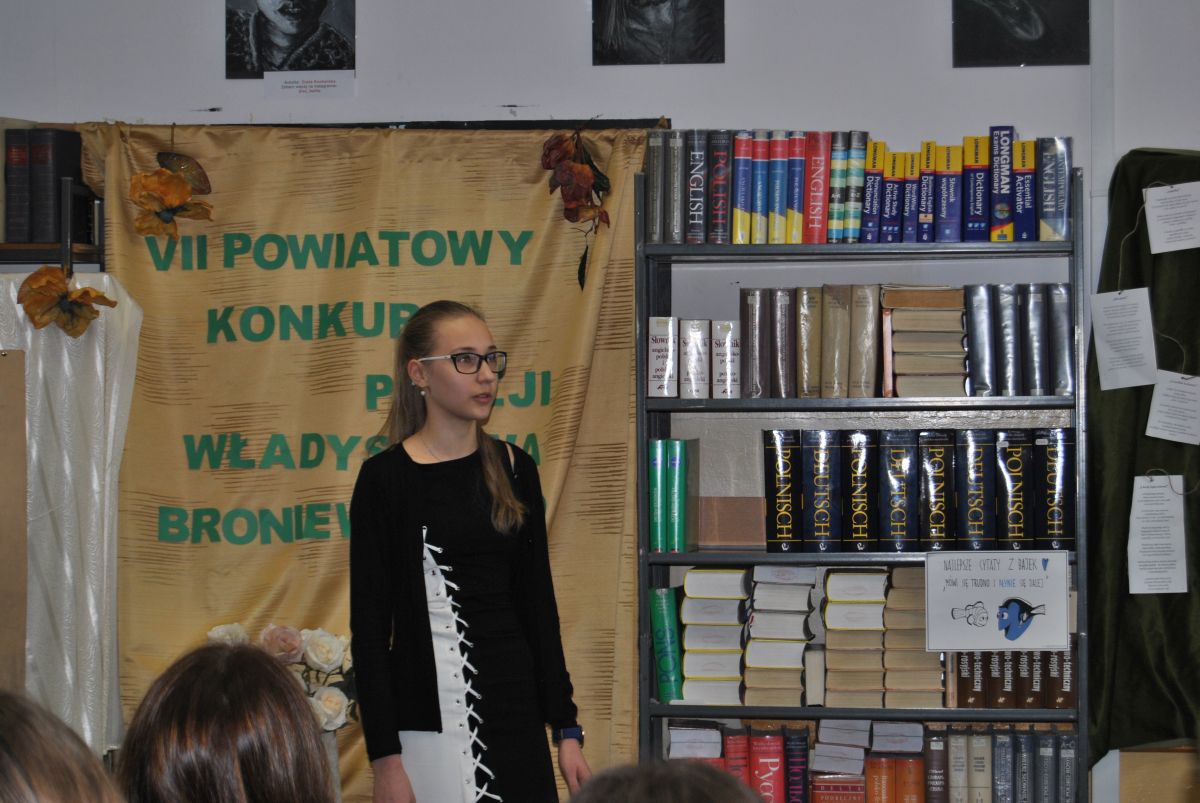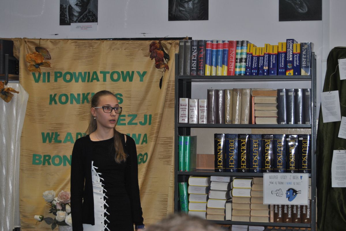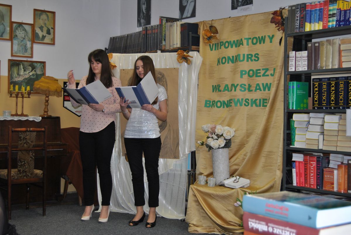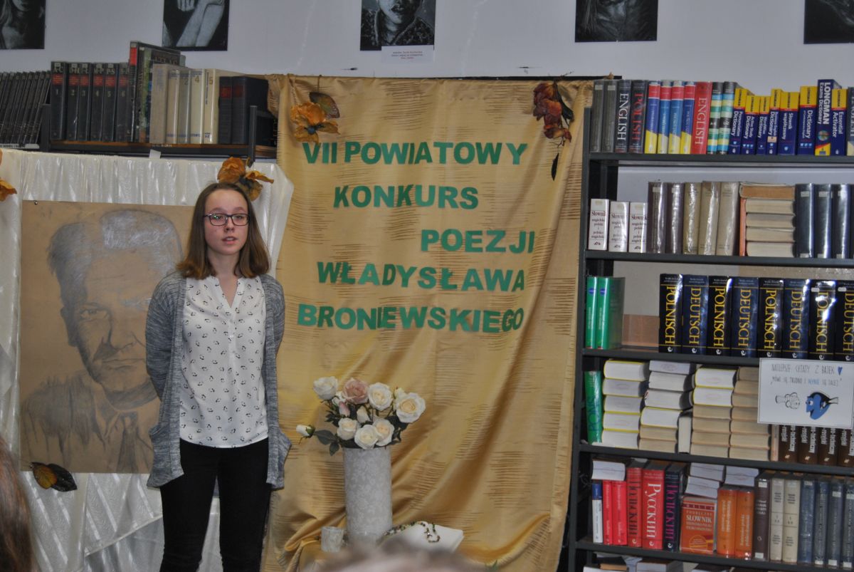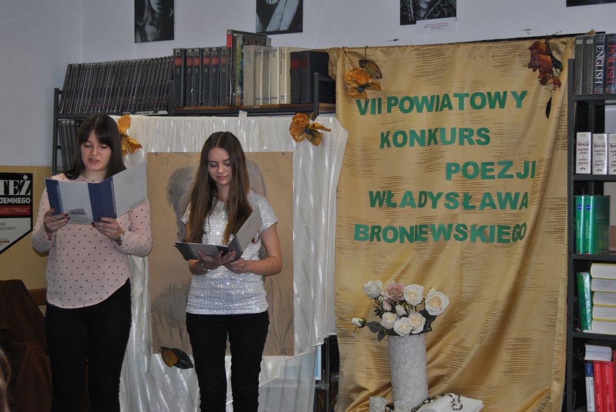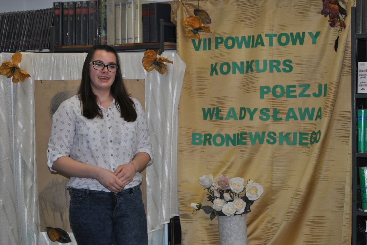 „W czasach mocno niehumanistycznych swoją wrażliwością udowodniliście, że należycie do elity społeczeństwa”. Taka między innymi refleksja padła z ust jurorów podsumowujących VII Powiatowy Konkurs Poezji Władysława Broniewskiego. Konkurs, w którym udział wzięło 17 młodych artystów odbył się 14 lutego. Jego organizatorami są panie A. Adamczyk i J. Piasecka.