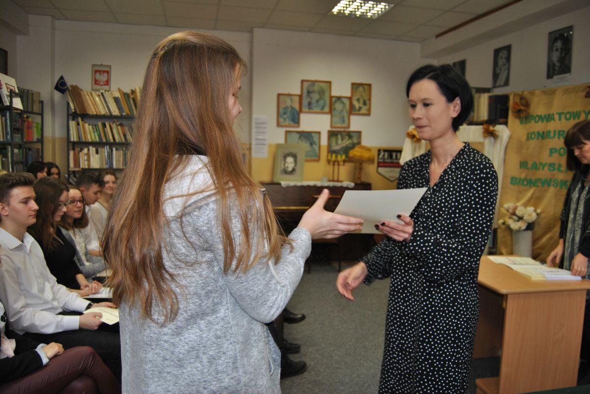 - Wyróżnienie: Klaudia Bielak za interpretację wiersza „Ballady i romanse” (Zespół Szkół w Bystrzejowicach Pierwszych)