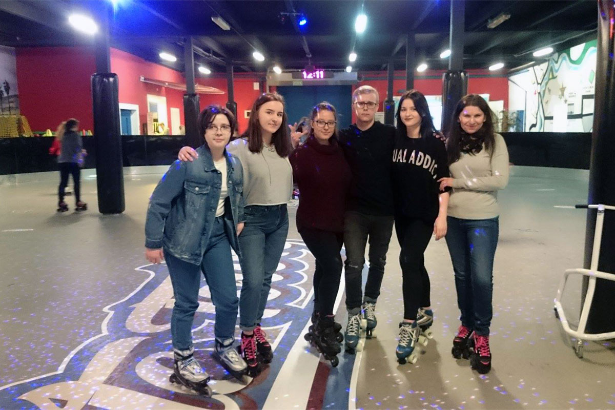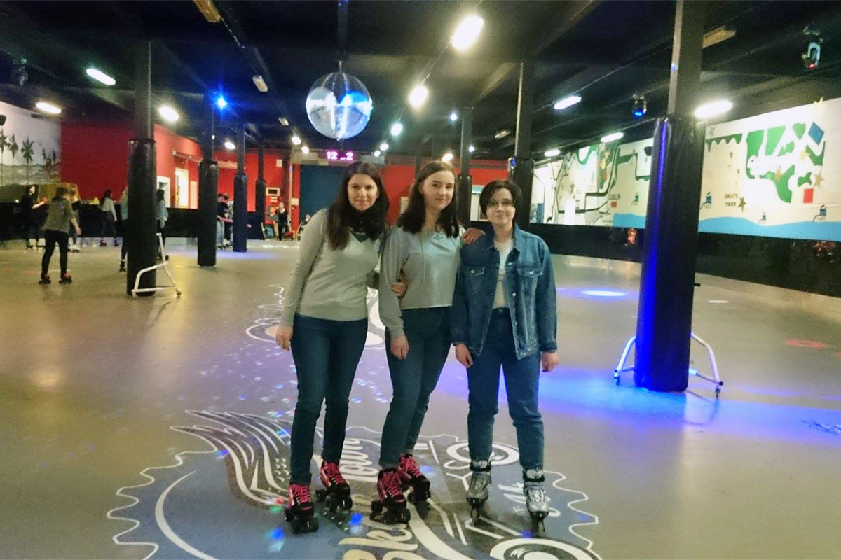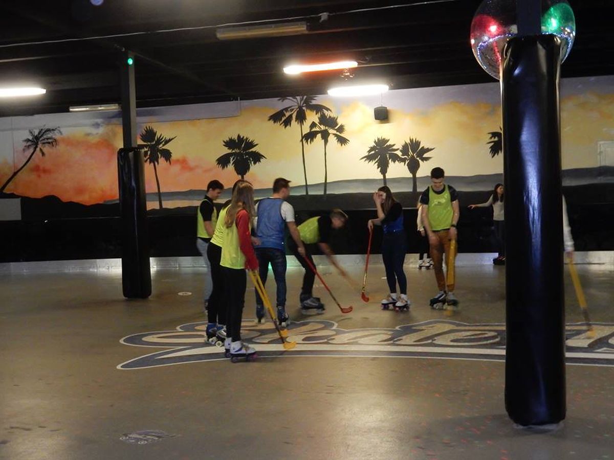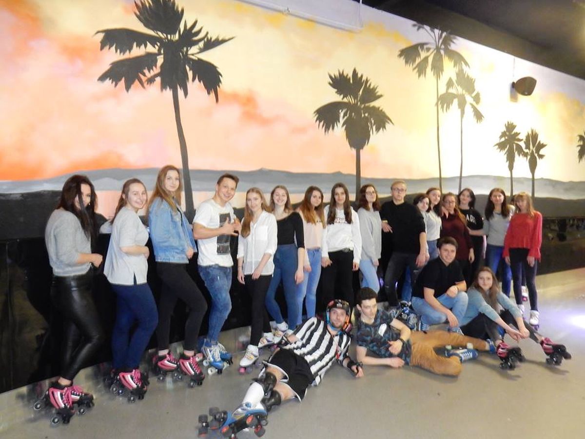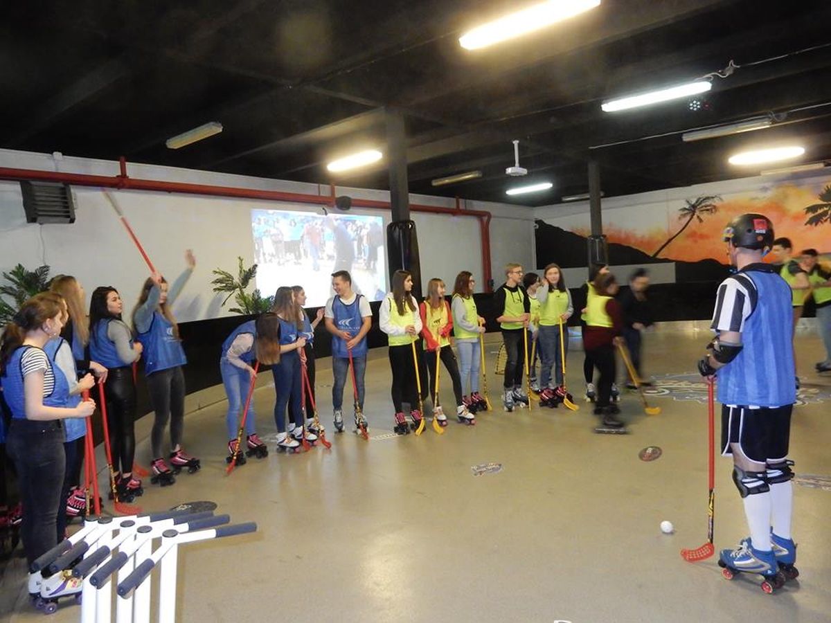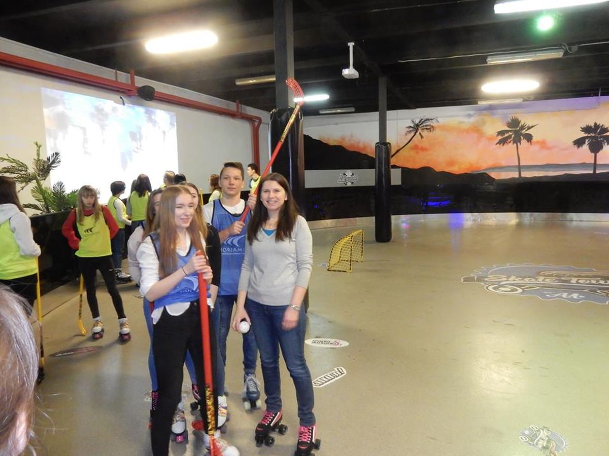 Kolejnym punktem programu były zajęcia sportowe w nowo otwartej wrotkarni SkateTown w Lublinie. Większość uczniów miała rolki na nogach po raz pierwszy. Na początku było ciężko, ale przy pomocy sympatycznego instruktora wszyscy zaczęli szybko robić postępy. Na zakończenie jazdy odbył się mecz w hokeja na wrotkach. Była zażarta walka o zwycięstwo, ale też dużo śmiechu. Wszyscy jednogłośnie stwierdzili, że wrotki to rewelacyjny sport a takie zajęcia warte są powtórzenia.