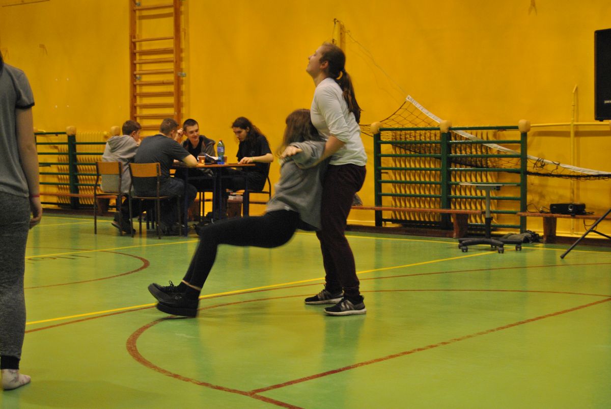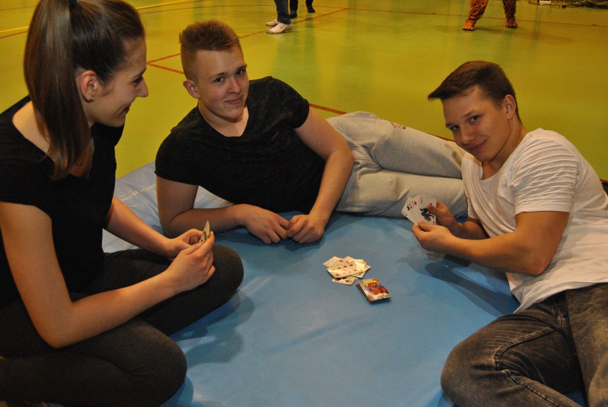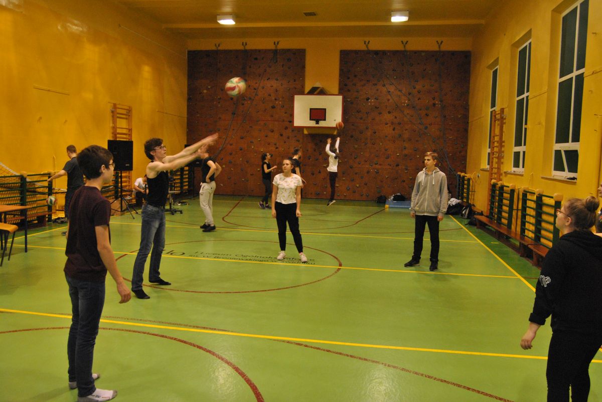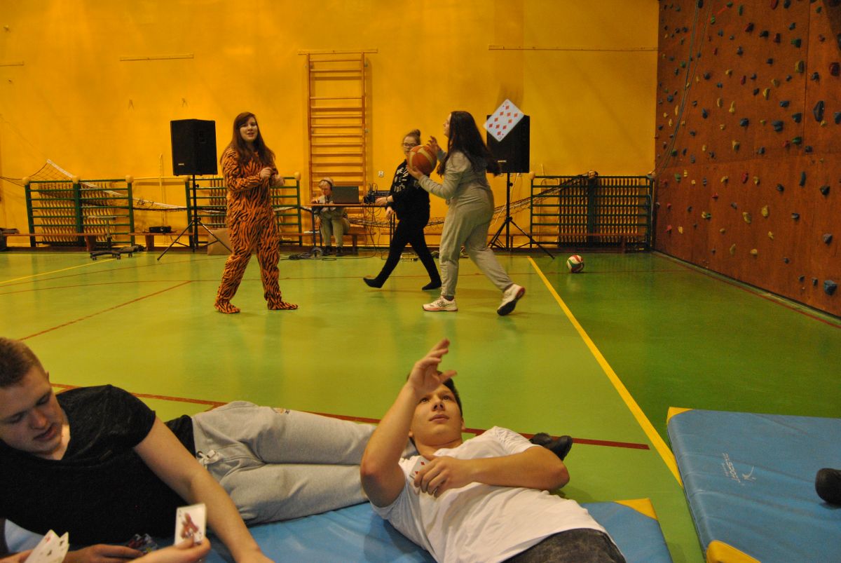 Młodzieży towarzyszyli panowie Piotr Abramowicz, Bartosz Dutkowski i Adam Kuna. Od godziny 20 główną areną integracji stała się sala gimnastyczna. Tutaj grano w kosza i siatkówkę, w karty, jedzono pizzę, śpiewano przy gitarze i oglądano horrory. W sali nr 7 z kolei rządziła pai A. Dudek, która zdecydowała się zrobić porządki w pracowni biologicznej.