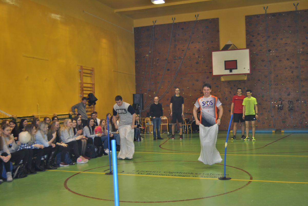 To pierwsza taka impreza w I Liceum, w czasie której mieliśmy niecodzienną okazję obejrzeć prace plastyczne Ani Nowak, fotograficzne Oli Jankowskiej i poetyckie Laury Bogusz, a także wysłuchać występów Zuzi Szymanowskiej, Pauliny Kosowskiej, Damiana Czerniaka, Wiktorii Sobstyl, Piotra Jasielskiego, Karoliny Domańskiej, Kai Maruszak i Ani Jaśkiewicz. W pierwszy dzień wiosny nie mogło zabraknąć też współzawodnictwa sportowego nauczycieli i uczniów. Dwie drużyny starły się w takich konkurencjach jak: rzuty do kosza, jedzenie bitej śmietany, wyścigi raków, w workach i na ściance. Mimo wyrównanego poziomu zwyciężyli uczniowie. Na zwyciężonych i zwycięzców czekały pyszności przygotowane przez restaurację FAVILLA.