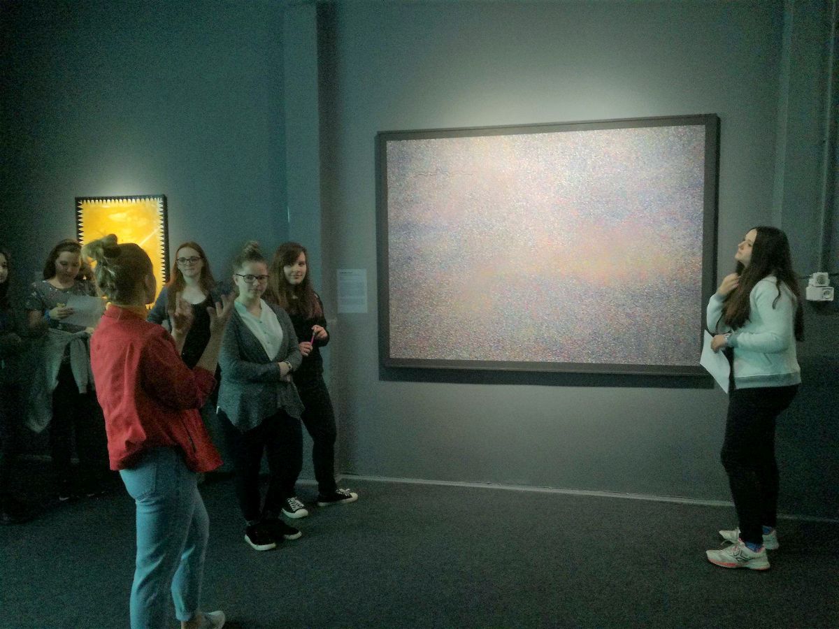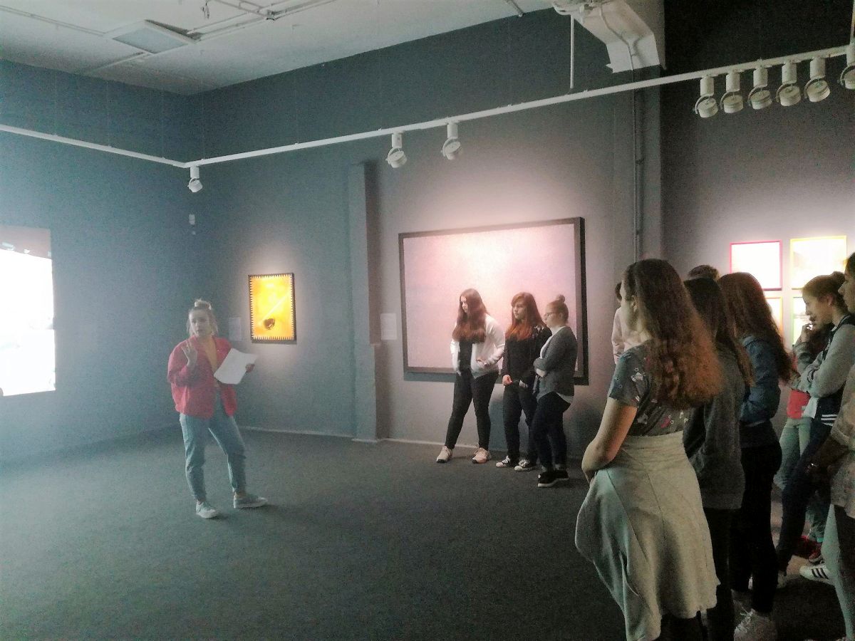 Druga część projektu związana była z realizacją podstawy programowej z wiedzy o kulturze. W Galerii Labirynt uczniowie wzięli udział w warsztatach z analizy sztuki na dwóch wystawach tematycznych – „Sick of Reality” oraz „W tym cała sztuka”.