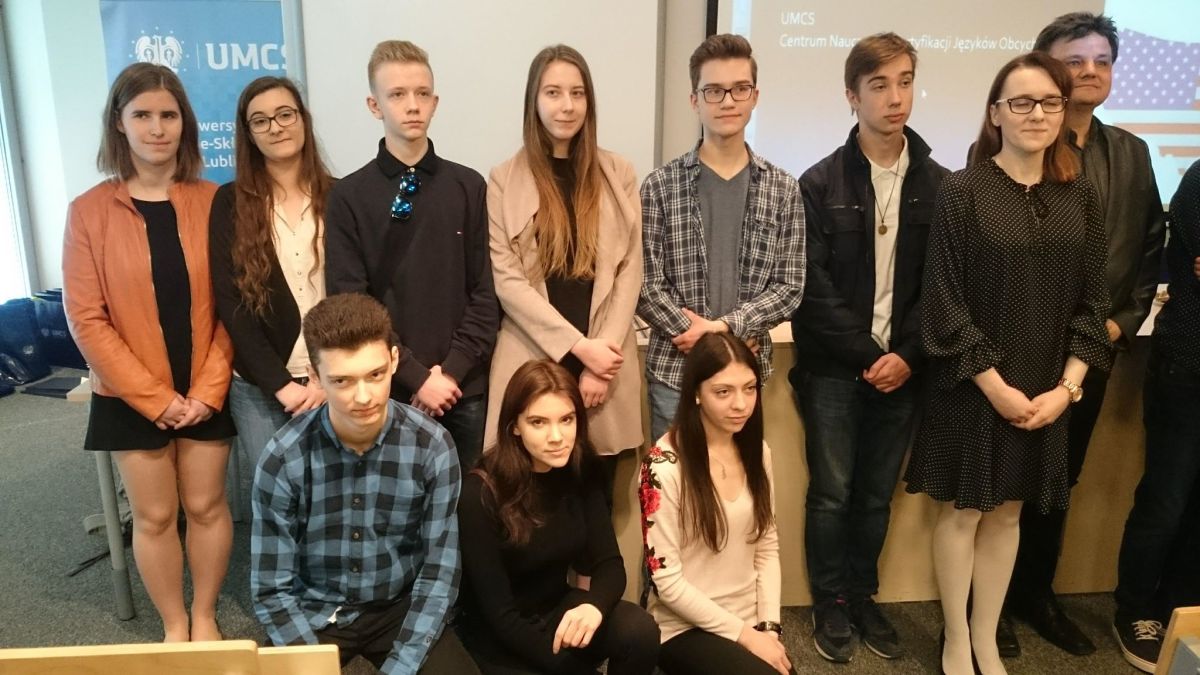 W rozgrywkach na etapie okręgowym uczniowie musieli wykazać się znajomością gramatyki i słownictwa oraz wiedzą w zakresie kultury i zwyczajów Stanów Zjednoczonych Ameryki. Choć nasza ekipa nie zajęła jednego z najważniejszych miejsc to dziękujemy za reprezentowanie szkoły na bardzo dobrym poziomie.