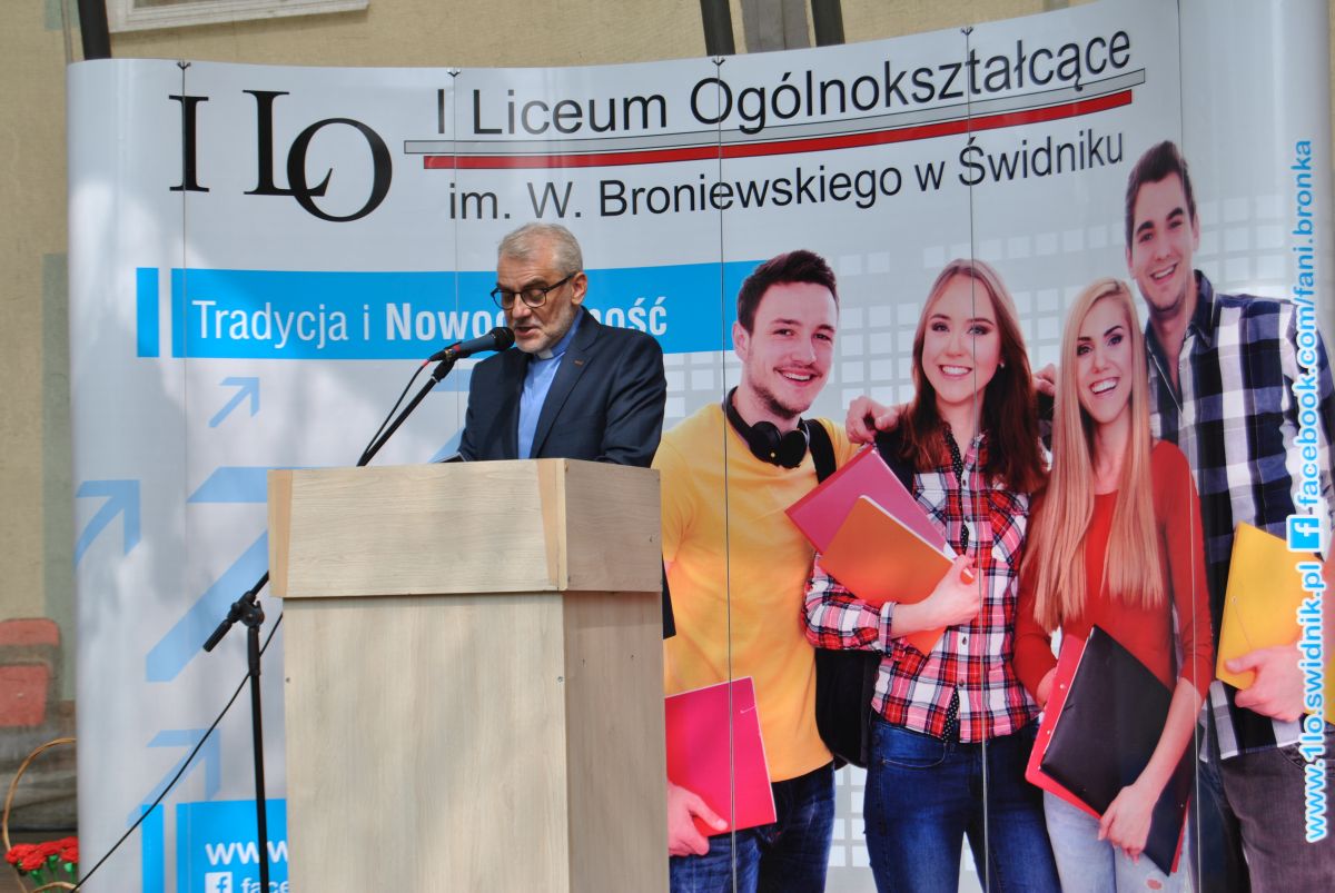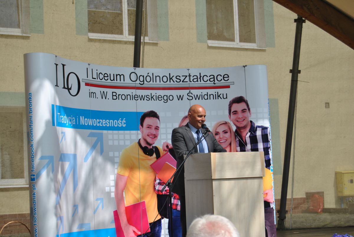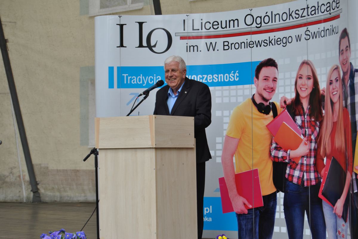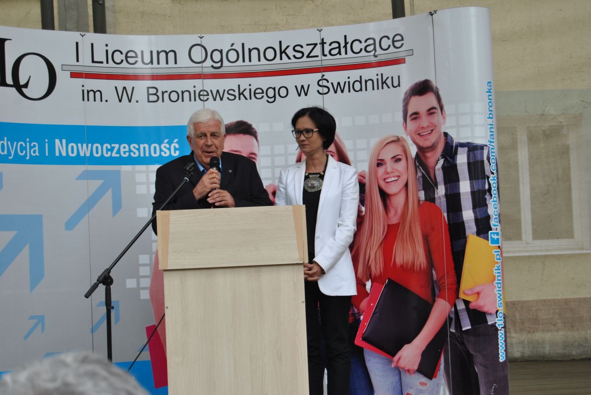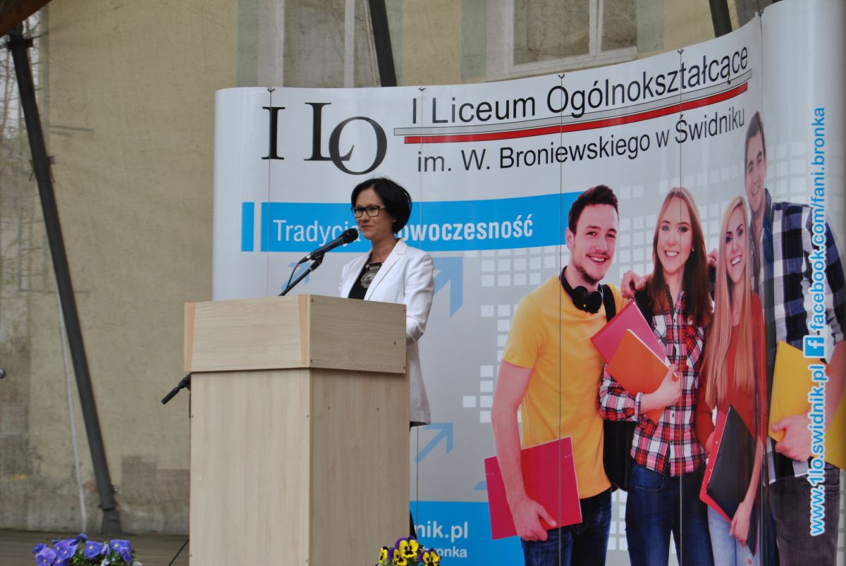 W muszli koncertowej MCUS odbyła się akcja głośnego czytania. W świat eseistyki Zbigniewa Herberta wprowadzili nas zaproszeni goście: ksiądz kanonik Leszek Surma, starosta Dariusz Kołodziejczyk, starosta Waldemar Białowąs, Bożena Zapalska – naczelnik Wydziału Edukacji i Sportu w imieniu burmistrza Waldemara Jaksona, Komendant Komendy Powiatowej Policji w Świdniku – insp. Grzegorz Hołub, komendant Straży Pożarnej w Świdniku - bryg. mgr inż. Sławomir Kowalczyk, Komendant Straży Miejskiej w Świdniku – pan Janusz Wójtowicz, dyrektor Miejsko – Powiatowej Biblioteki Publicznej Mirosław Król, dyrektor Miejskiego Ośrodka Kultury Adam Żurek, dyrektor Miejskiego Centrum Usług Socjalnych im. Jana Pawła II w Świdniku pani Beata Portka oraz dyrekcja I LO w Świdniku. Każdy czytający otrzymał piękną, wykonaną z bibuły różę oraz symbolicznie zawiesił na instalacji artystycznej wiersz patrona roku. Imprezę prowadzili: Natalia Parada i Michał Ciozda. W czasie czytania przed gośćmi wystąpili uzdolnieni muzycznie uczniowie naszej szkoły – Alicja Reszka, Piotr Jasielski, Laura Bogusz i Paweł Zaborek.