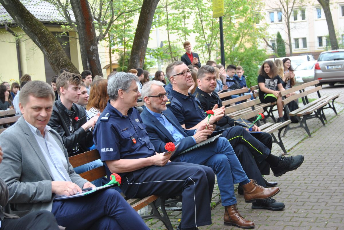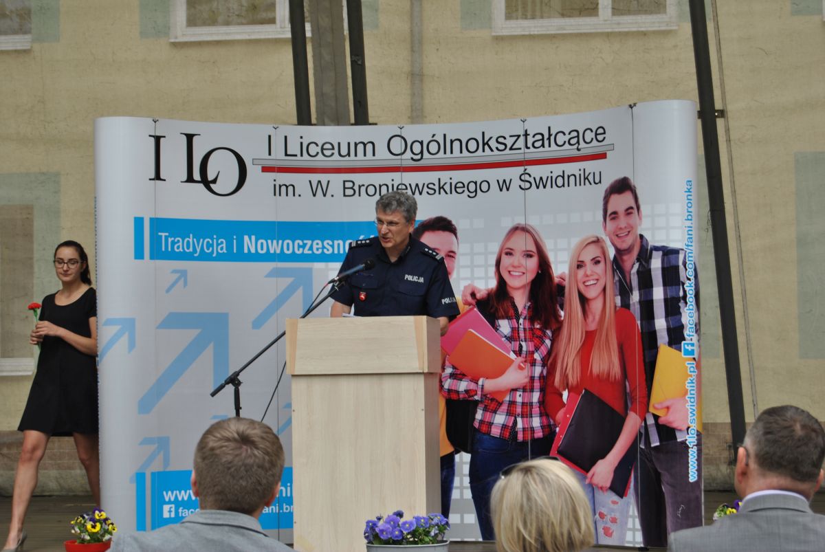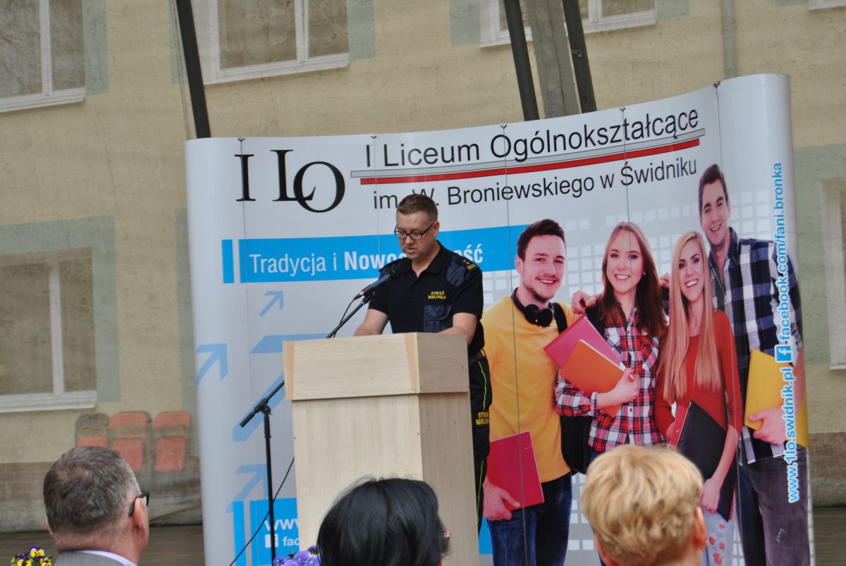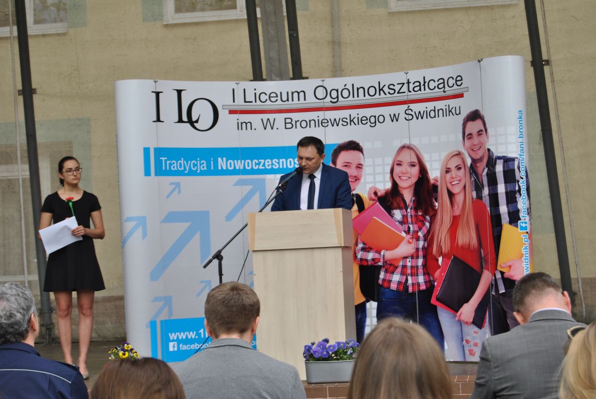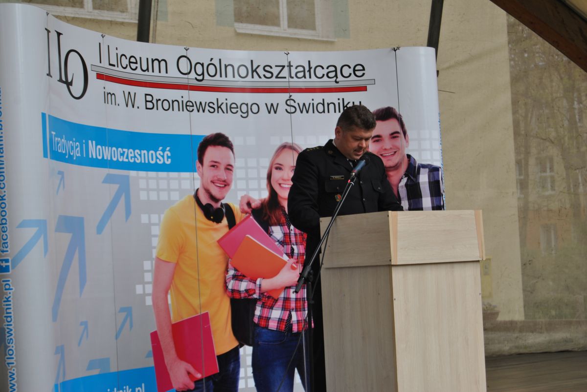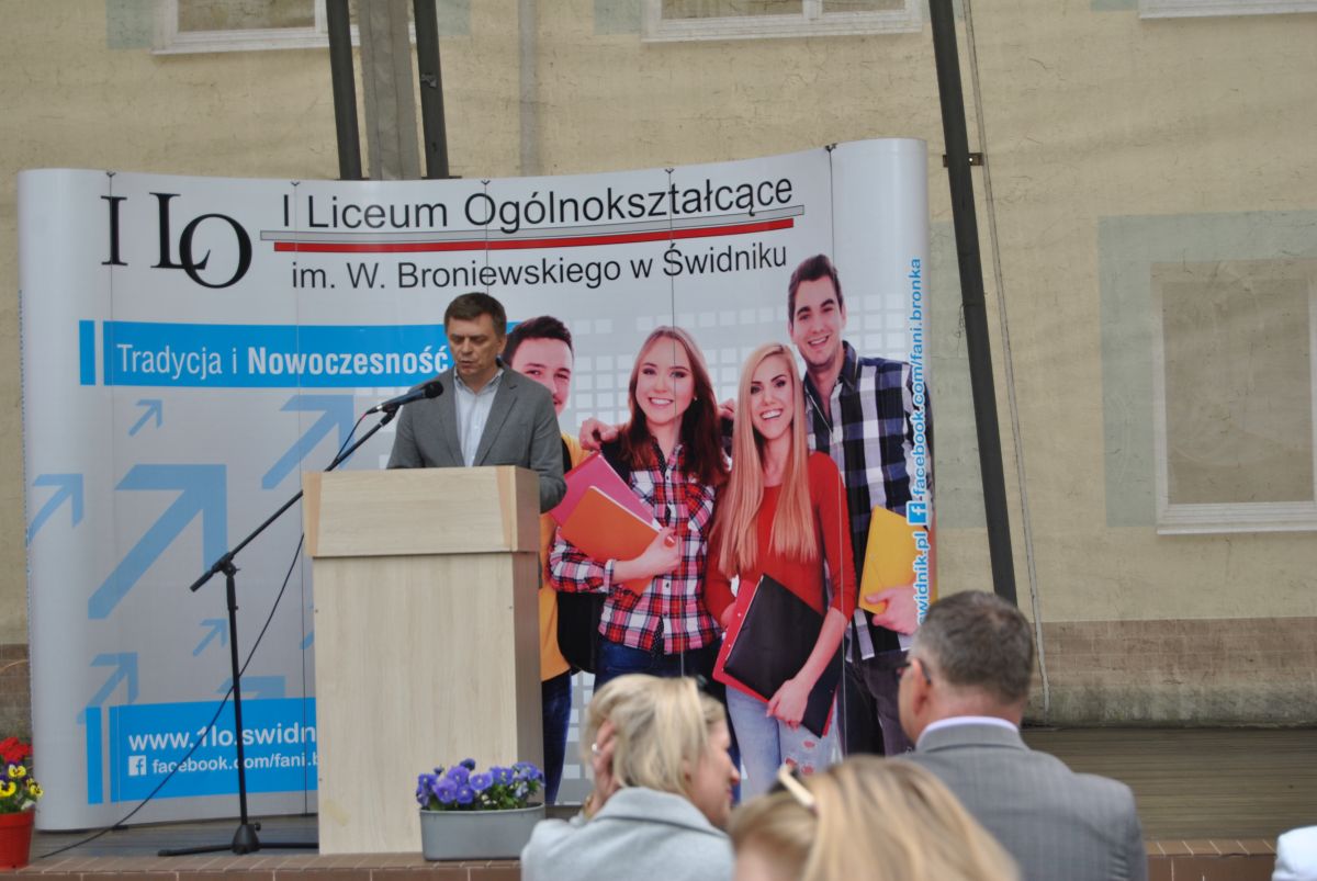 W muszli koncertowej MCUS odbyła się akcja głośnego czytania. W świat eseistyki Zbigniewa Herberta wprowadzili nas zaproszeni goście: ksiądz kanonik Leszek Surma, starosta Dariusz Kołodziejczyk, starosta Waldemar Białowąs, Bożena Zapalska – naczelnik Wydziału Edukacji i Sportu w imieniu burmistrza Waldemara Jaksona, Komendant Komendy Powiatowej Policji w Świdniku – insp. Grzegorz Hołub, komendant Straży Pożarnej w Świdniku - bryg. mgr inż. Sławomir Kowalczyk, Komendant Straży Miejskiej w Świdniku – pan Janusz Wójtowicz, dyrektor Miejsko – Powiatowej Biblioteki Publicznej Mirosław Król, dyrektor Miejskiego Ośrodka Kultury Adam Żurek, dyrektor Miejskiego Centrum Usług Socjalnych im. Jana Pawła II w Świdniku pani Beata Portka oraz dyrekcja I LO w Świdniku. Każdy czytający otrzymał piękną, wykonaną z bibuły różę oraz symbolicznie zawiesił na instalacji artystycznej wiersz patrona roku. Imprezę prowadzili: Natalia Parada i Michał Ciozda. W czasie czytania przed gośćmi wystąpili uzdolnieni muzycznie uczniowie naszej szkoły – Alicja Reszka, Piotr Jasielski, Laura Bogusz i Paweł Zaborek.