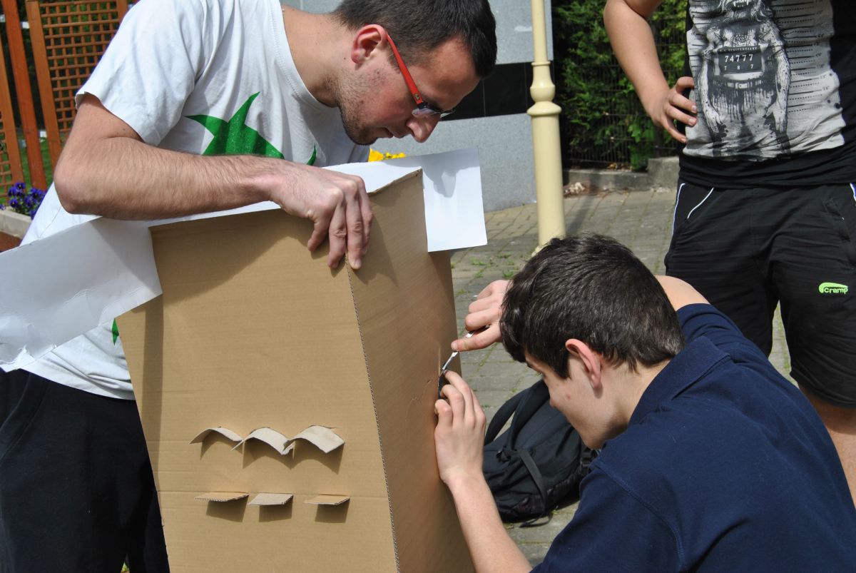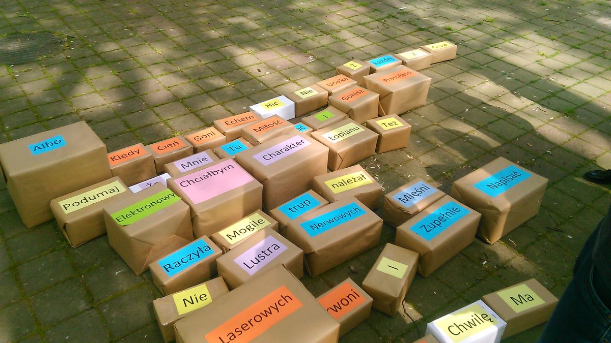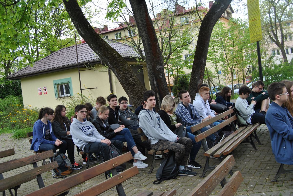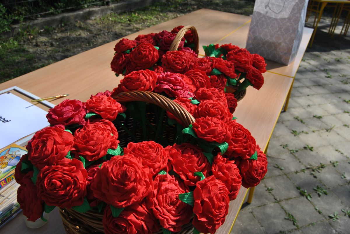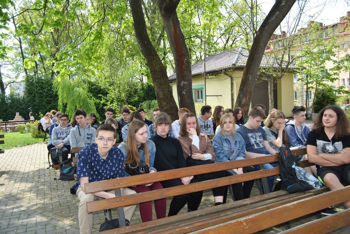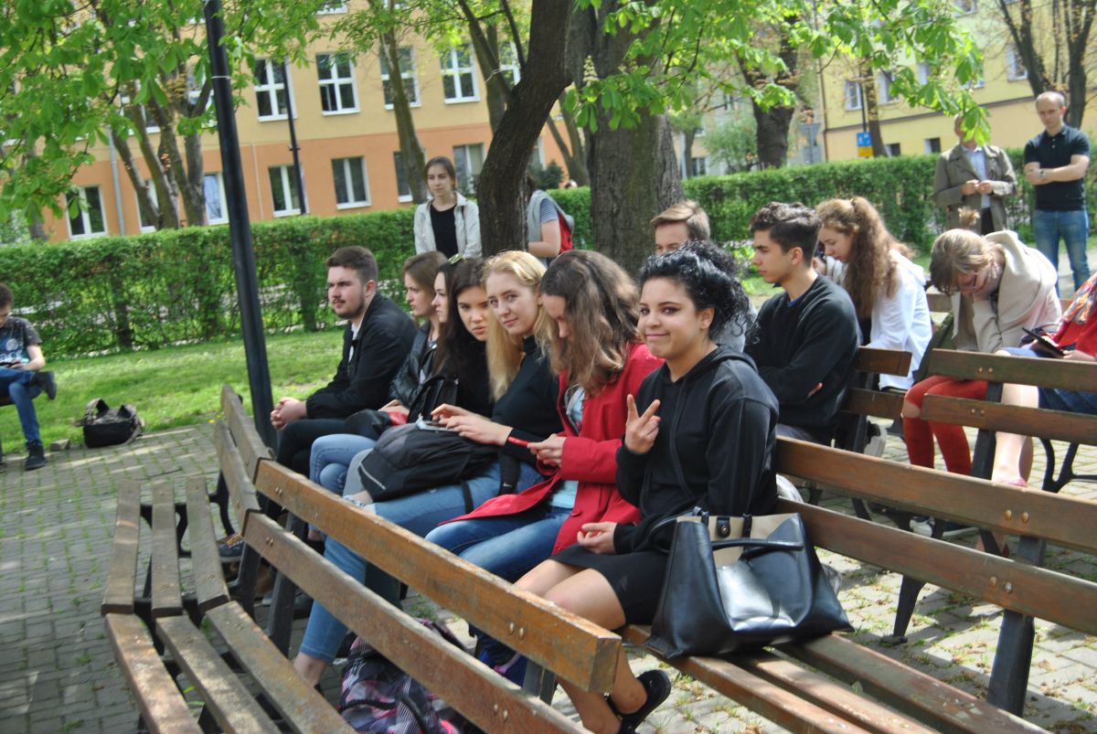 Po warsztatach młodzież wzięła udział w innych działaniach na placu, przygotowanych przez uczniów z koła dziennikarskiego – układanie puzzli poetyckich we własną poetycką improwizację, tworzenie instalacji Drzewa Poezji Zbigniewa Herberta oraz zmaganiach z łamańcami językowymi z cyklu nie/łatwy język polski. Było nam bardzo miło, gdy okazało się, że w nasze działania włączyła się nie tylko zaproszona młodzież, ale i mieszkańcy miasta, którzy nasze poetyckie propozycje potraktowali jako wyzwania i byli gotowi się z nimi zmierzyć. W czasie działań na placu przy fontannie i czytania w muszli uczniowie z koła rozdawali mieszkańcom miasta róże wykonane z bibuły oraz fiszki i zakładki z poezją i fragmentami eseistyki Zbigniewa Herberta.