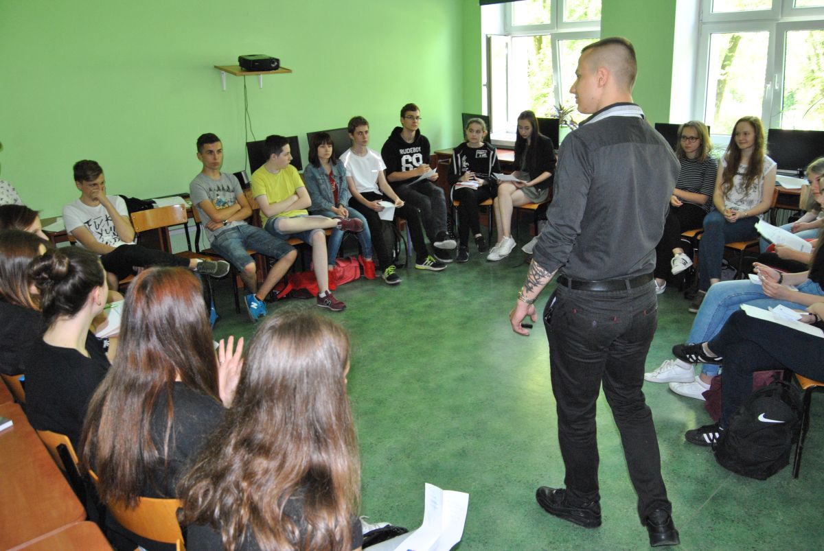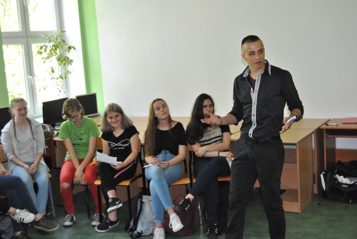Zajęcia prowadzili studenci z Akademickiego Centrum Wsparcia UMCS w ramach projektu AMBICJATYW HIGH oraz psychologowie z Miejskiego Centrum Profilaktyki w Świdniku. Warsztaty dotyczyły sposobów rozwiązywania konfliktów, radzenia sobie w trudnych sytuacjach oraz asertywności. Podsumowanie projektu odbyło się na sali gimnastycznej. Uczniów odwiedził starosta powiatu świdnickiego p. W. Białowąs. Uczestnicy obejrzeli męski balet szkolny z 2E oraz pokaz sztuk samoobrony Krav Maga, które poprowadził Karol Serafin, a także zgodnie z prawidłowymi zasadami diety zjedli drugie śniadanie, na które składały się owoce. Częścią projektu są także zajęcia dla przedszkolaków, które już wkrótce poprowadzą uczennice klasy biologicznej Nikola Sitkowska i Weronika Serafin. Projekt koordynują panie A. Dudek (nauczyciel biologii) oraz K. Paszko (psycholog).