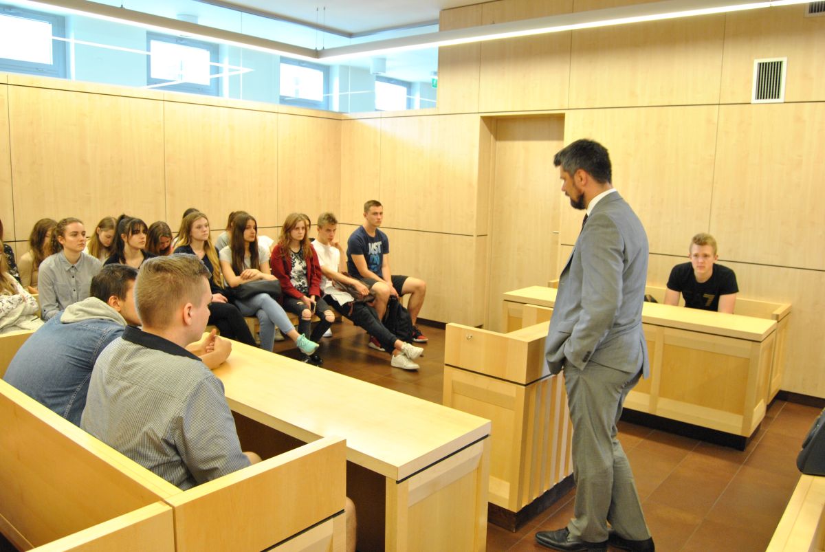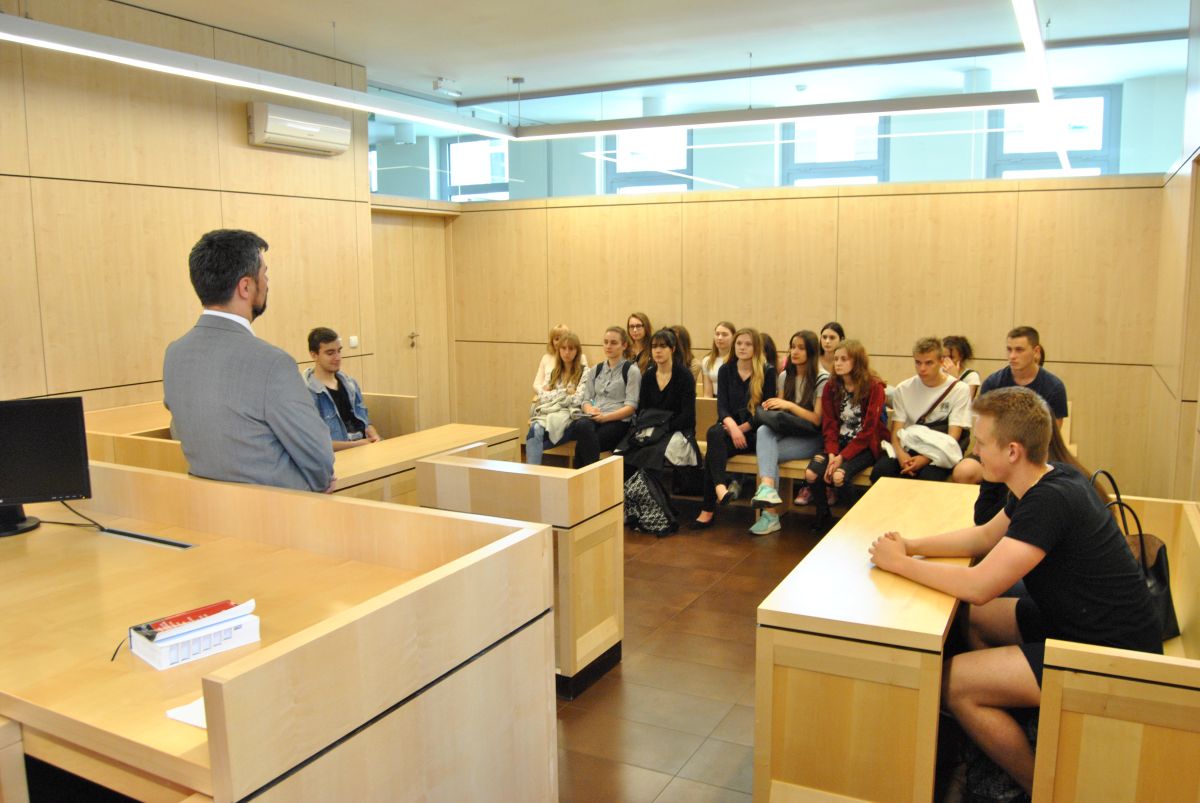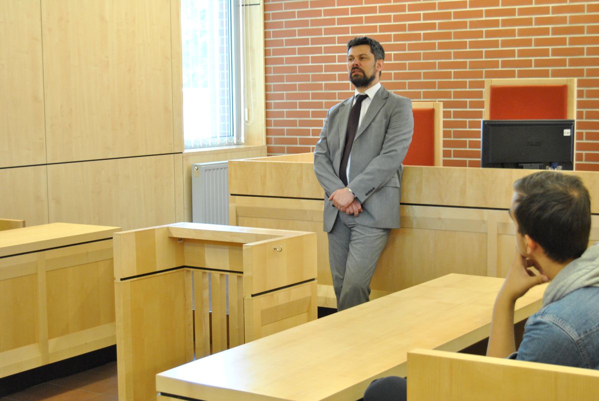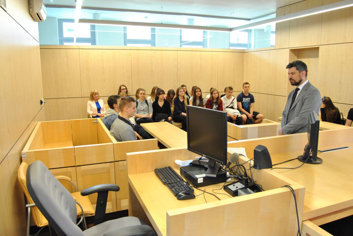 Sędzia Artur Orłowski z III Wydziału Karnego Sądu Rejonowego opowiadał, jakie są procedury sądowe, zasady działania sądów w Polsce, etapy gromadzenia materiałów dowodowych, kolejne fazy rozprawy sądowej, prawa oskarżonych, prawa świadków, kary za przestępstwa. Potem licealiści spotkali się z mediatorami sądowymi panią Teresą Grzeszczuk i panem Markiem Pakułą, którzy w bardzo ciekawy sposób przedstawili formy i cele mediacji. Wskazali, jak bardzo ważna i potrzebna jest taka forma rozwiązywania konfliktów w społeczeństwie. Opowiadali najciekawsze przykłady mediacji w sprawach cywilnych, karnych i rodzinnych. Uczniowie pytali, jak zostać mediatorem? Okazało się, że należy przejść specjalne szkolenie zakończone egzaminem państwowym i uzyskać kwalifikacje. Wizyta w sądzie była ciekawą lekcją wosu.
