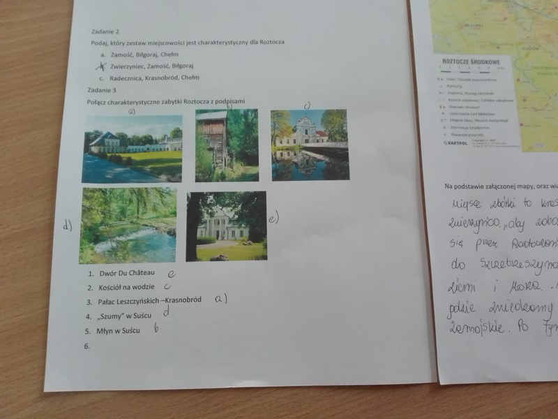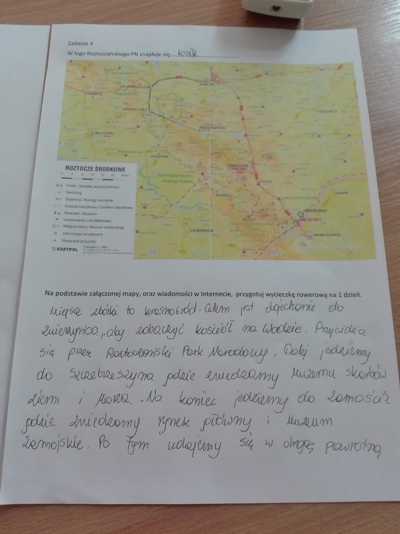 Następnie samodzielnie pracowali z kartami pracy, odpowiadając na pytania i układając plan wycieczki rowerowej po Roztoczu. Zwieńczeniem będzie konkurs ekologiczny. Warsztaty przeprowadziła koordynatorka projektu, nauczycielka biologii A.Dudek we współpracy z uczniami gimnazjum.