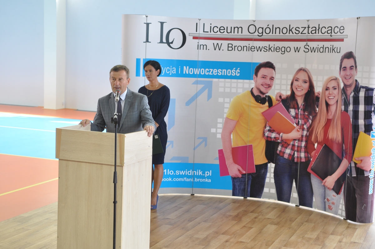 Powiatowa Inauguracja Roku Szkolnego 2018/2019 w I Liceum była okazją do szczególnej radości. Po 59 latach stary dobry „Bronek” doczekał się nowoczesnego obiektu sportowego. Nowy rok szkolny rozpoczęliśmy w nowej pełnowymiarowej hali sportowej. W uroczystości Powiatowej Inauguracji udział wzięło wielu znakomitych gości.