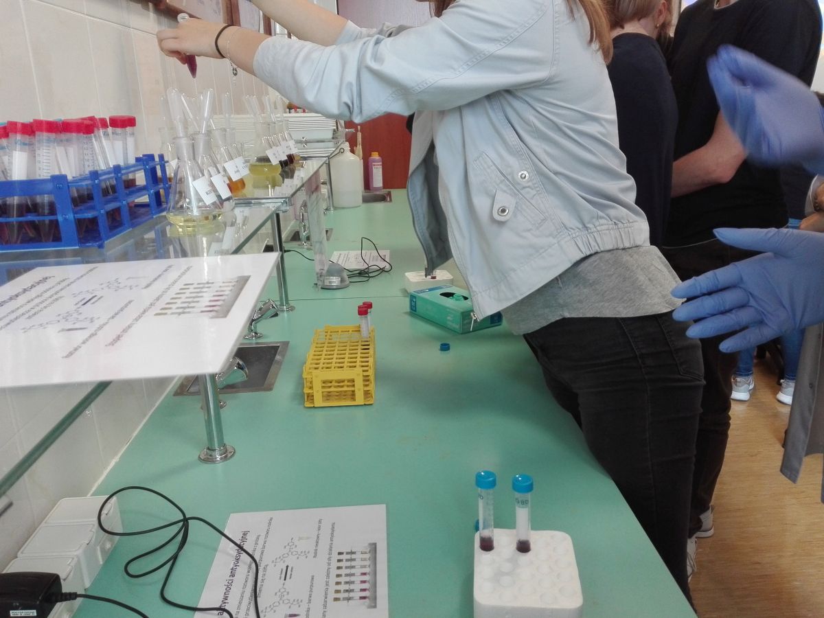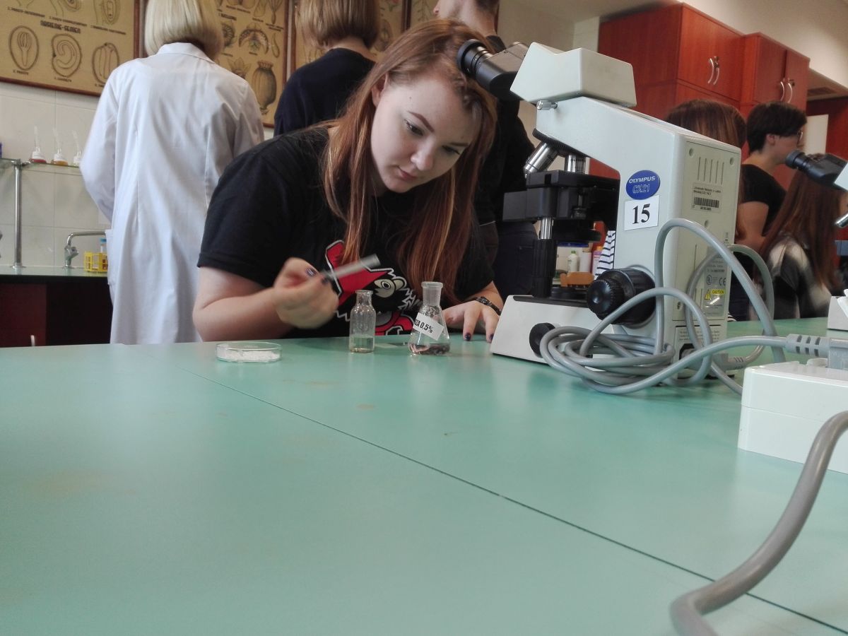 18 września uczniowie klas drugich, realizujący rozszerzenie z biologii, z nauczycielką p. A.Dudek wzięli udział w zajęciach laboratoryjnych w ramach Lubelskiego Festiwalu Nauki. Projekt odbył się w Collegium Universum UM w Lublinie. Uczniowie zapoznali się z badaniami przeprowadzanymi na wydziale farmacji.